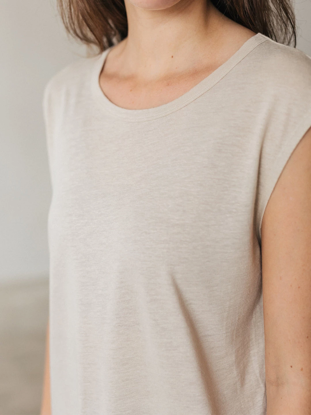 Silky and breathable, the Ambon is perfect for your everyday exercise. This sleeveless top, which is part of our Activewear collection, has a round neckline and is cut at the bottom on both sides for greater airflow and freer movement.Â