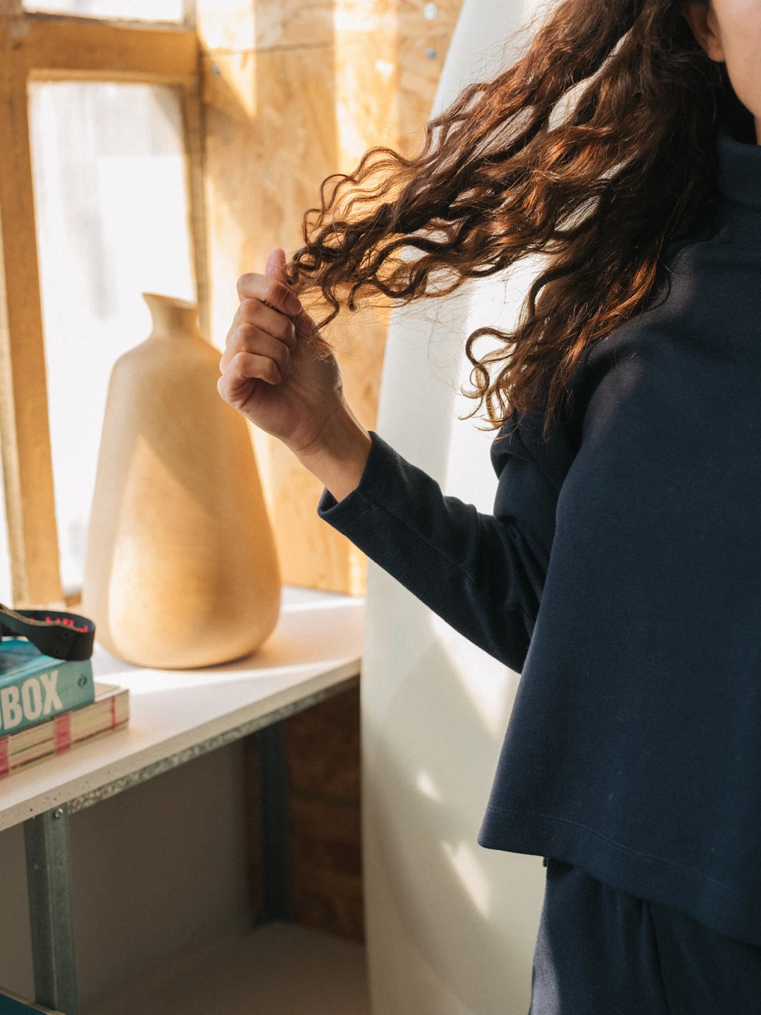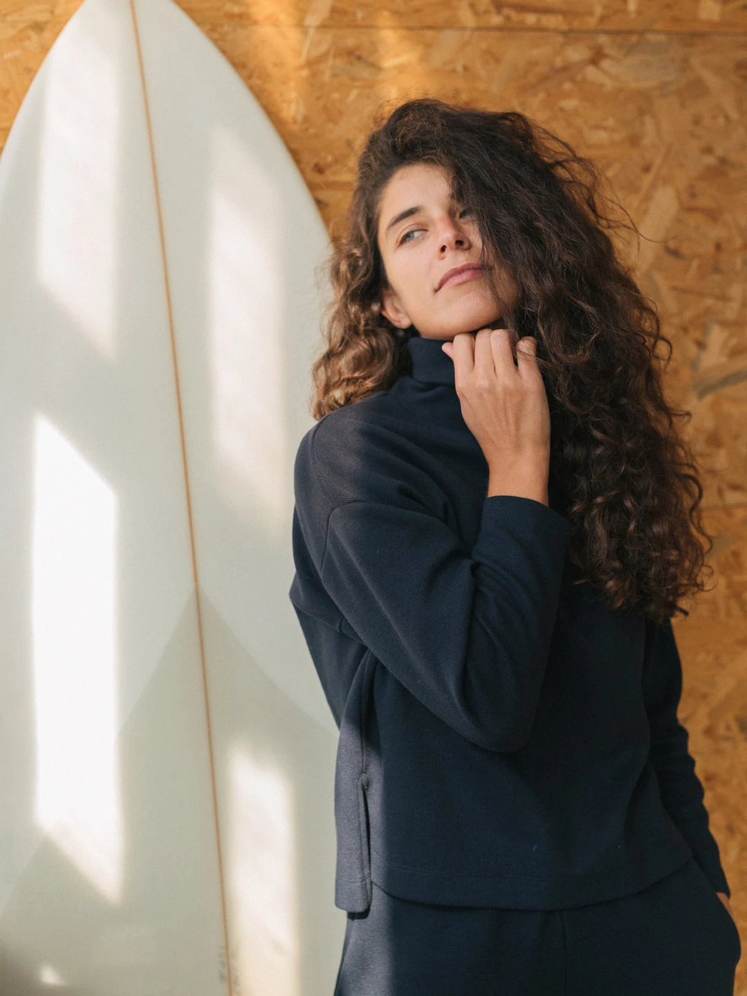 Feel cosy in the warmth of your home and our Contoy sweatshirt. With a turtleneck to feel warmer, dropped shoulders, a fairly loose fit and an organic cotton and recycled polyester fabric that’s gentle on your skin and durable. With cut edges on each side.