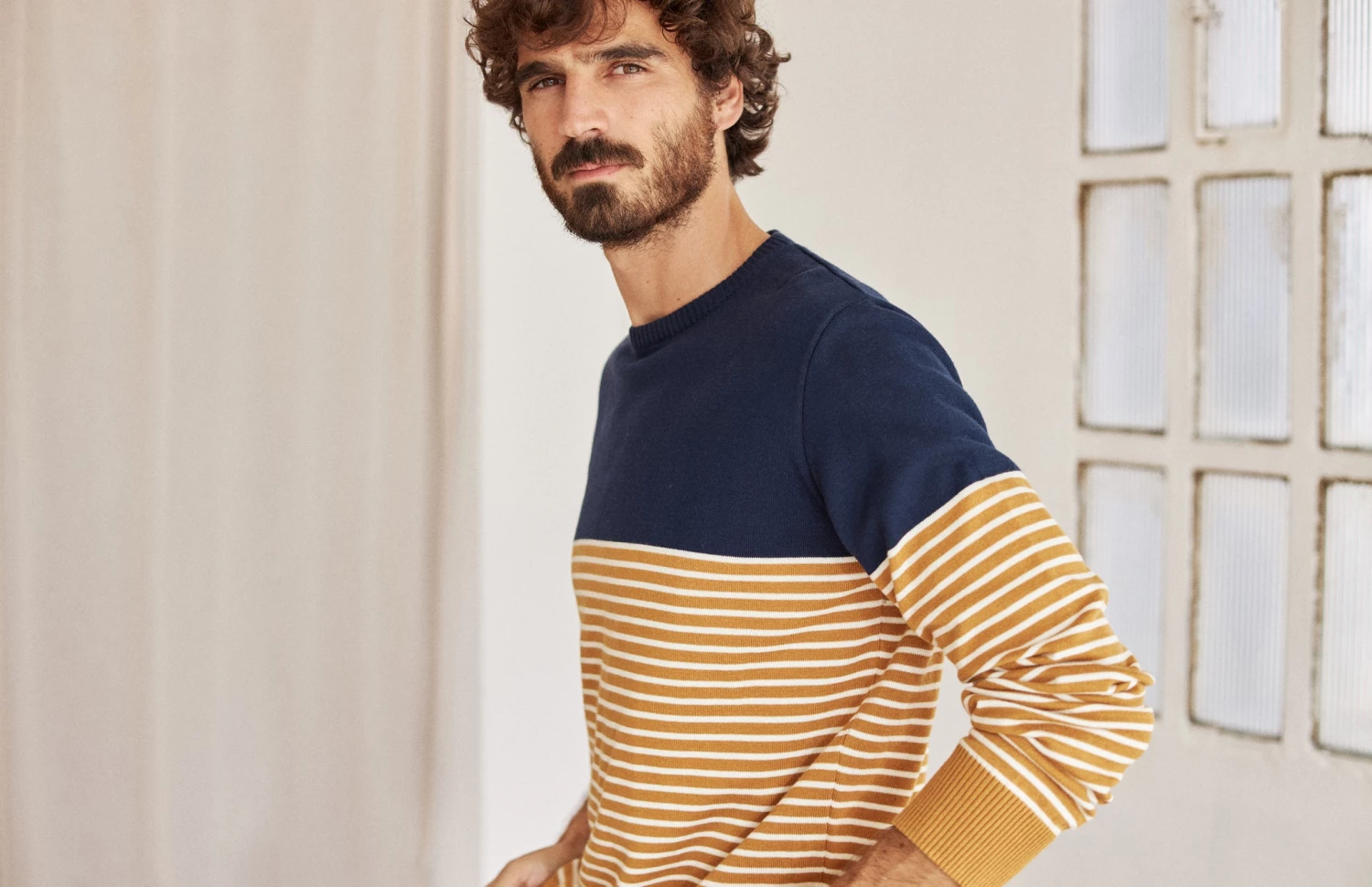 The Delos is a natural eye-catcher, which is why we love pairing it with rather plain pants or shorts such as beige or black chino trousers and denim jeans – the finest sustainable maritime look!