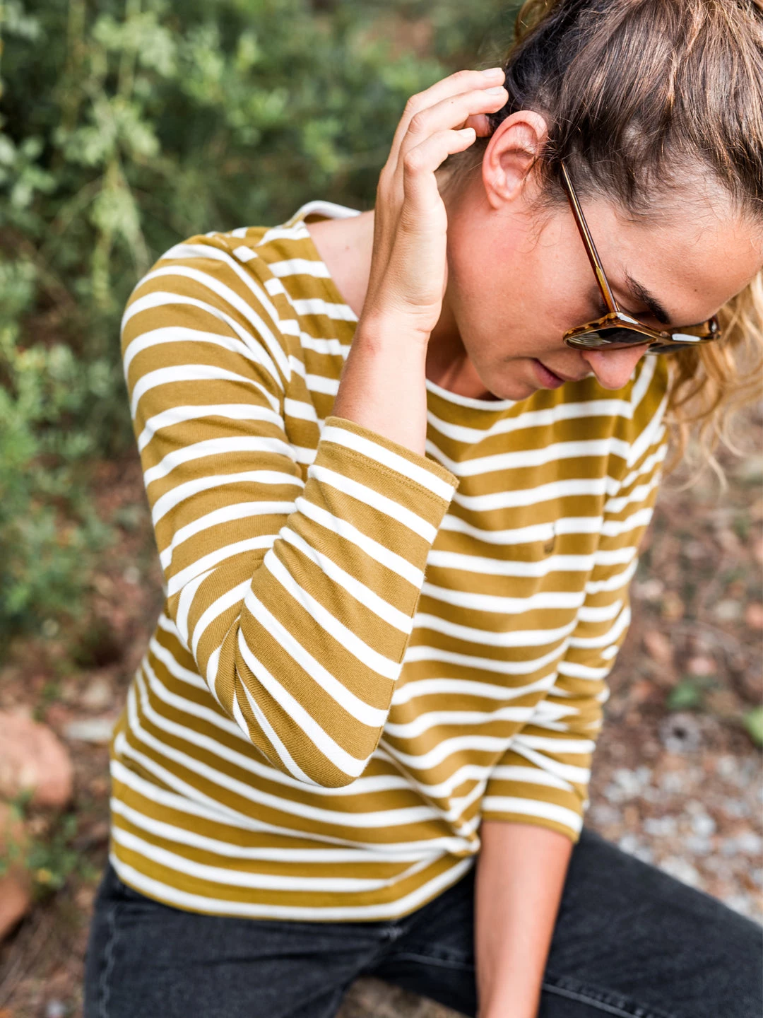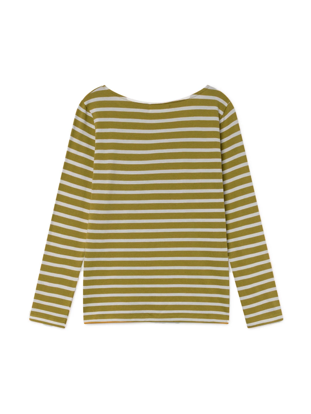 One of our most iconic styles, the Martinica, is made from a soft and gentle fabric. This tee has long-sleeves and thin colourful stripes all over. Designed with a regular fit and hip-length cut – featuring whale embroidery on the chest.