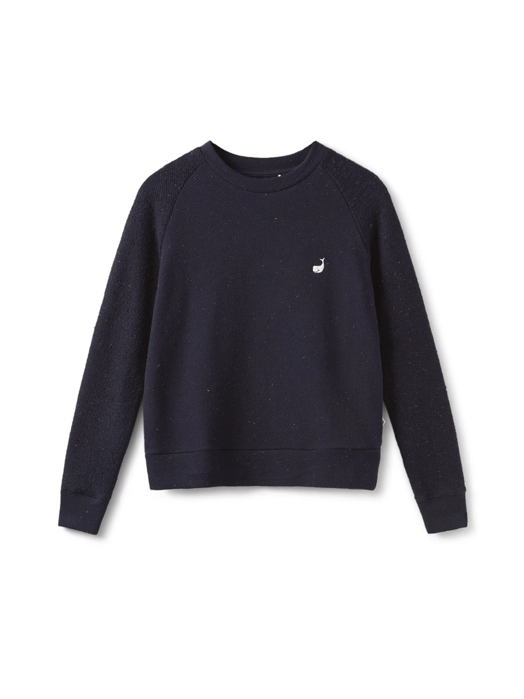 We are happy to present our Santa Fe sweatshirt. Made from dead stock, meaning recycled fabrics that factories often waste and throw away, with the sleeves turned up for a stylish touch. A regular fit that falls at hip-length, with whale embroidery on the chest.