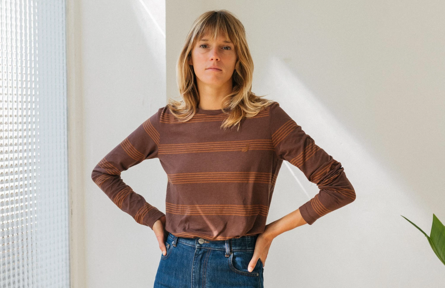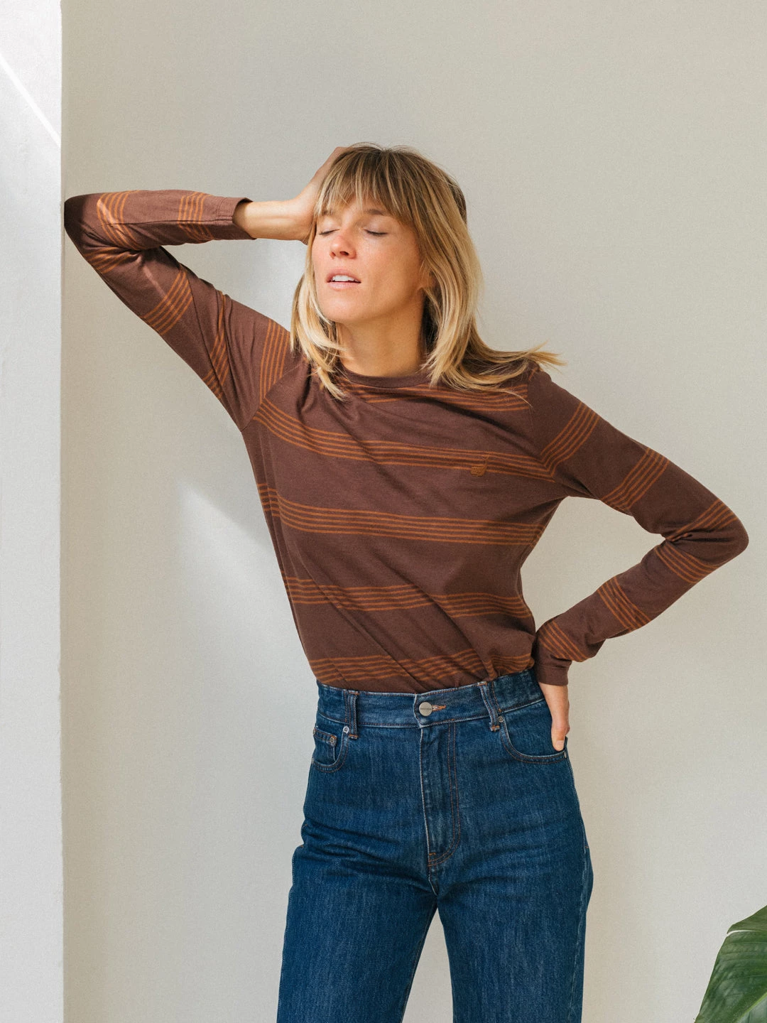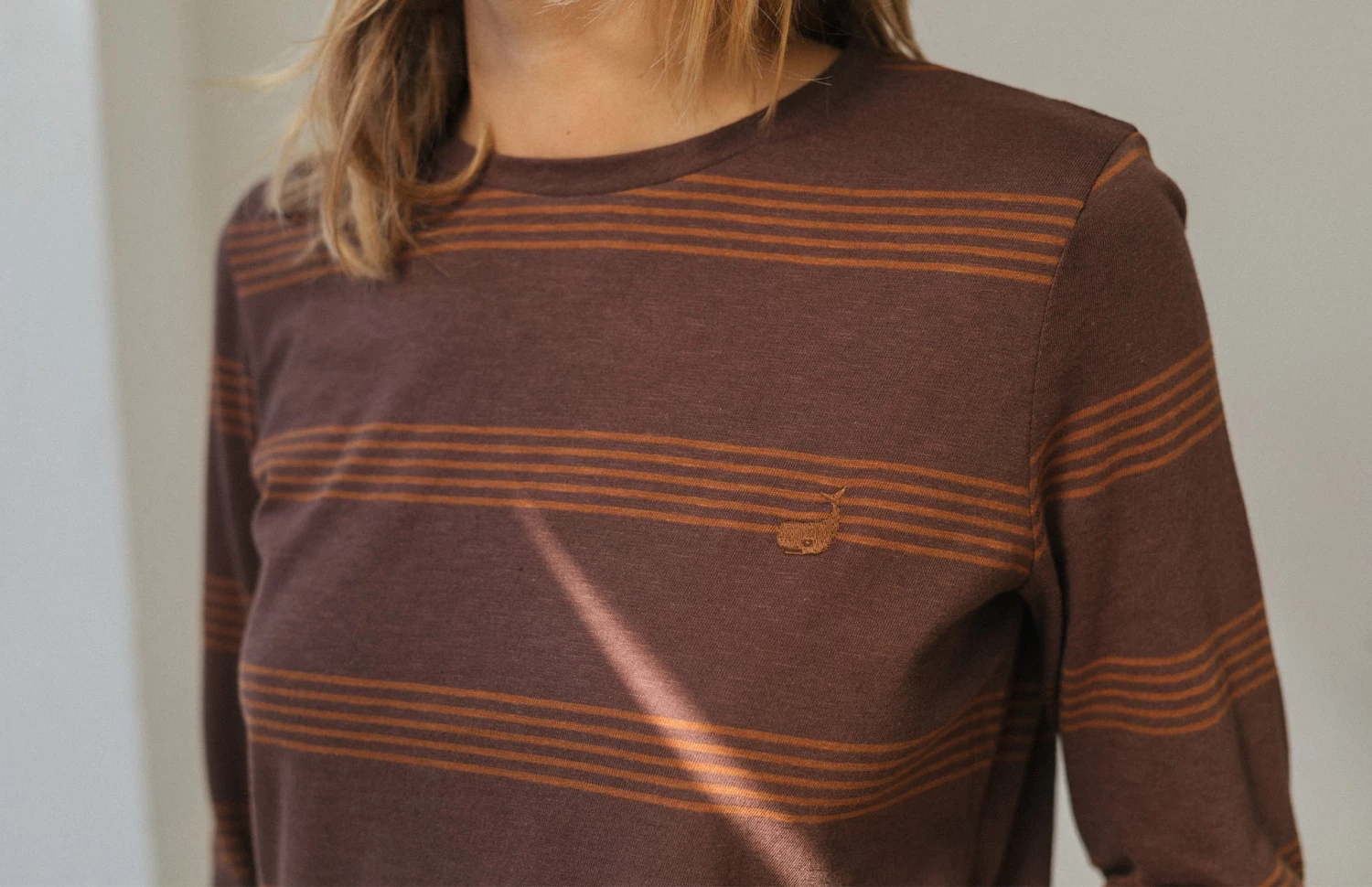 In a soft to the touch fabric and great for sensitive skin, we are excited to bring the Sisia top to our latest collection. Designed with an understated stripes pattern, featuring our iconic whale embroidery on the chest. This t-shirt comes with long sleeves, hip-length and in a regular fit.Â