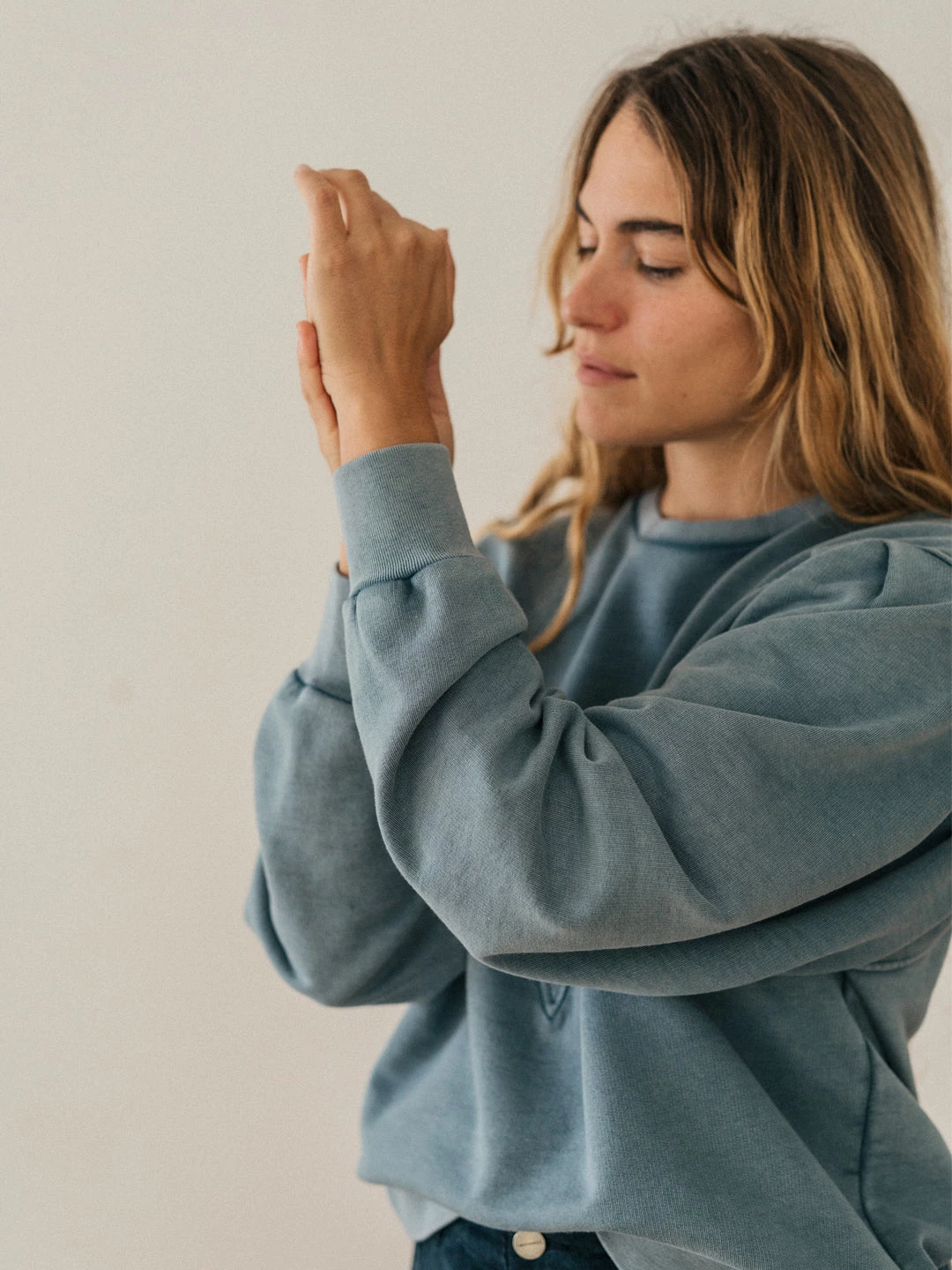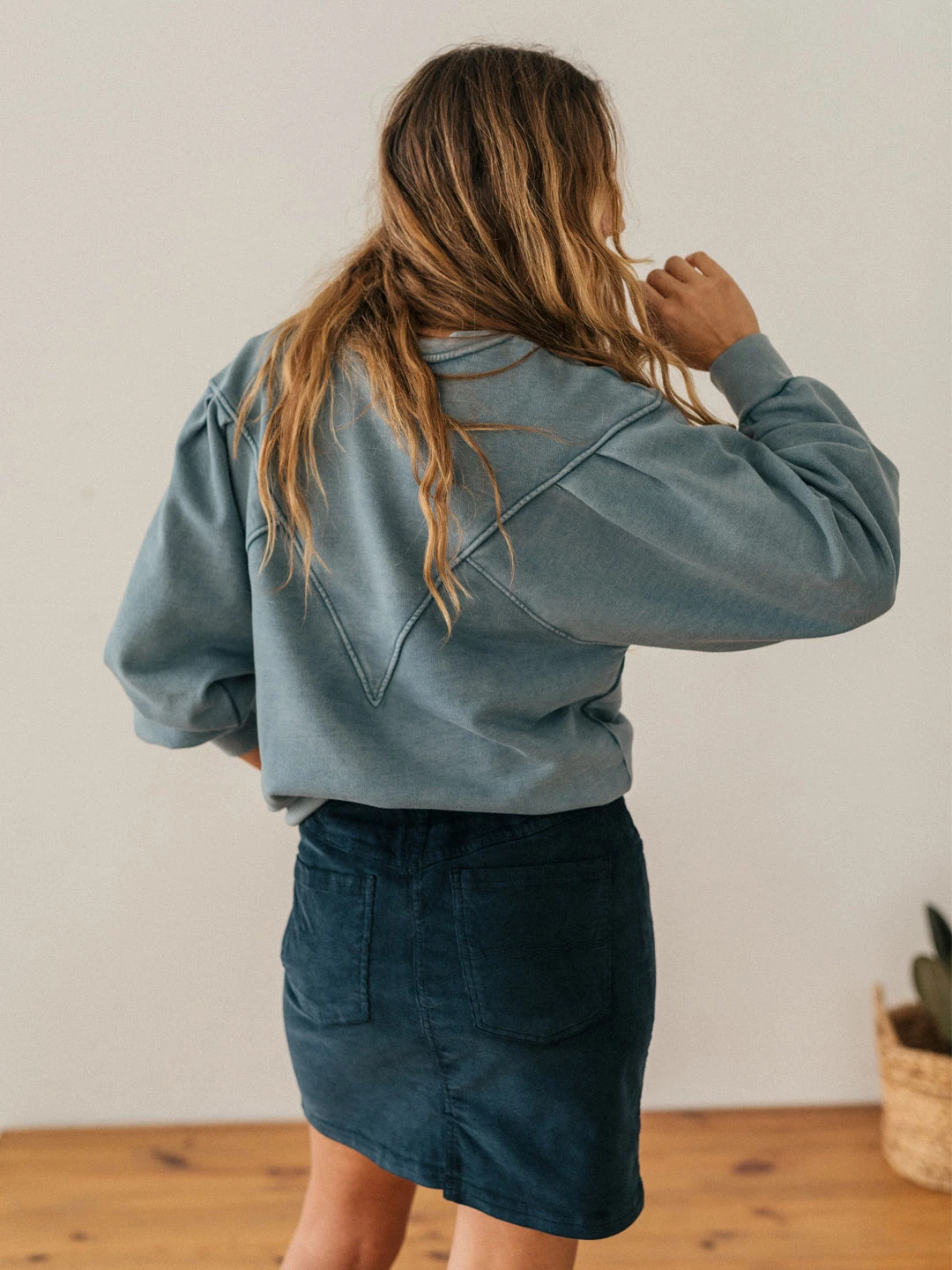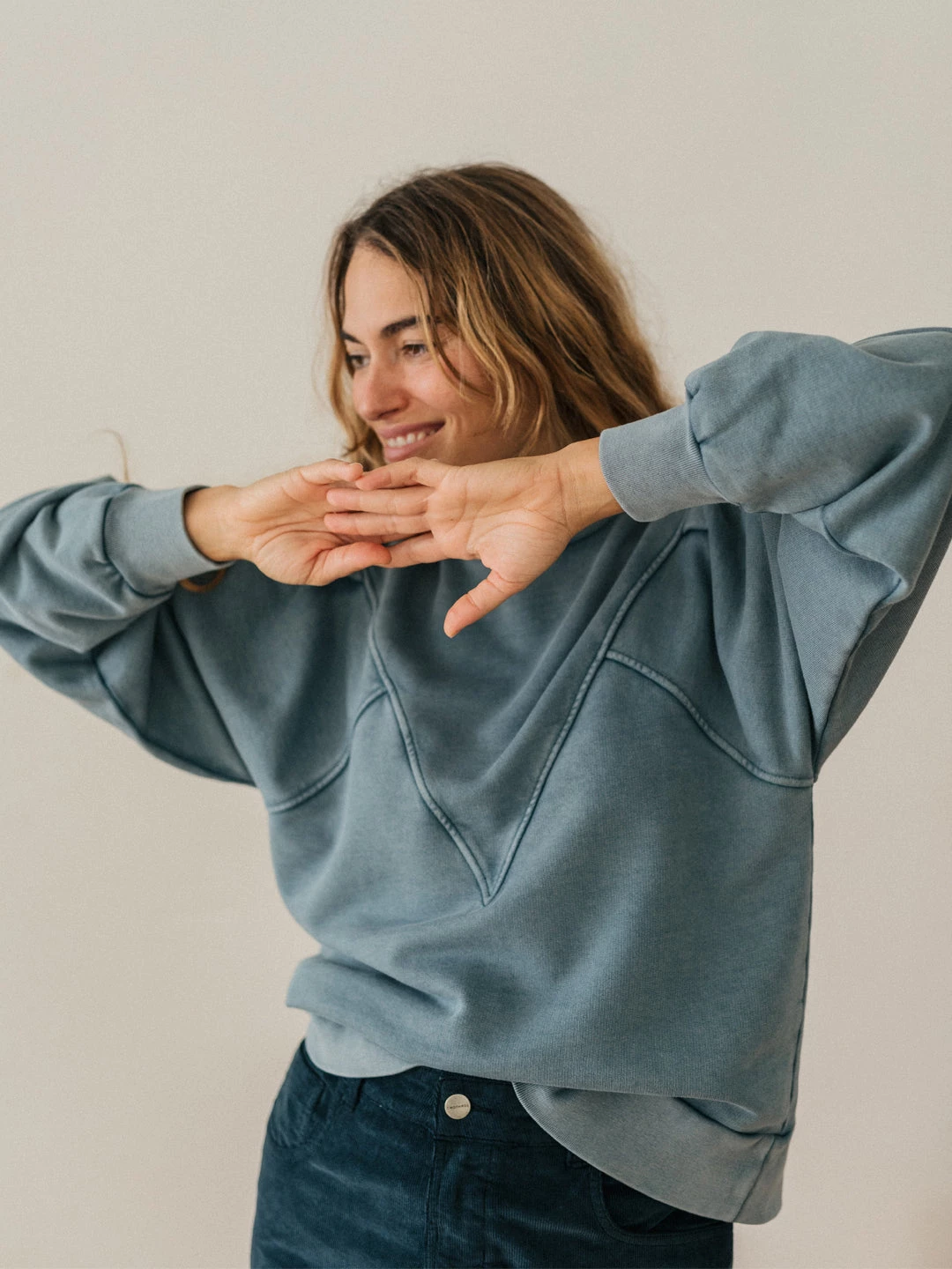 An eye-catching vintage style sweatshirt, thanks to its washed colour finish. The Skorpa features a triangular seam on the front and back and also features ribbed edges. It comes in an oversized fit and falls below the hips.