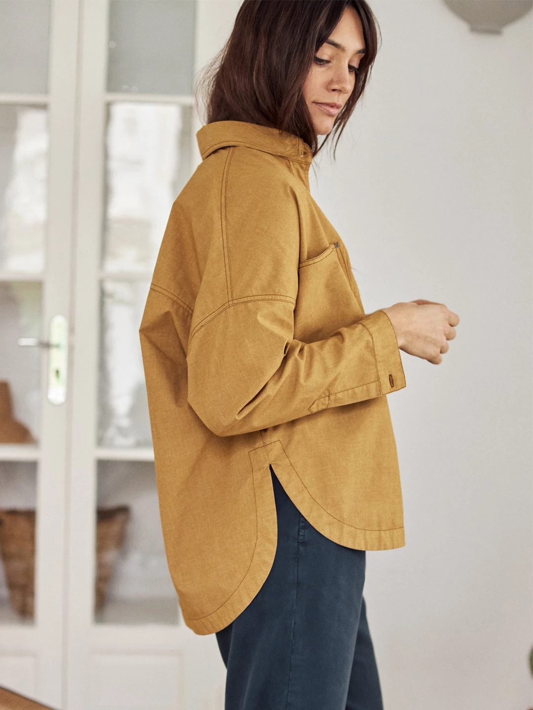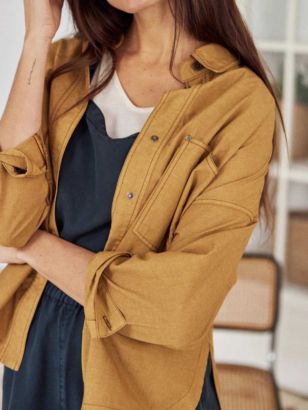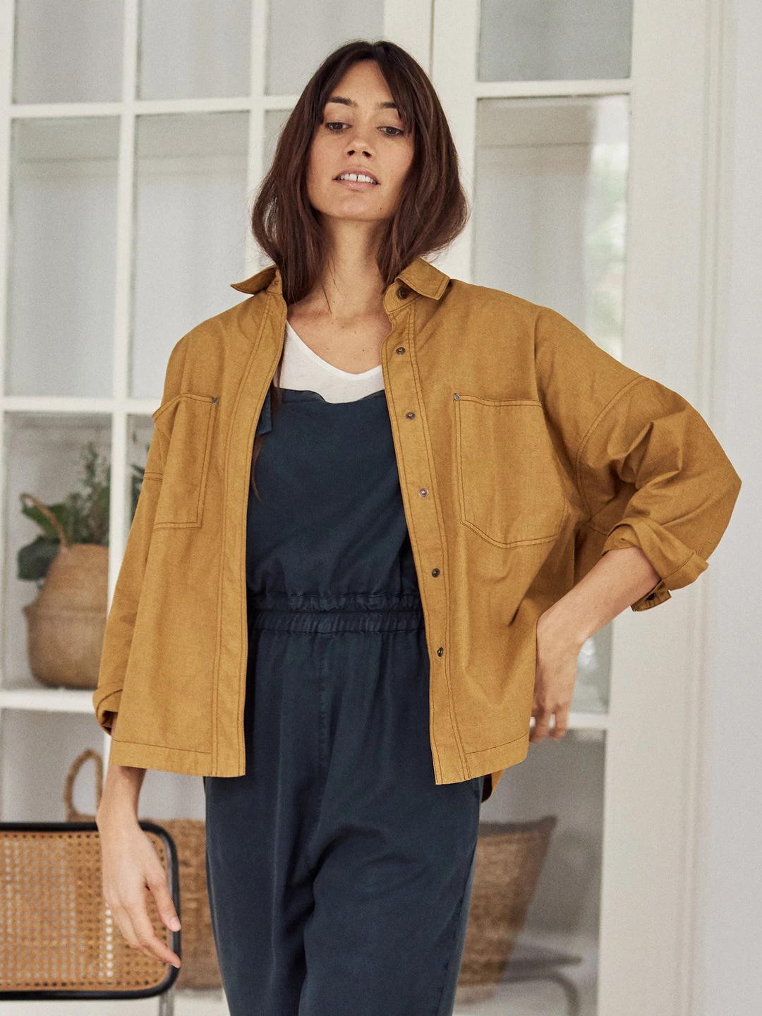 The Snape is a shirt style jacket, in a durable blend of sustainable fabrics. Designed with big front pockets, a regular collar and naturally sourced corozo buttons under the placket.Â