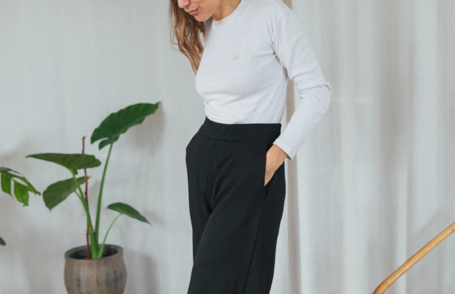 The Soto are composed entirely from ribbed organic cotton, without harmful chemicals, making them great against your skin. Perfect to wear at home with an oversized sweater while reading a book on your cosy couch. Check out our loungewear tops for the complete sustainable outfit.Â
