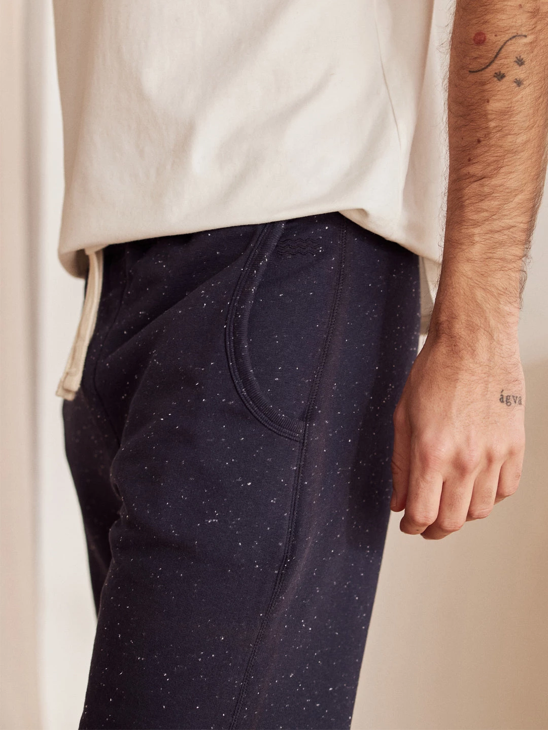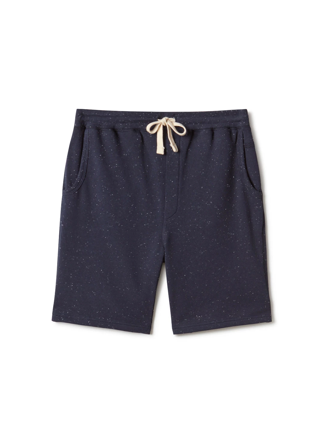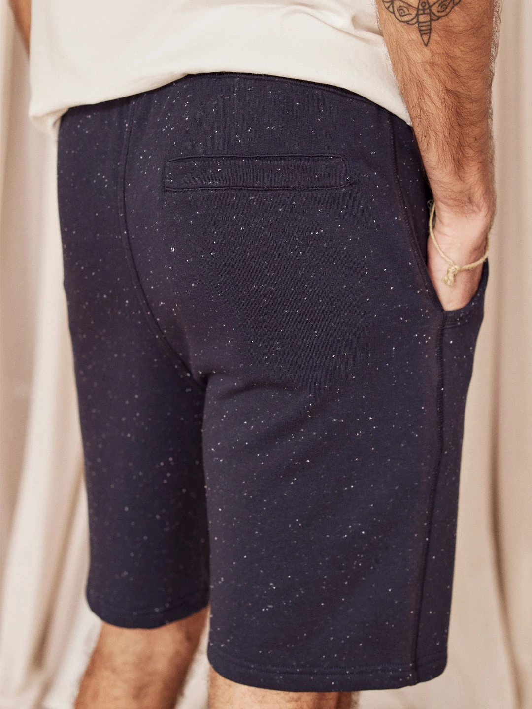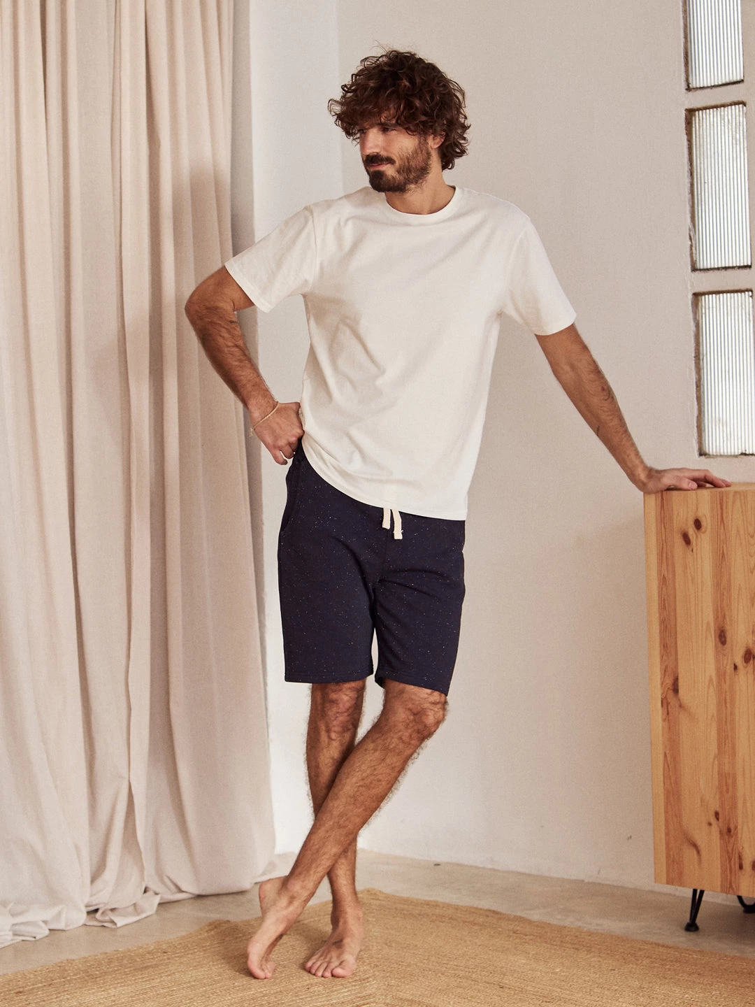 The Spitsbergen are a pair of comfy sweatshorts, made mainly of soft organic cotton with an addition of recycled plastic to avoid waste. Designed with white neps all over, a drawcord adjustable waist and 3 pockets – one on the back. It hangs on the waist in a loose fit.
