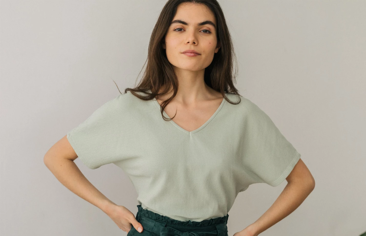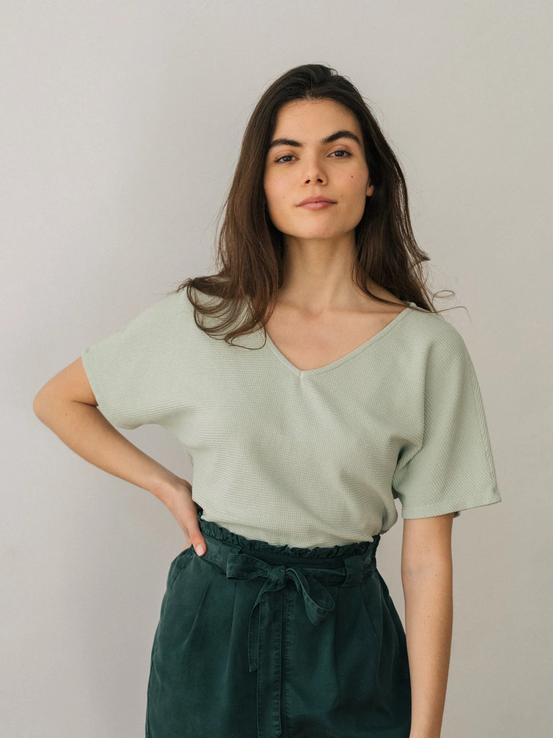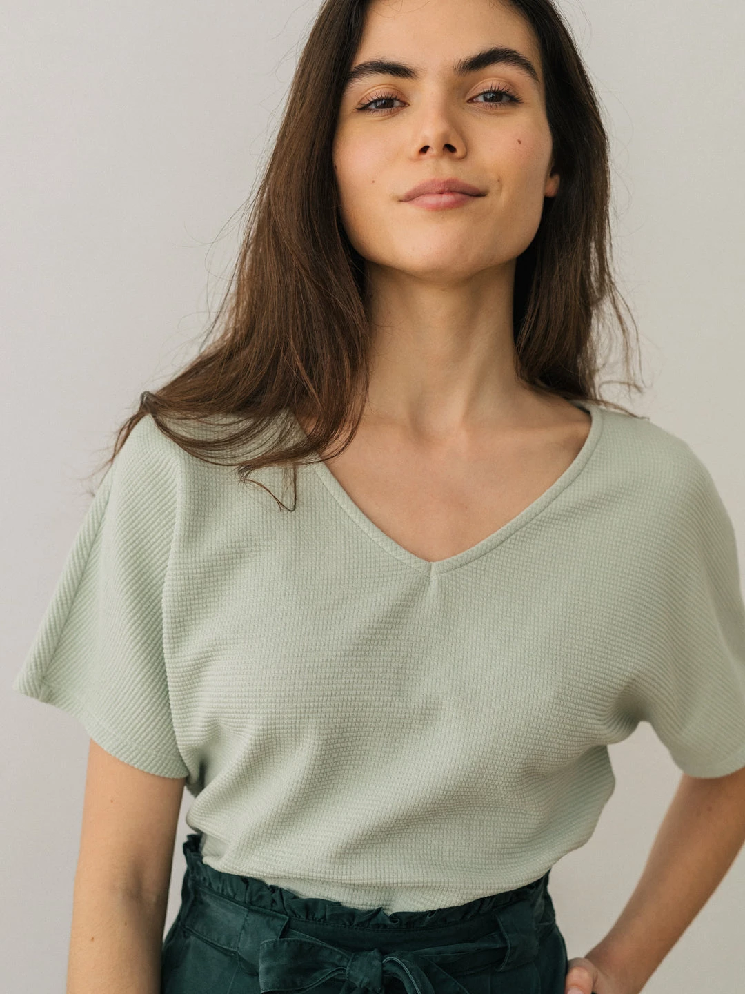 Presenting the Sprite top, which feels as good as it looks. Designed with a waffle texture, a V-neckline and short batwing sleeves. It comes in a fairly loose fit and hip-length cut. Â
