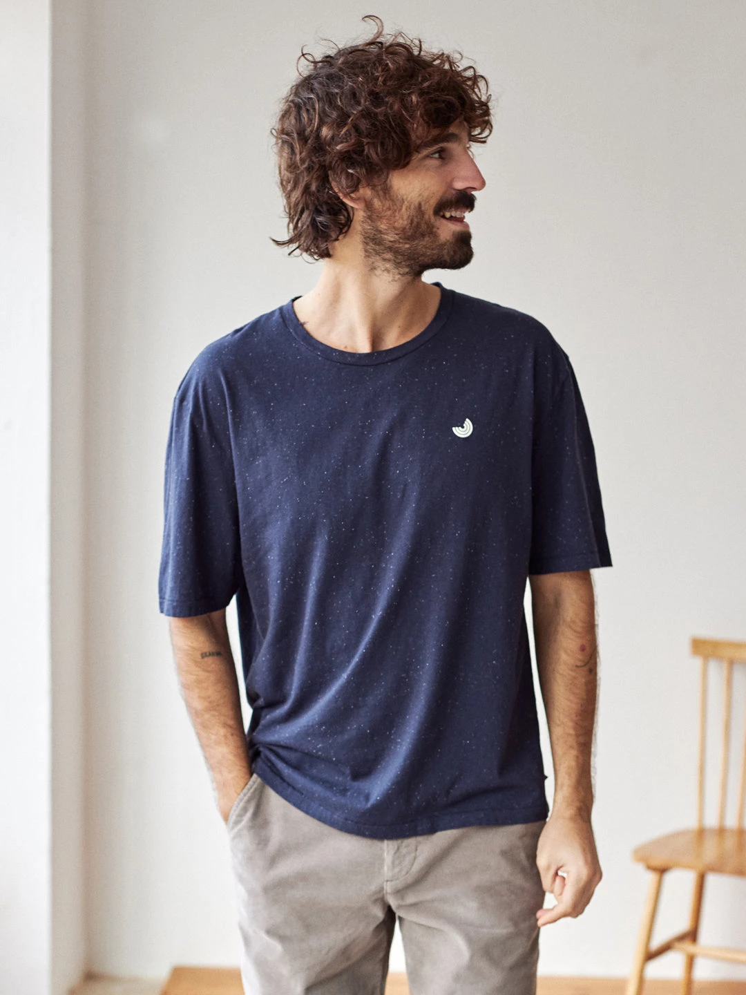 A beautiful staple, the Stag is a comfy and soft tee. With a simple design, featuring colourful neps all over and a 3D logo print on the chest. The garment comes in a regular fit and hip-length cut.