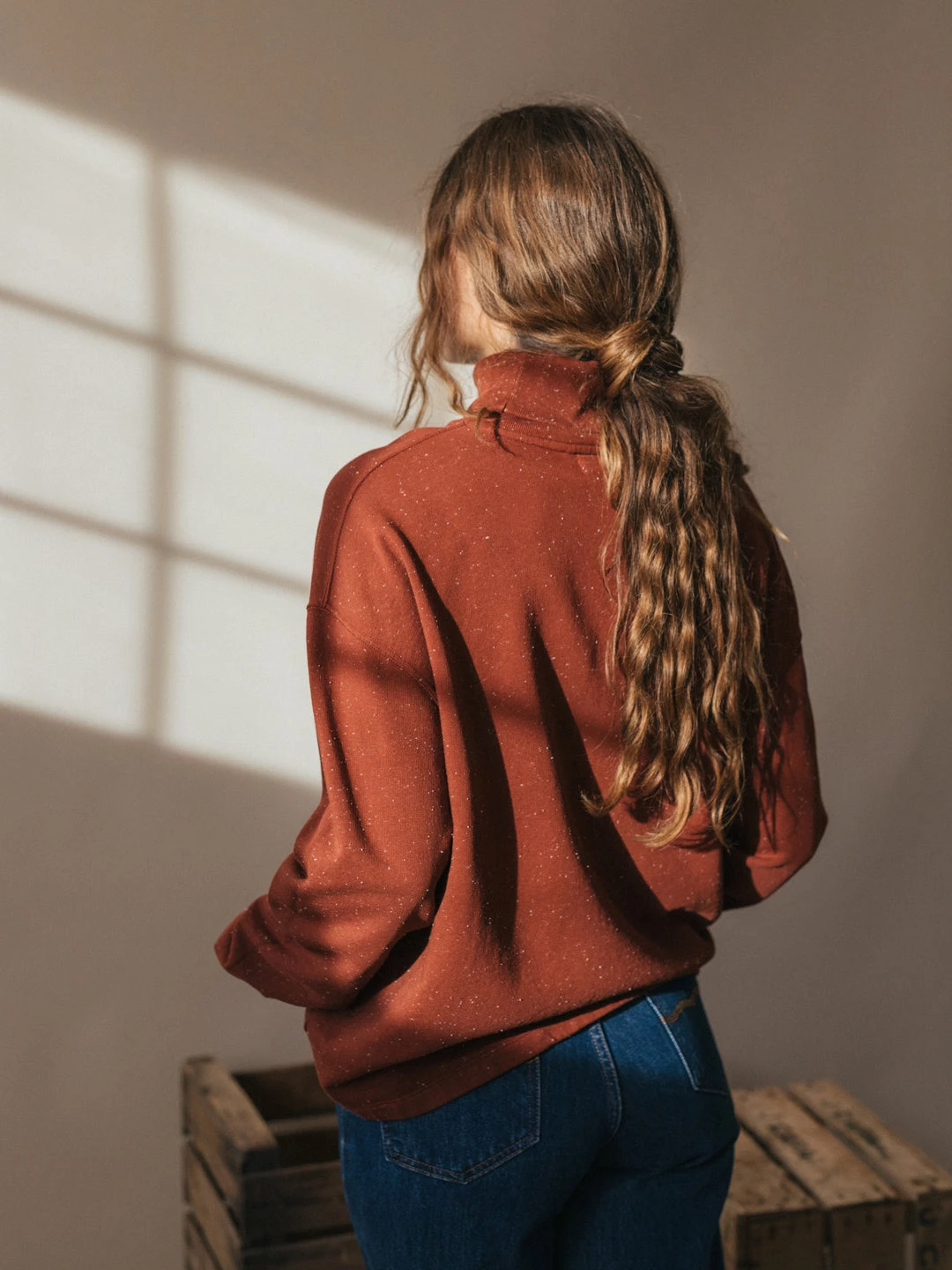 The Guajaba sweat has the potential for some stunning outfits: you can pair it with a light-colour skirt with some stockings and platform boots. Or some overalls with low shoes or sneakers for a more casual look.