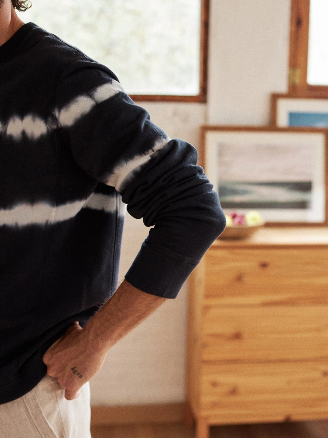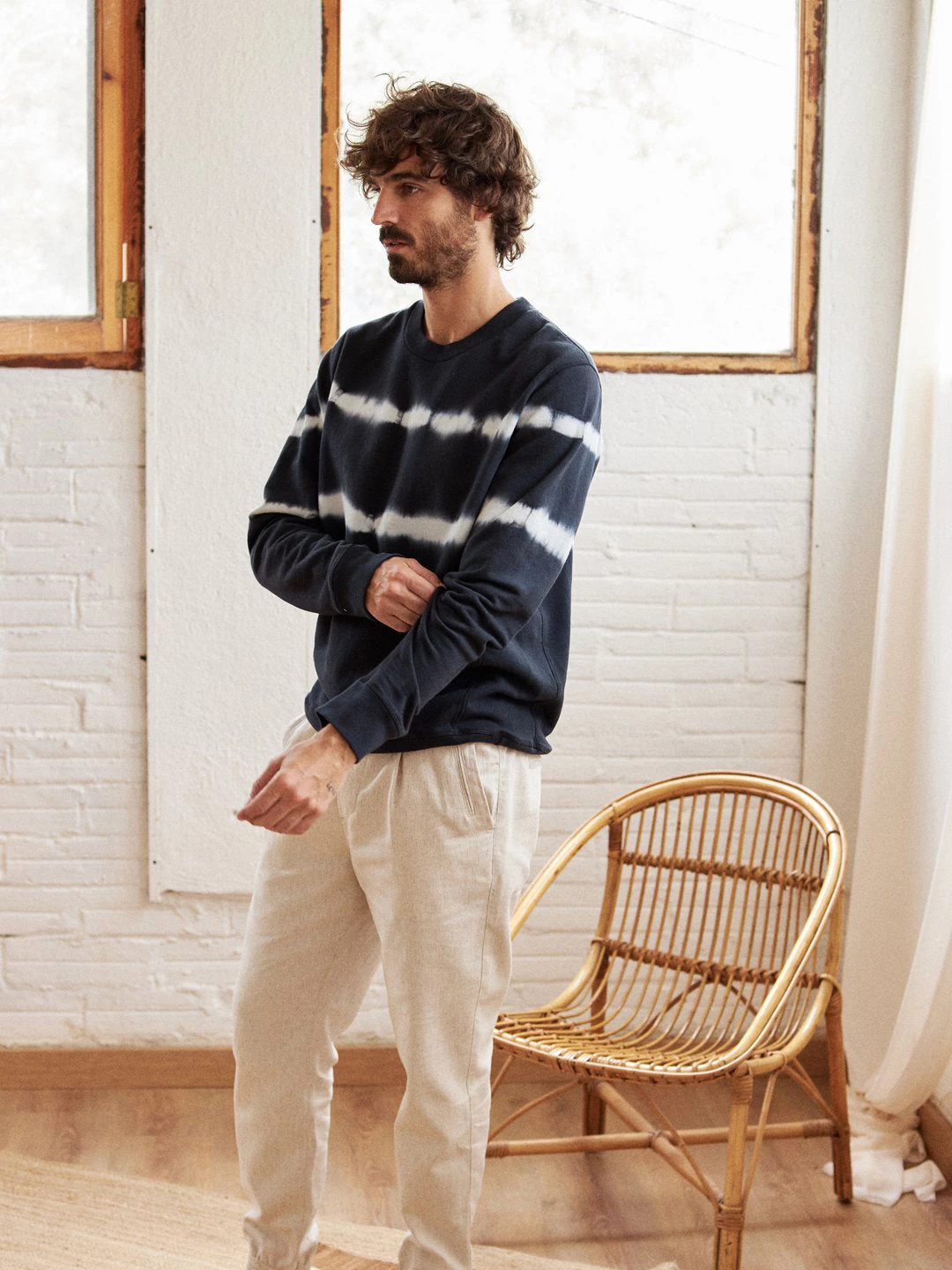 Tie-dye stripes on the chest and a comfy, soft fabric: the Manus sweatshirt. It is designed with ribbed edges, a regular fit and hip-length cut.Â