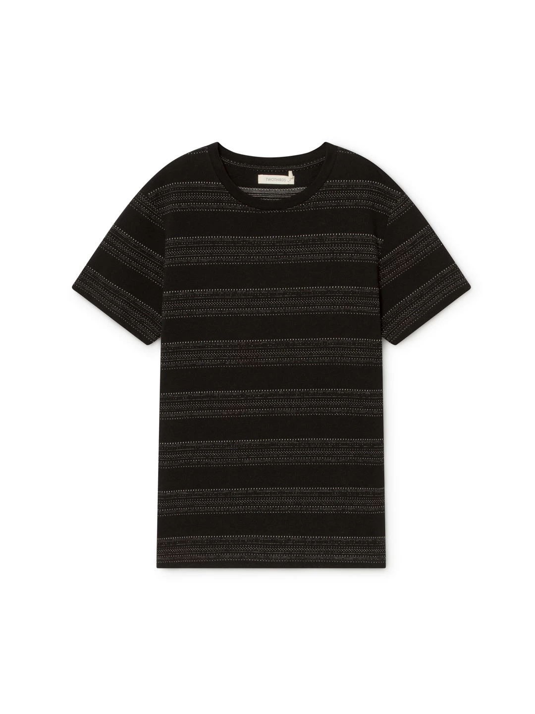A soft feeling on your skin, the Symi will be a wonderful addition to your wardrobe. A versatile tee, designed with a beautiful black colour and stripes style. It comes in a regular fit and hip-length cut.Â