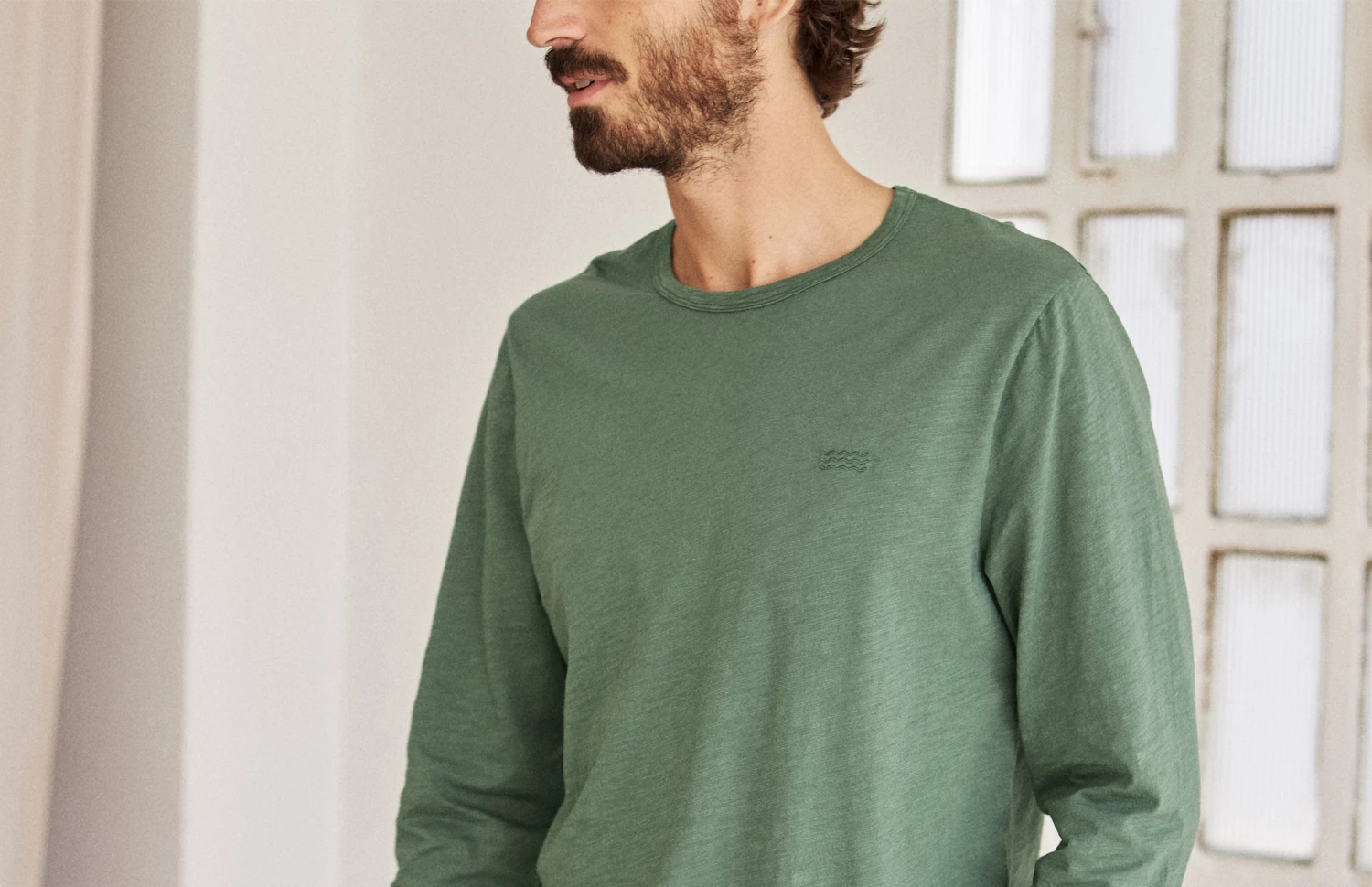 The Monhegan is a long sleeve t-shirt, produced with an extremely soft fabric. It’s designed with a ribbed neckline and wave embroidery on the chest symbolizing our love for the ocean. It also features a small triangular label with our printed logo and it comes in a regular fit.Â