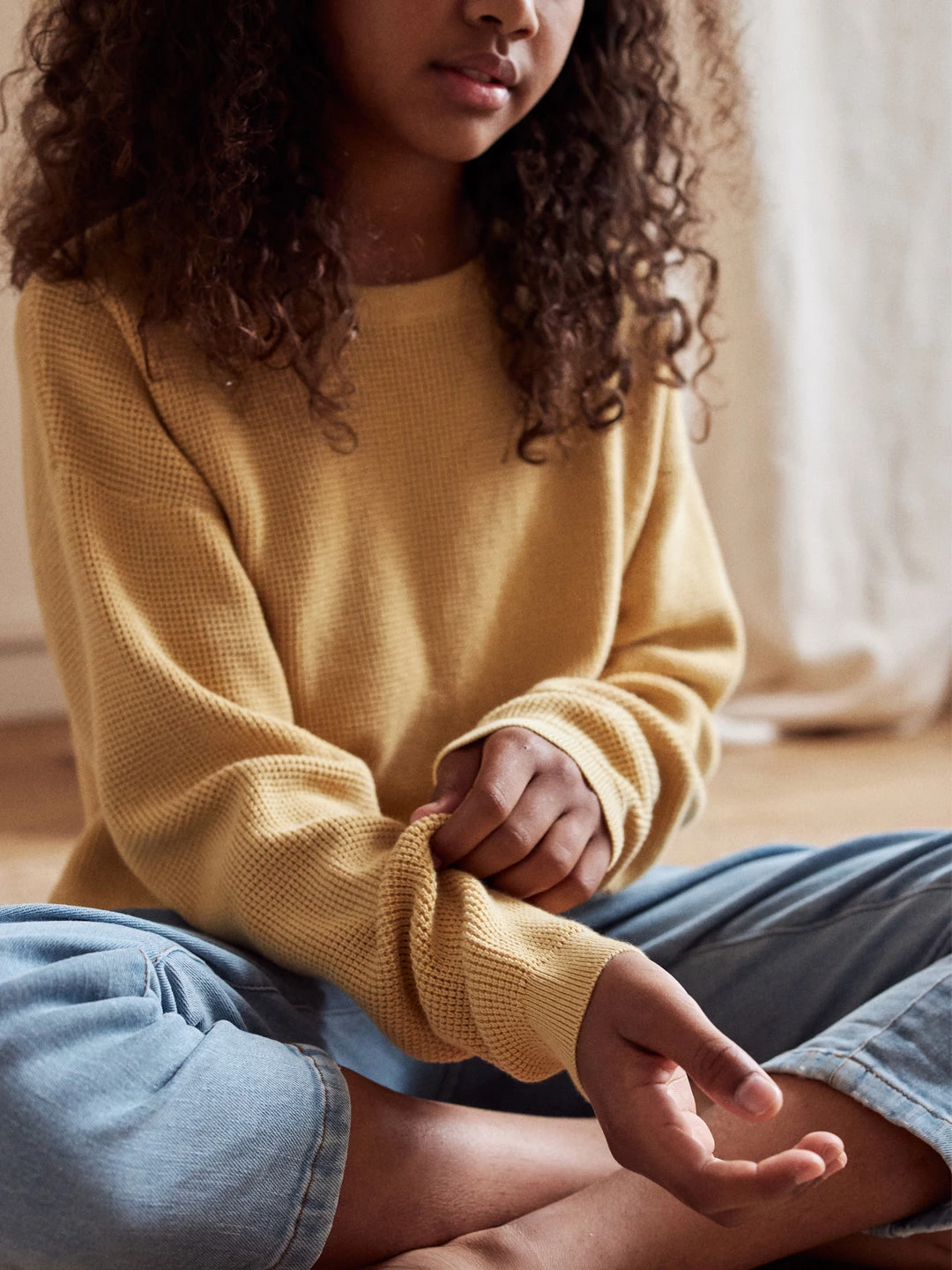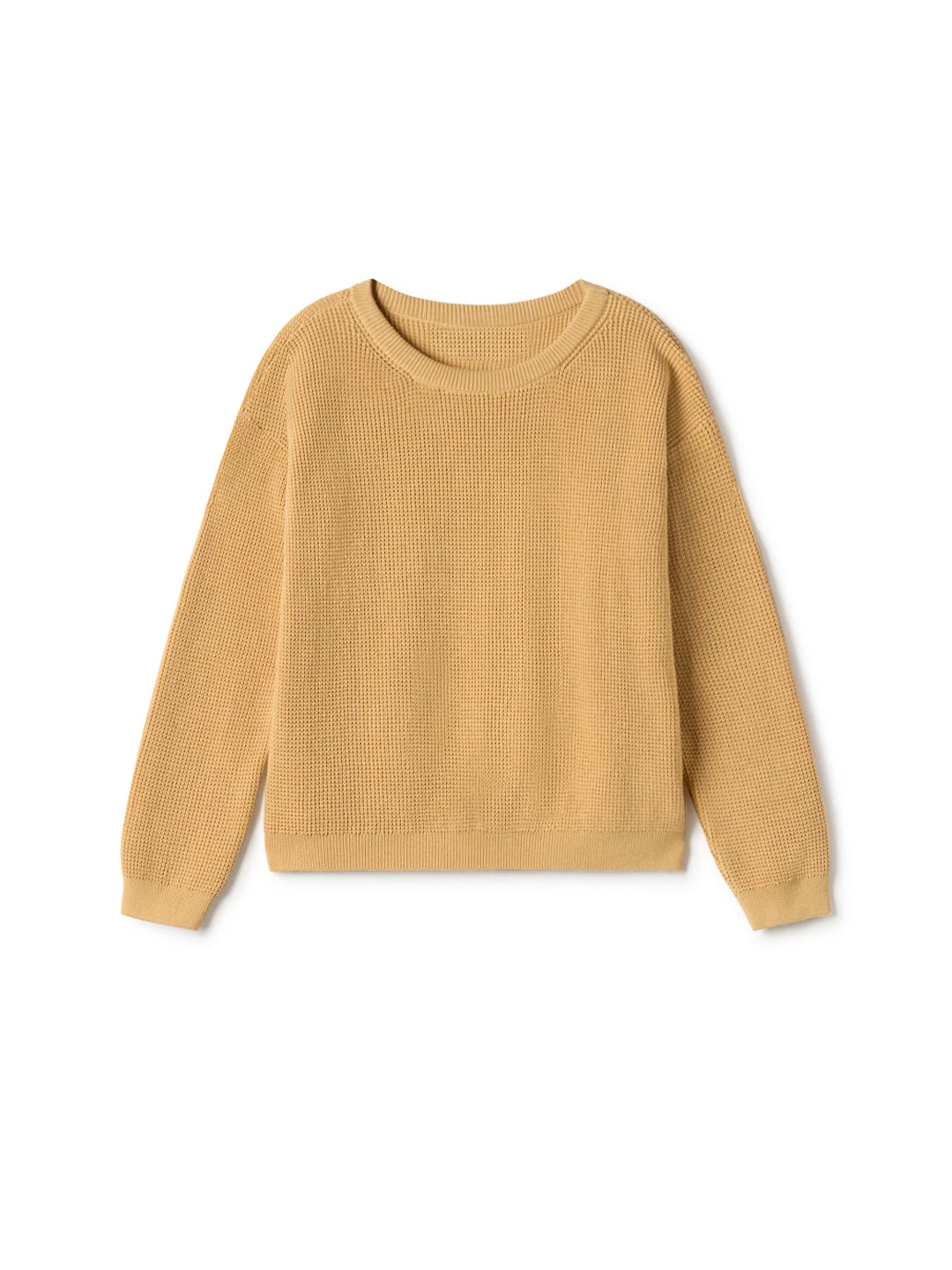 A soft pineapple colour, the Tallow is a lightweight knit for the little (and bigger) ones! A ribbed design for that cosy feeling, with slightly dropped shoulders to complete a comfortable oversized fit.Â