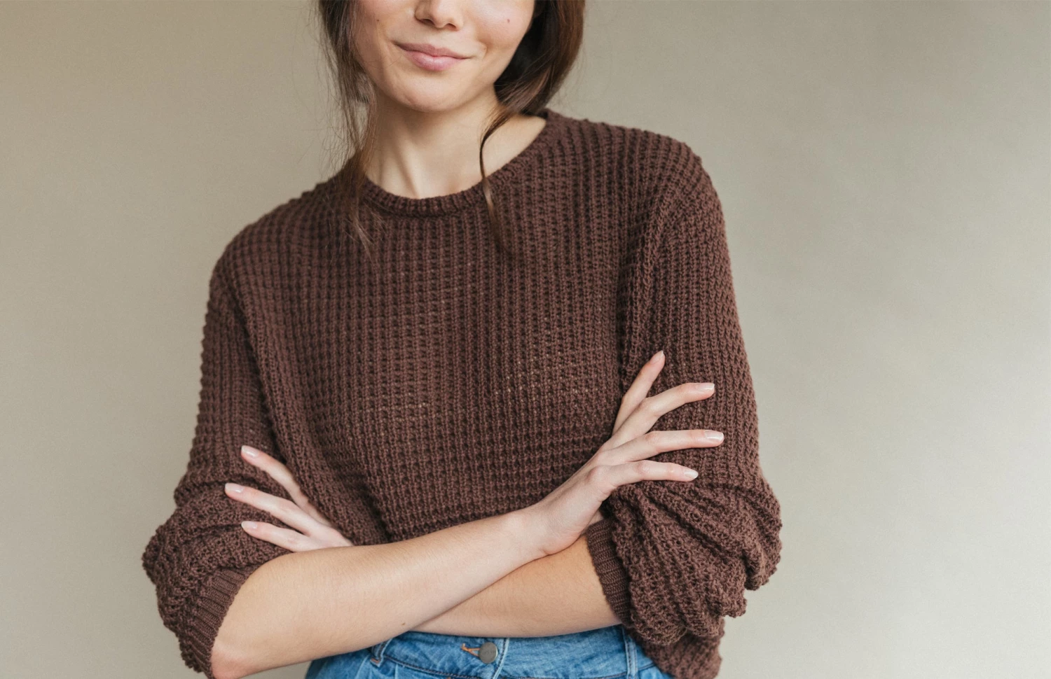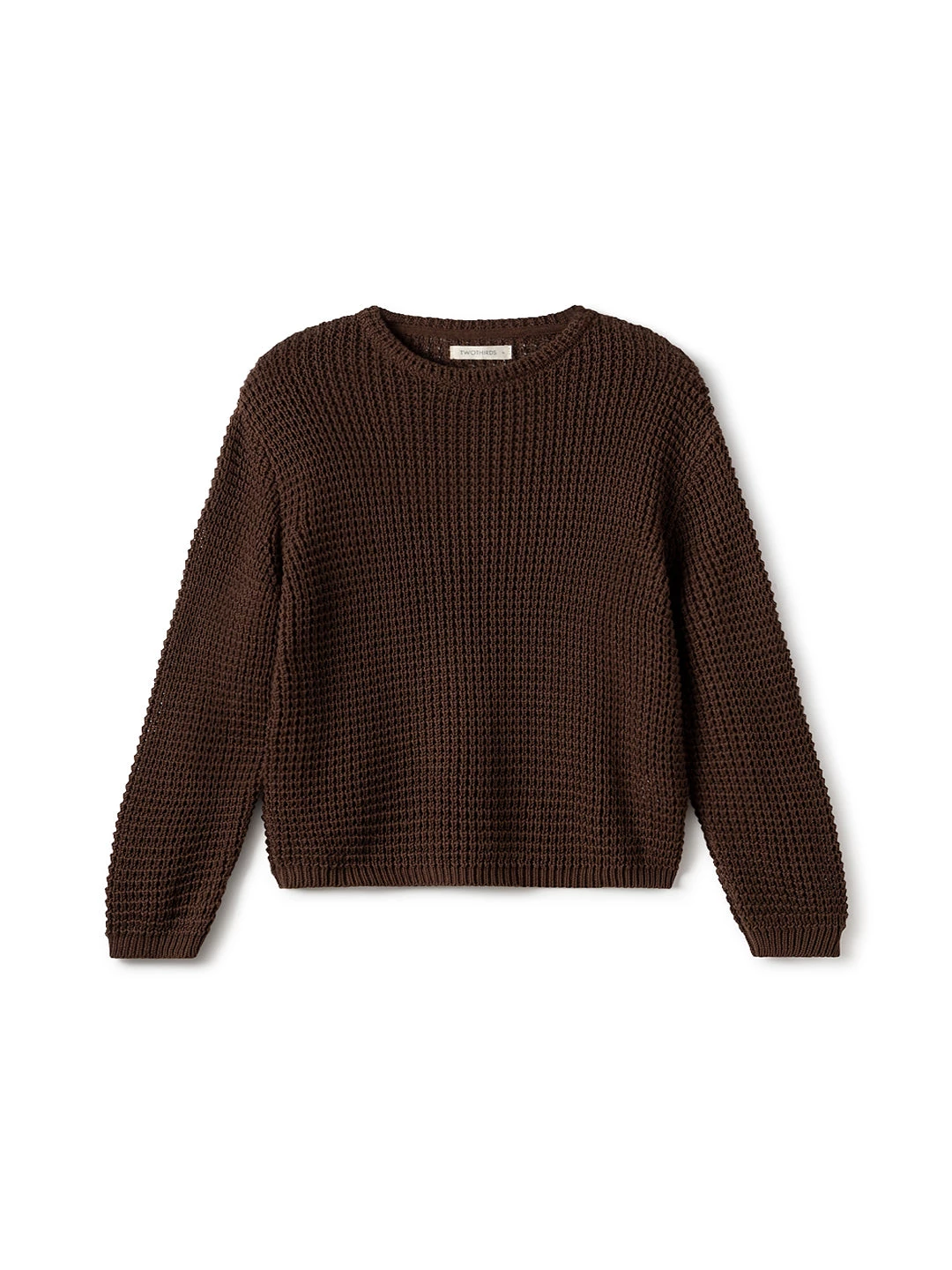 Seeing how much love our other Teresa knits received, we wanted to bring you a new colour! We’ve kept the oversized yet shortened look that made this knit into an instant hit. So that’s a mid-length cut, with a round collar and loose feel.Â