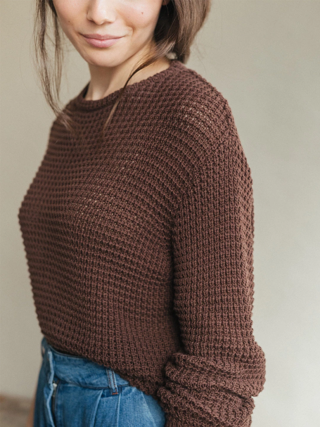 The neutral colour of this knit makes it really easy to match. Try it out with a skirt or some shorts for a summery look. Of course, it would also look amazing with a denim overall.