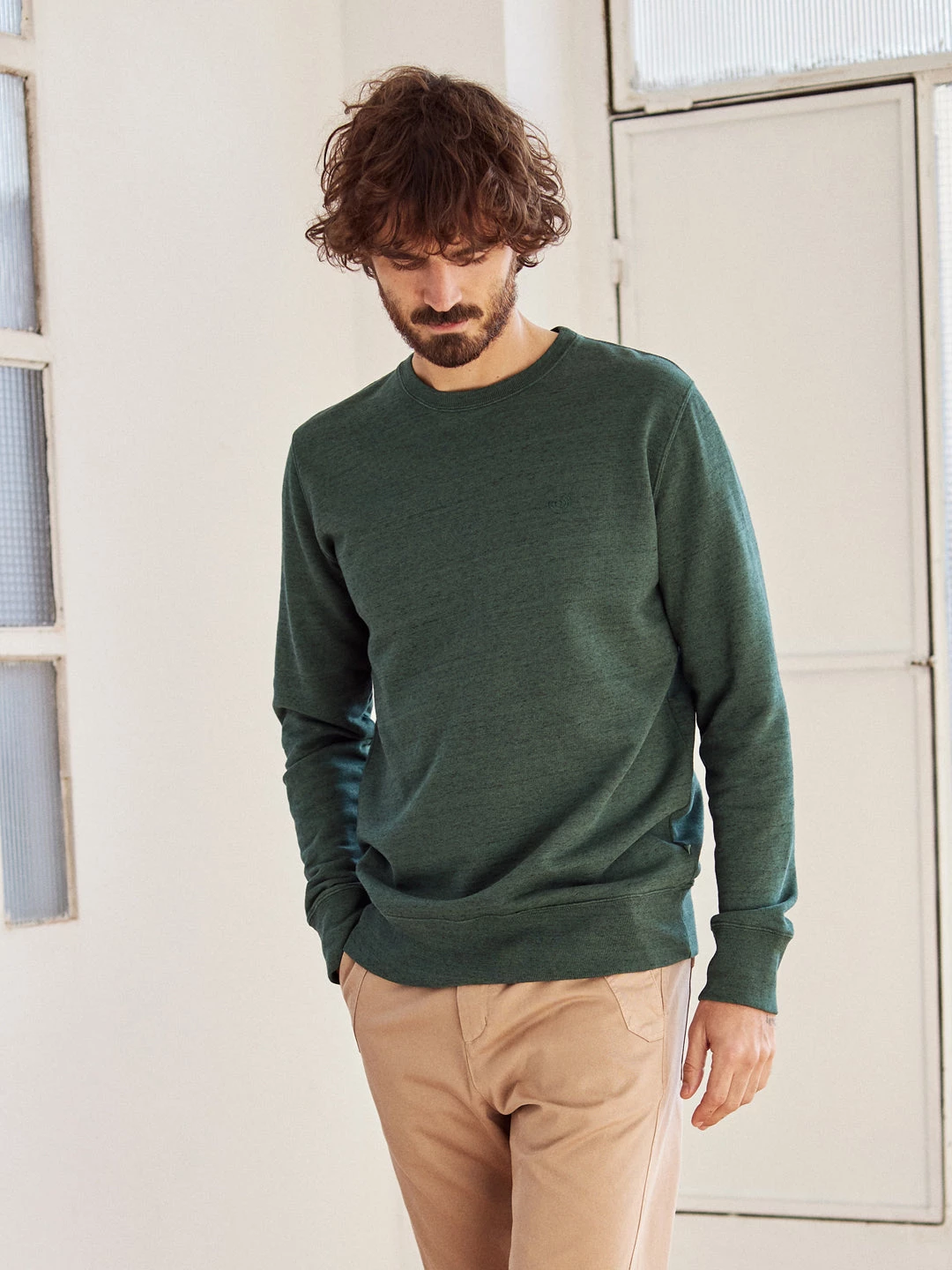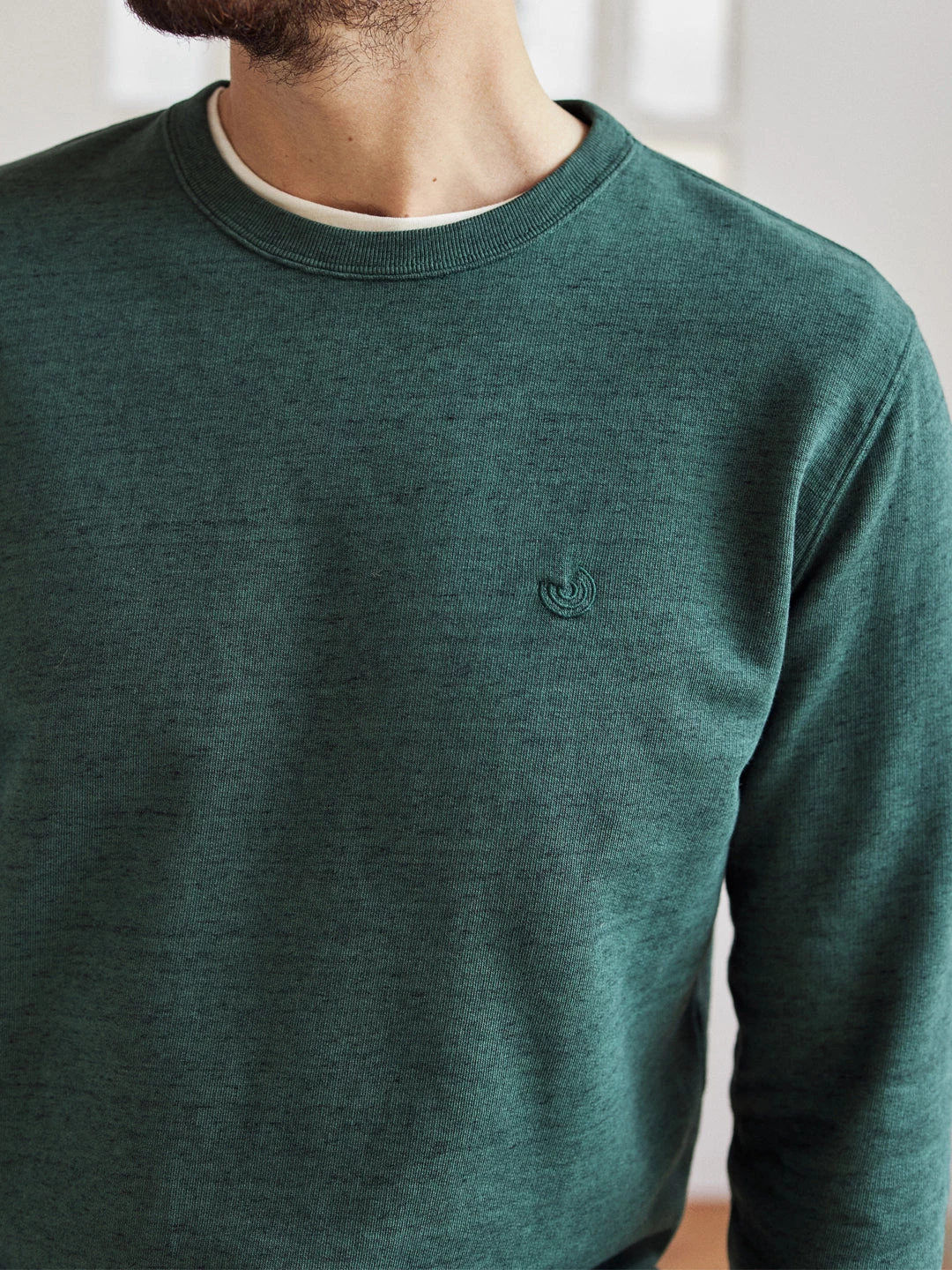 Here’s the Thankes sweatshirt in a cosy organic fleece fabric with streaked pattern. It has a simple design, with ribbed edges, slightly dropped shoulders and our logo embroidered on the chest. It comes in a regular fit and hip-length cut.