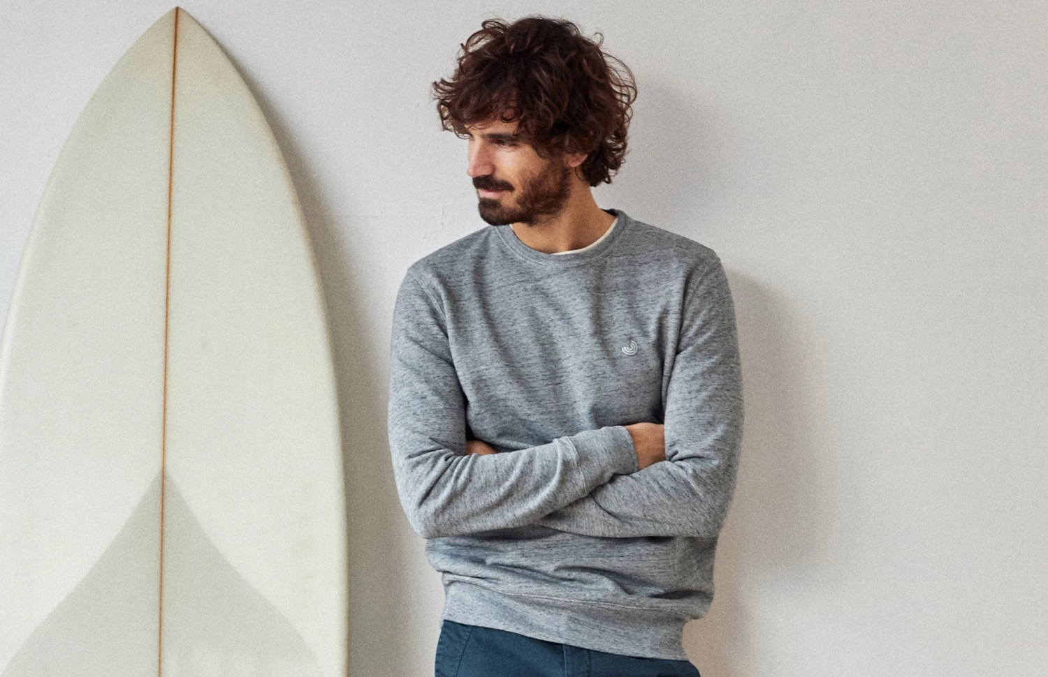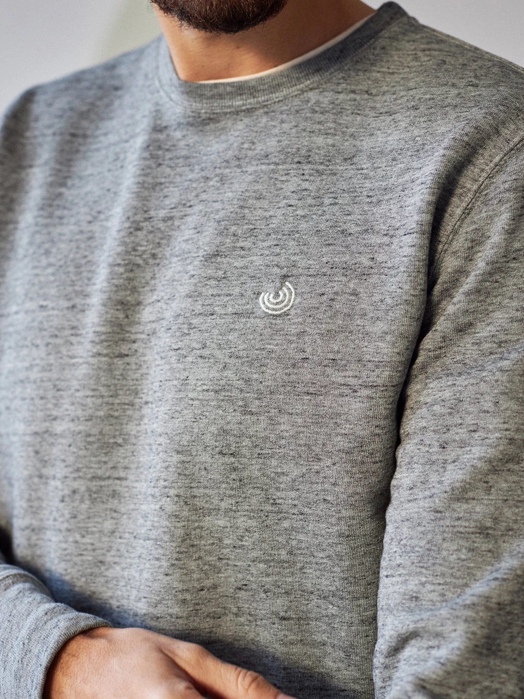 Here’s the Thankes sweatshirt in a cosy organic fleece fabric with streaked pattern. It has a simple design, with ribbed edges, slightly dropped shoulders and our logo embroidered on the chest. It comes in a regular fit and hip-length cut.