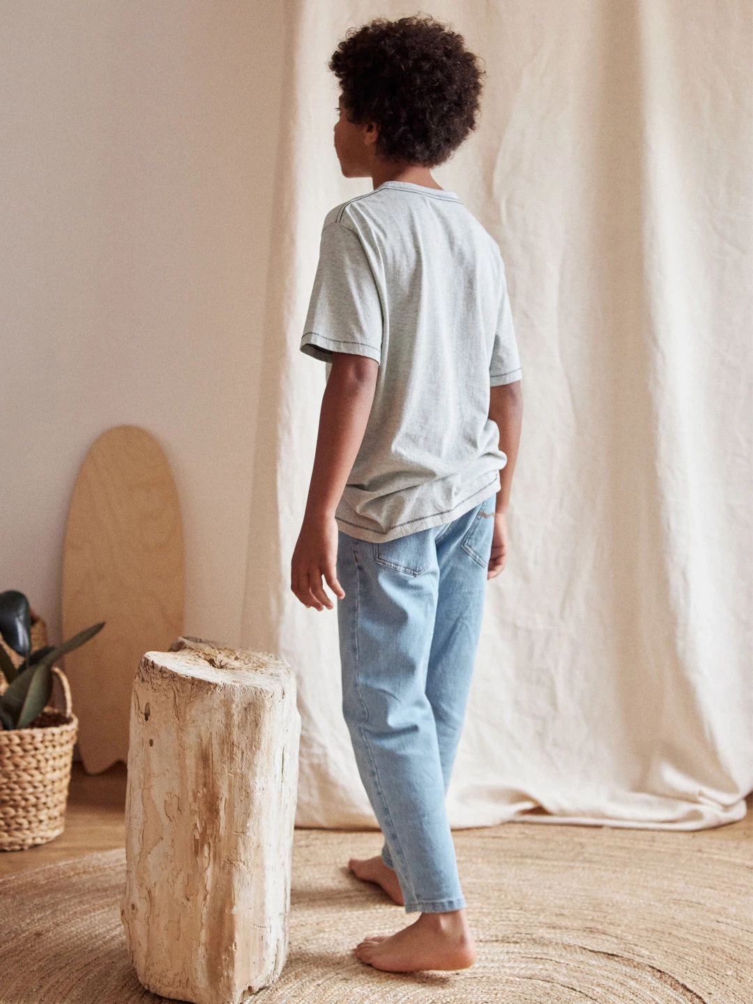 We are all “children of the ocean”! The words encircle a wave print and with the Cronulla you will always feel the sea by your side. A lightweight tee, in a soft organic fabric and beautiful aqua colour.