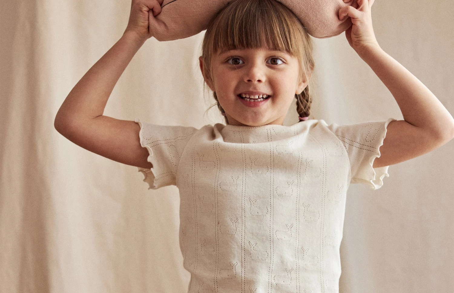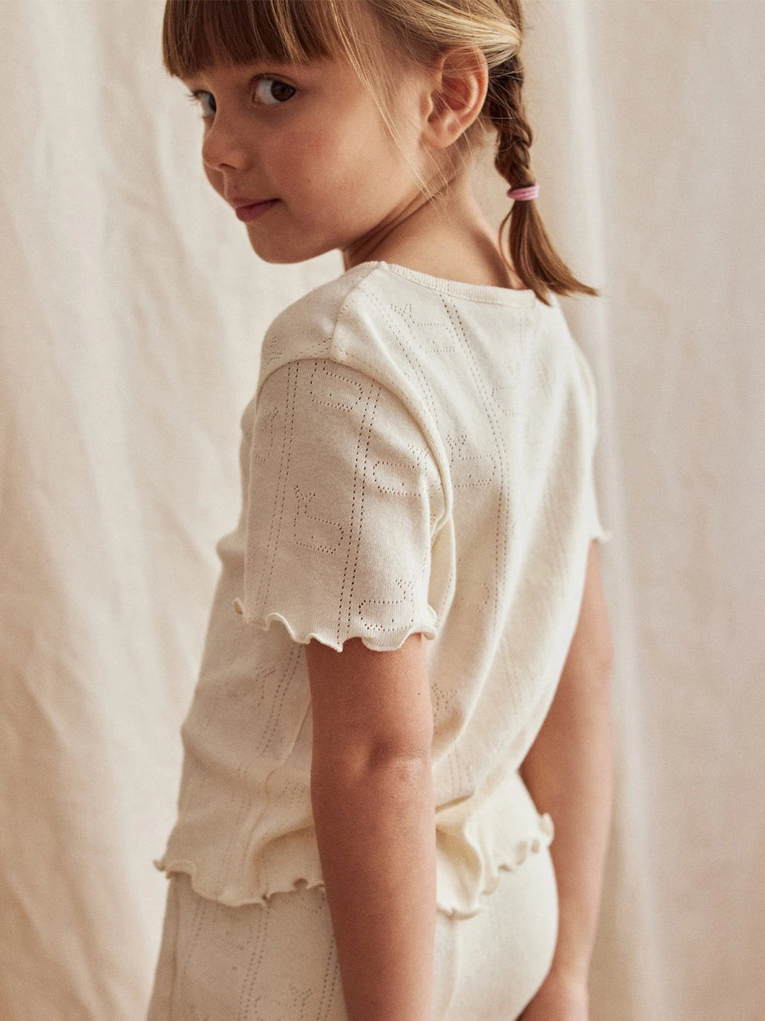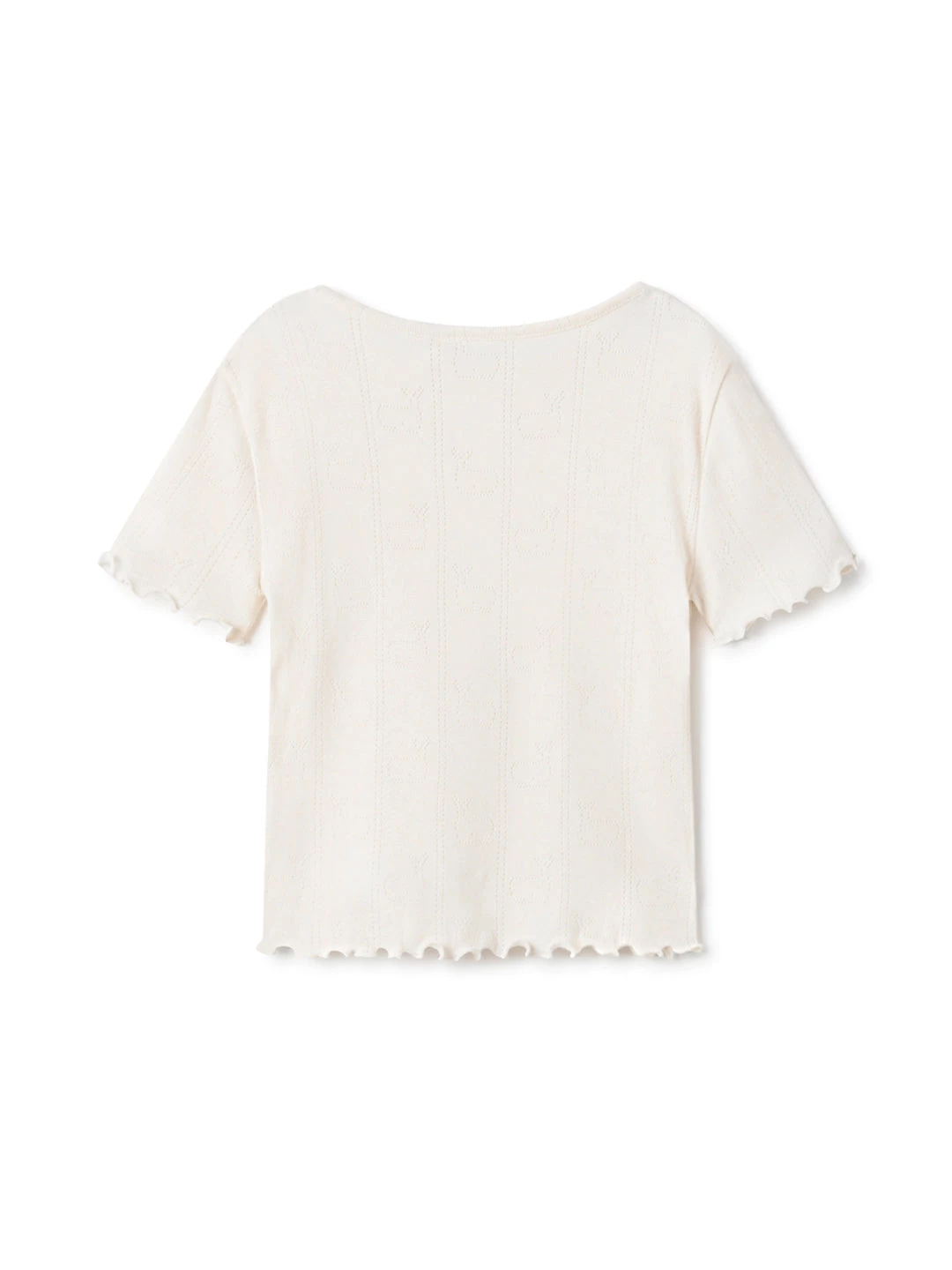 Whales all over! The Maho comes in a lightweight soft fabric, with whale pointelles all over it in a nude base colour. Designed with baby overlock edges and a standard tee fit.