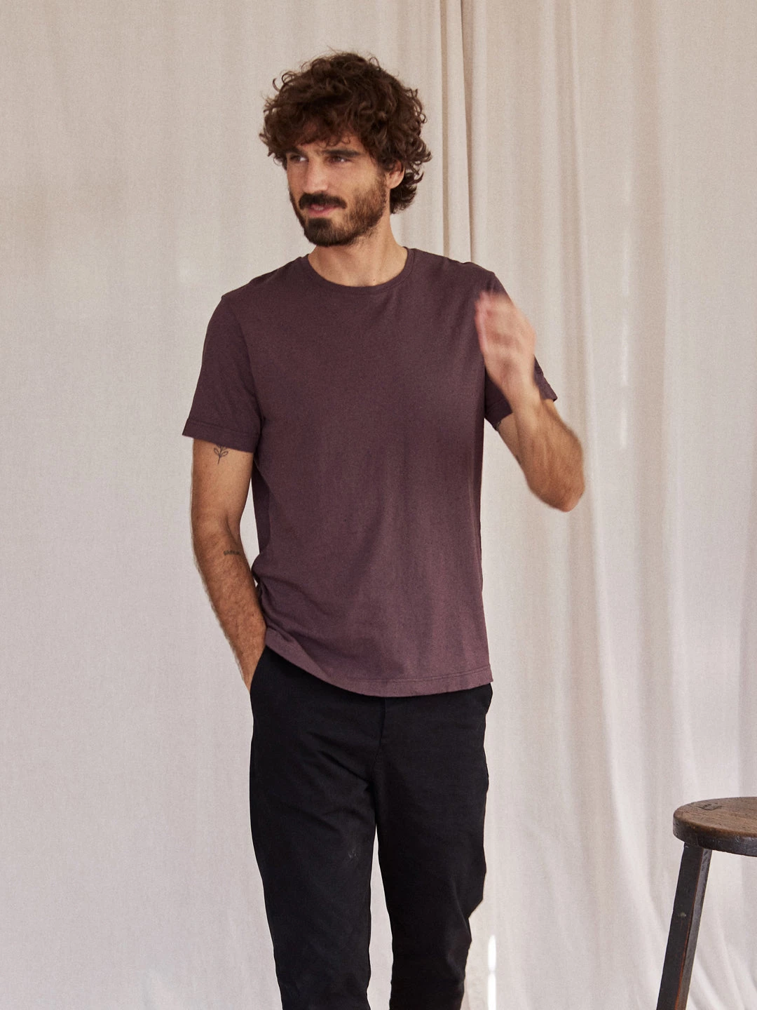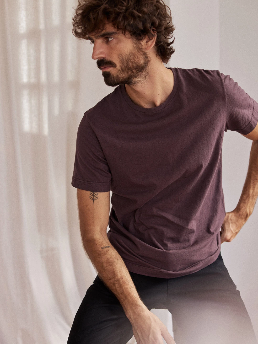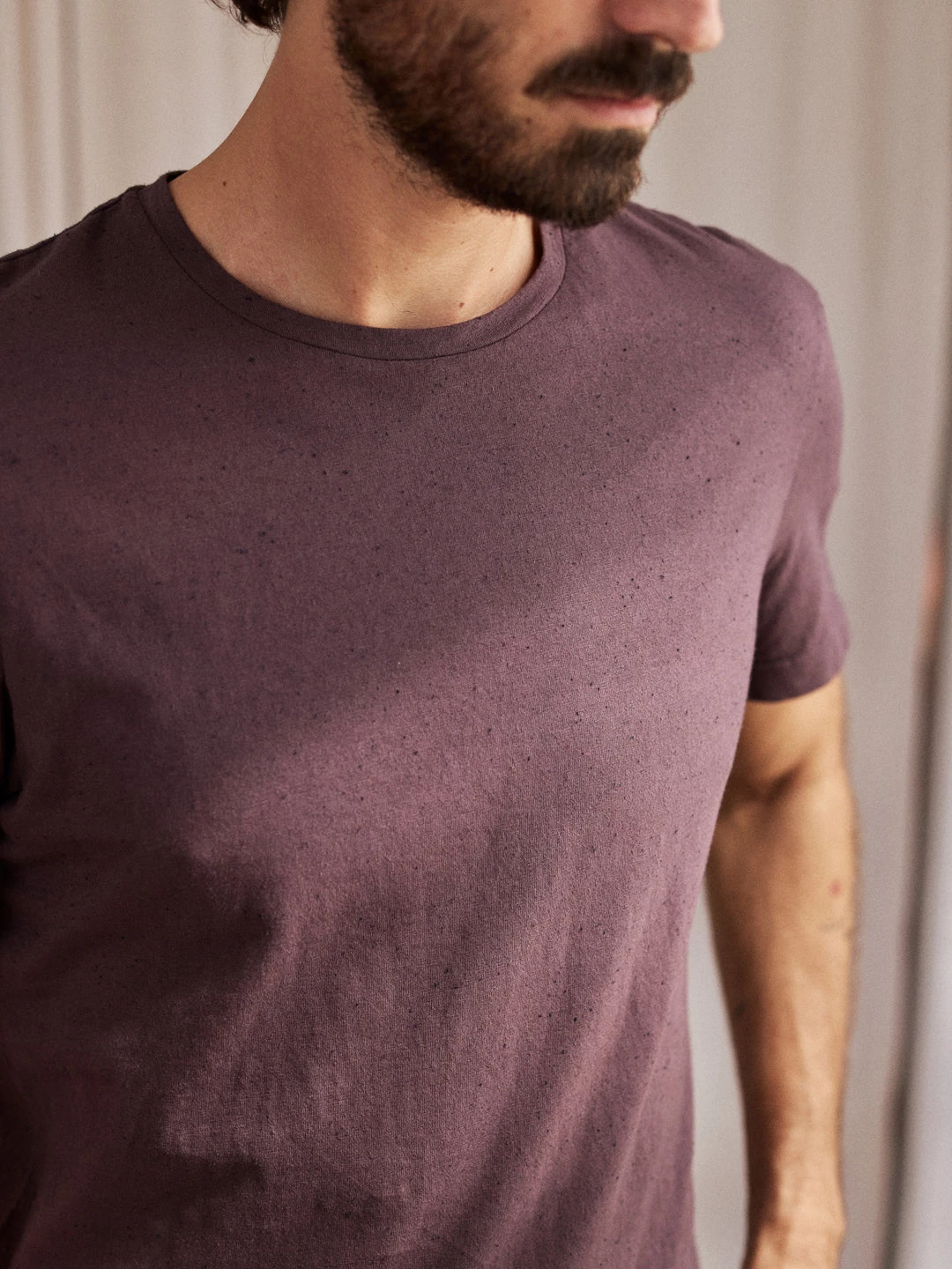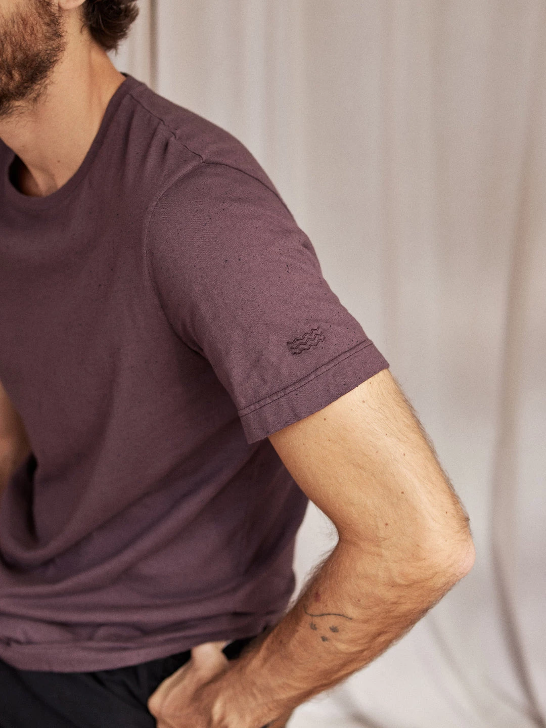 A beautifully simple design, here’s the Vaygach t-shirt. Featuring wave embroidery on the left sleeve and recycled polyester neps for the classic TWOTHIRDS look. It also has a small triangular label with our logo on the bottom left side. The tee comes in a regular fit and hip-length cut.