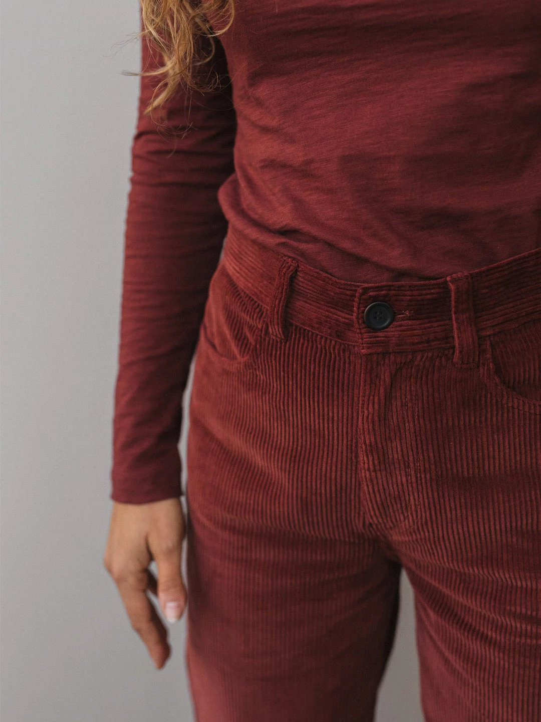 Meet our corduroy pants: the Waglan – now in organic cotton! Corduroy never goes out of style, which makes our pants a sustainable option for decades to come. They are cropped right above the ankle, for a very stylish finish. Rather slim fit, straight cut and 4 pockets in total.