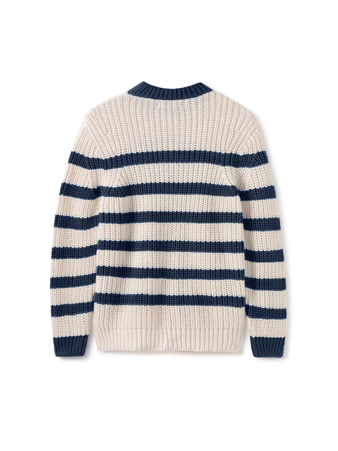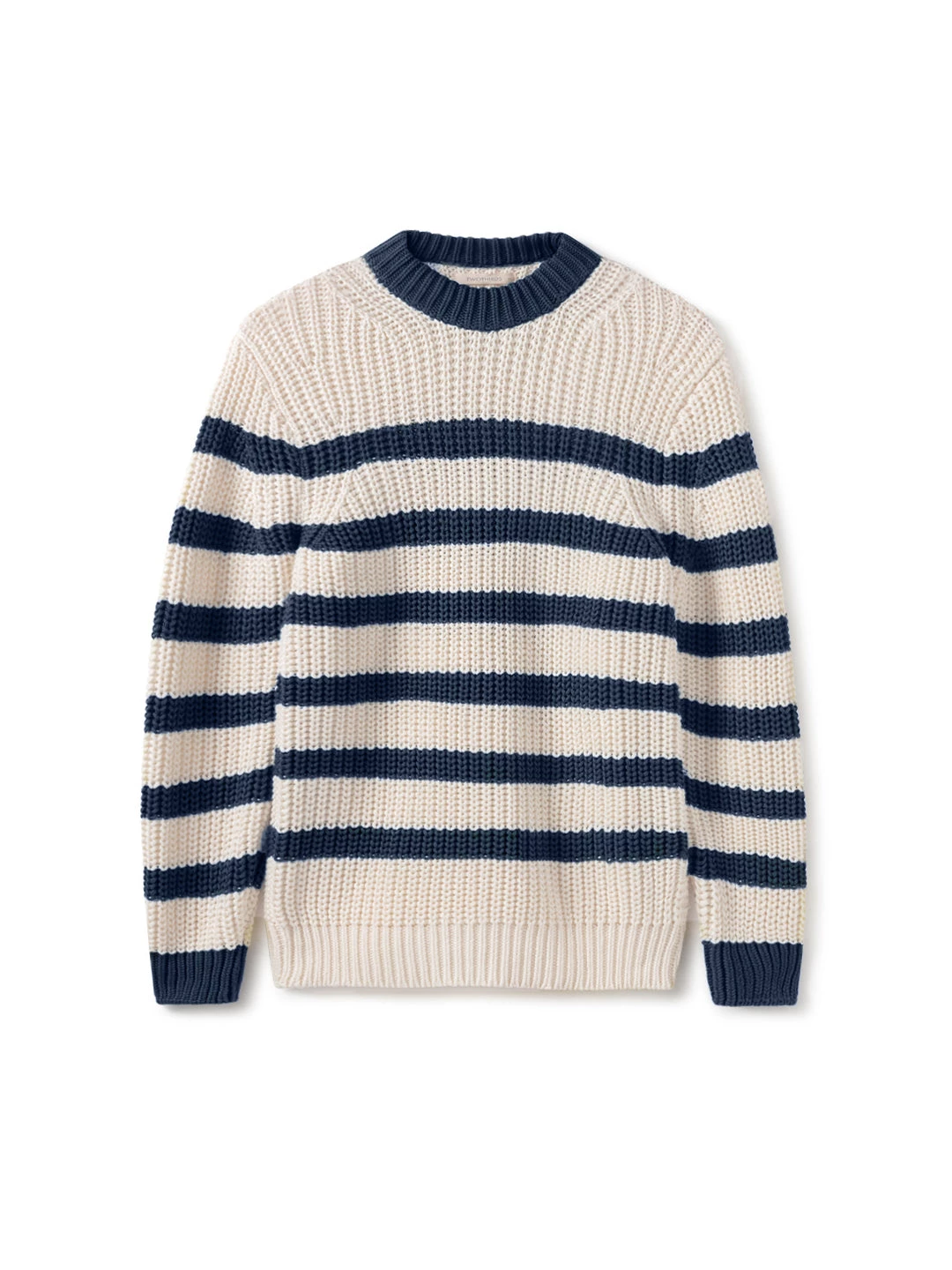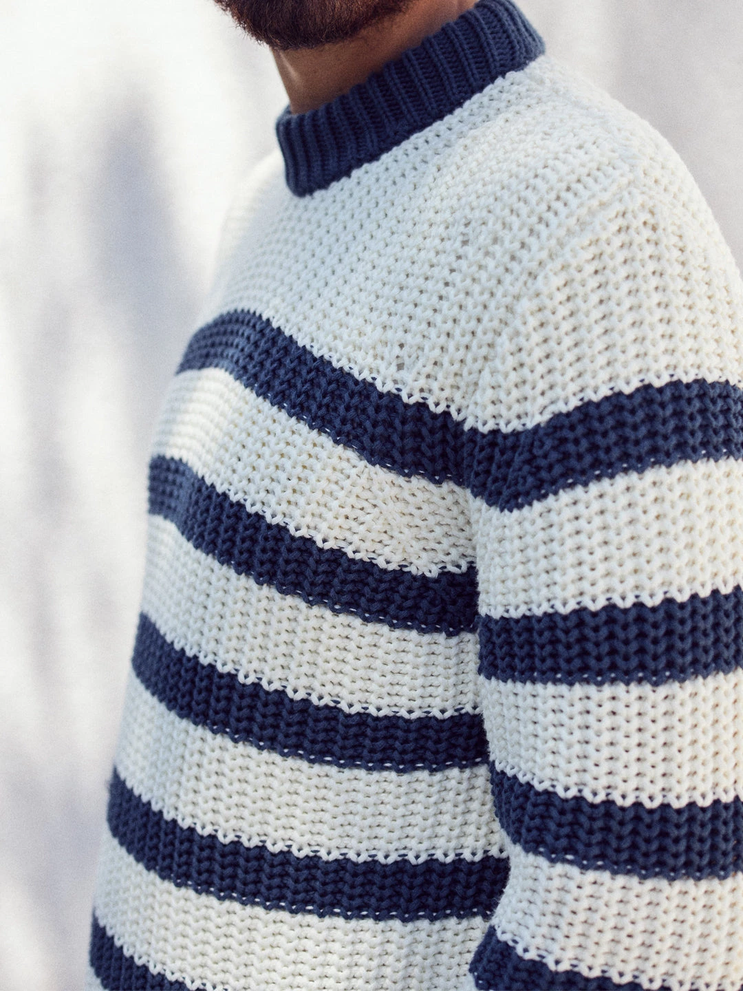 The Walker knit will make your outfits stand out and is a natural eye-catcher. For that reason we love pairing it with plain and simpler trousers or shorts. We love how it looks with light blue jeans or boardshorts for those windy spring/summer days!