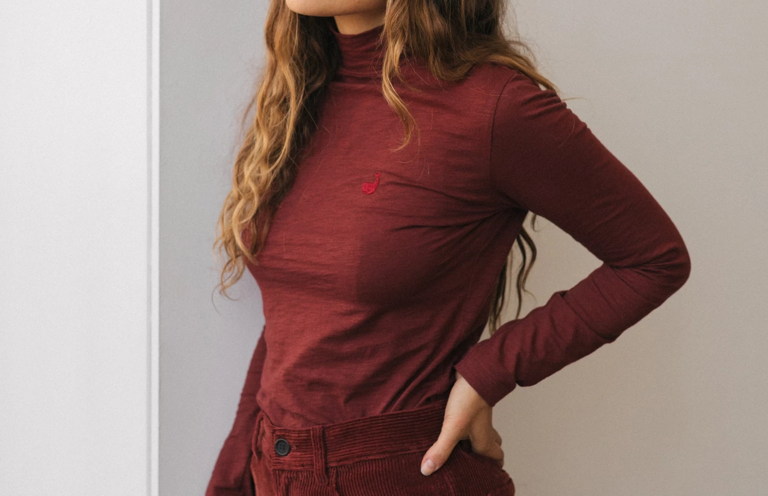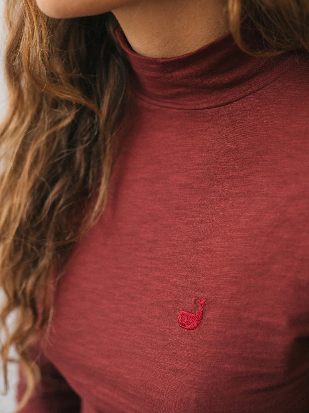 We are happy to bring you our Wasini long-sleeve top, featuring a matching whale embroidery, slim fit and turtleneck. Made entirely from organic cotton – only nature on your skin, and a better source for the environment.
