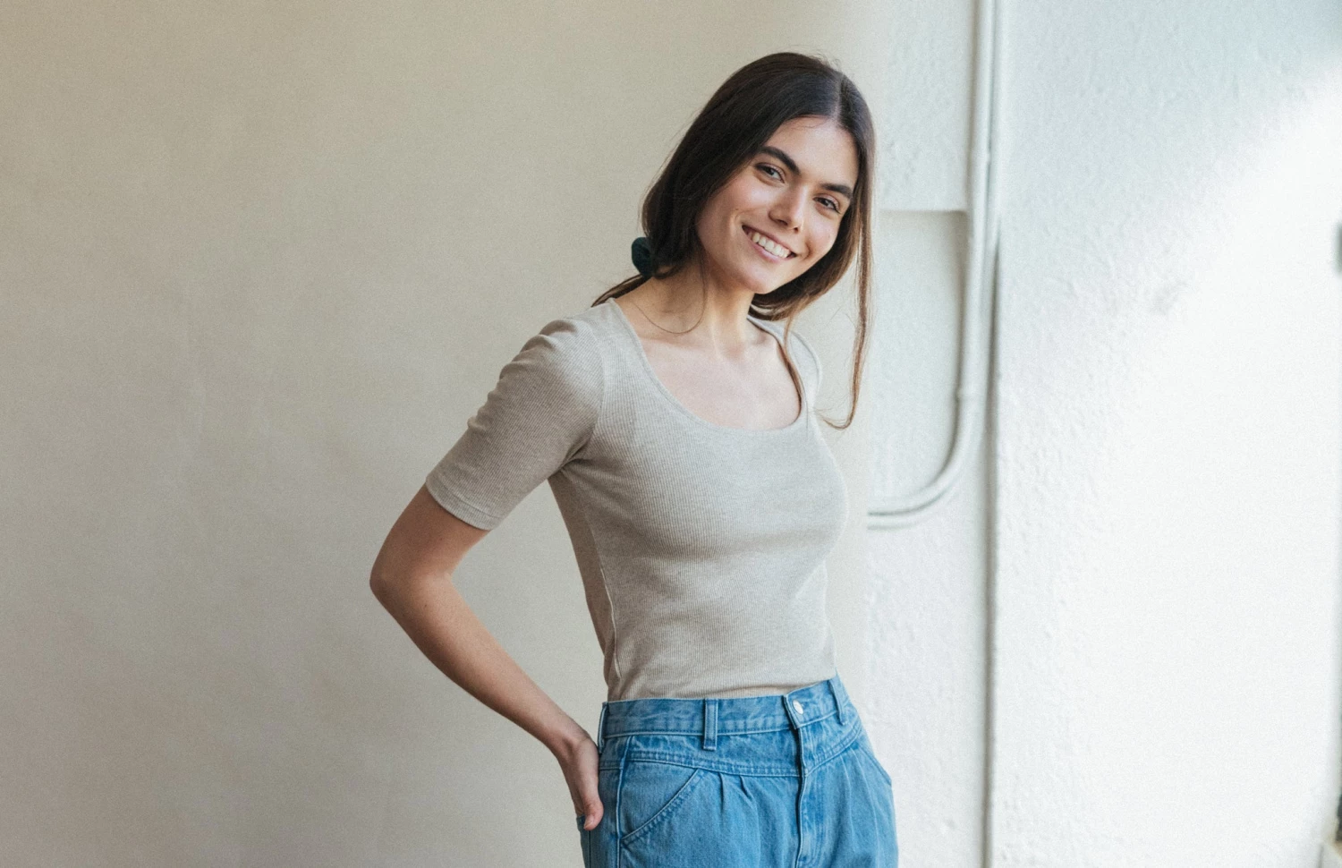 We love the style the Wright brings. This t-shirt is perfect to wear tucked into high-waisted jeans and a cardigan on top. If it gets colder, thanks to its neck design, it pairs wonderfully with turtleneck dresses or knits.
