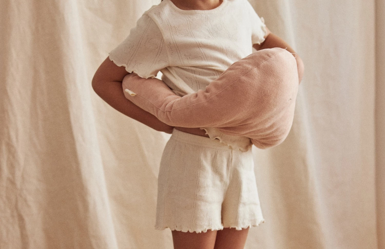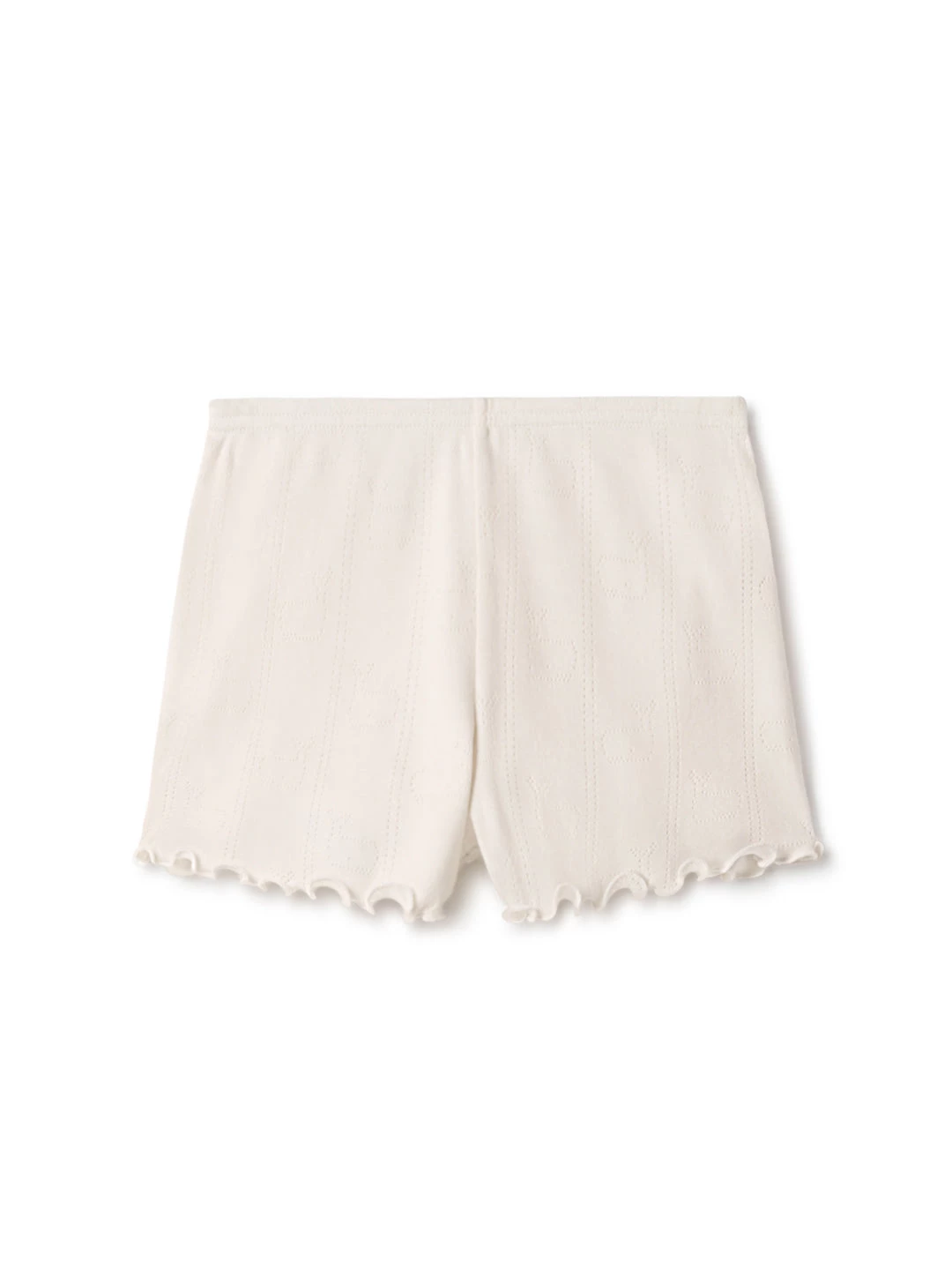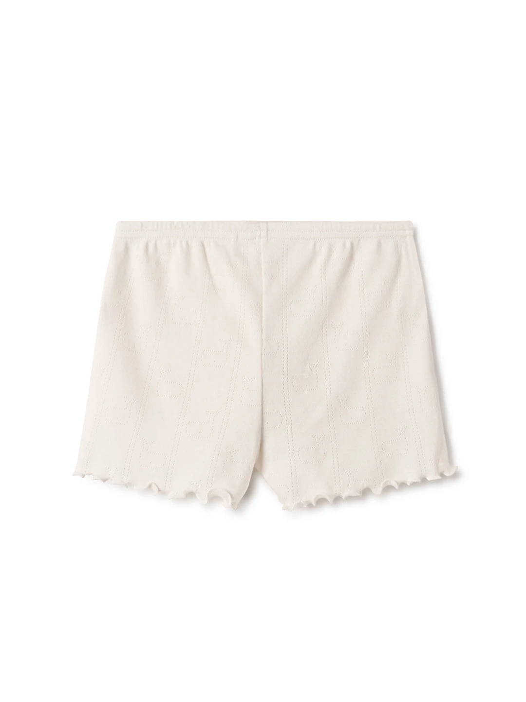 Whales all over! In a beautiful pointelle design, here’s the Zahora shorts. They come in a natural colour and soft to the touch fabric, with an elastic waistband and baby overlock edges for a charming finish.Â