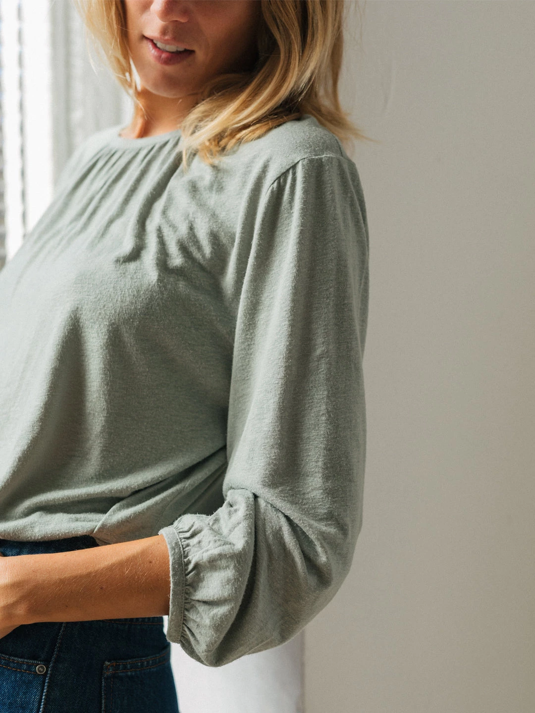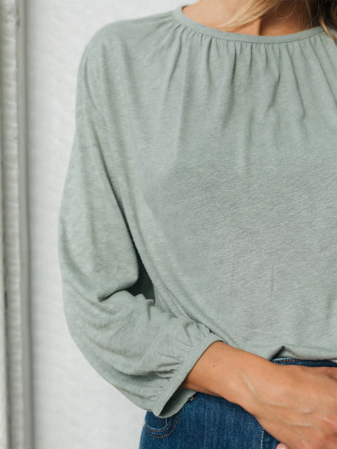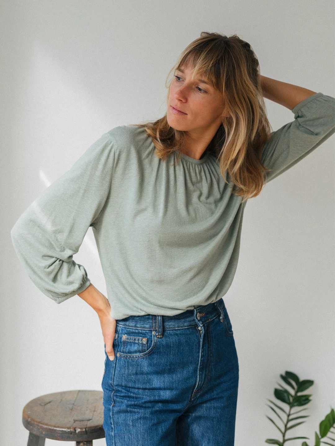 With sustainable materials and a beautiful design: here’s the Zapatera top. Featuring a gathered neckline and wrists with balloon sleeves and raw edges. This tee is intended to feel silky and comfortable on your skin. Comes in a regular fit and hip-length cut.