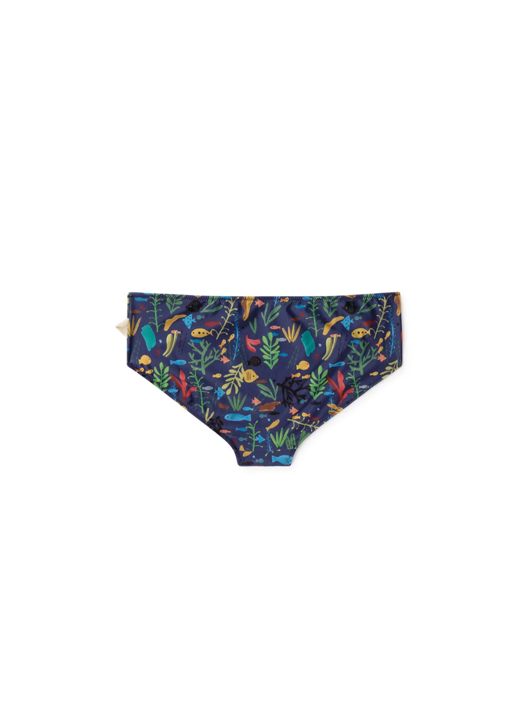 Designed in a beautiful ocean print, to be in sync with what we love! The Amelia swimwear is a regular bikini cut with a medium height side. It has a slim fit.