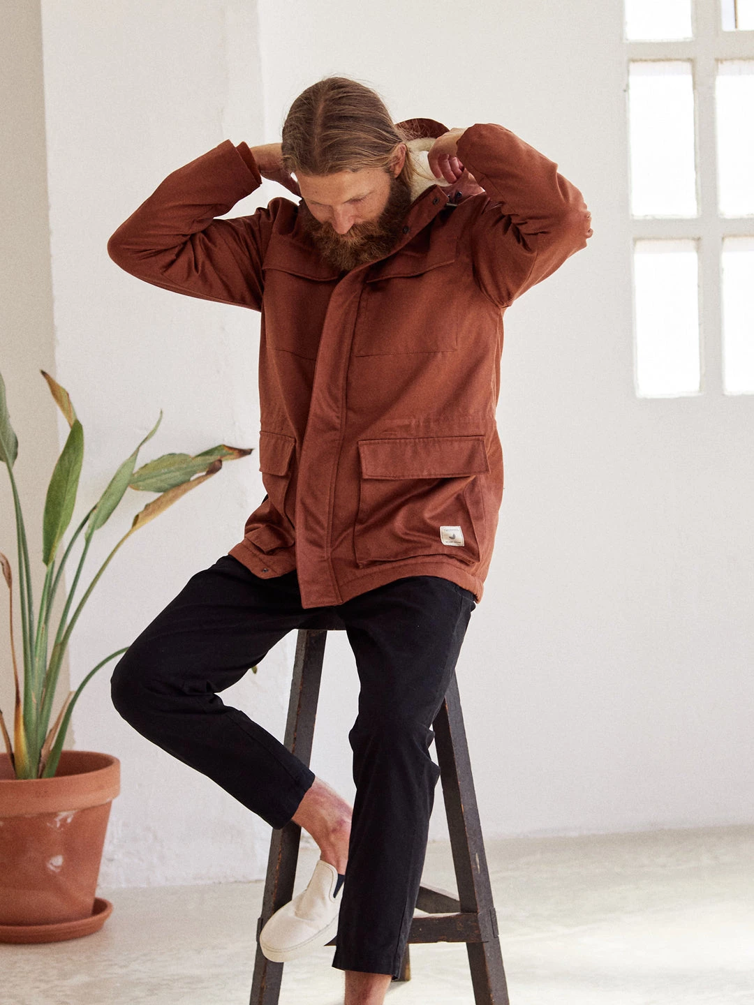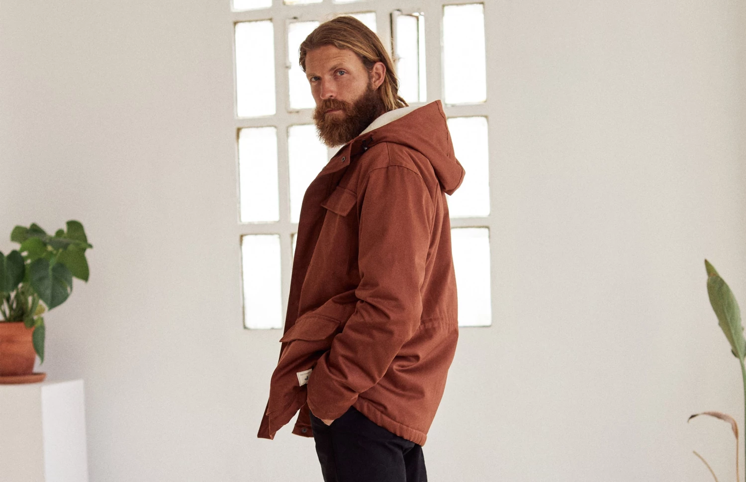 The model’s height is 1.87m and he is wearing a size M.