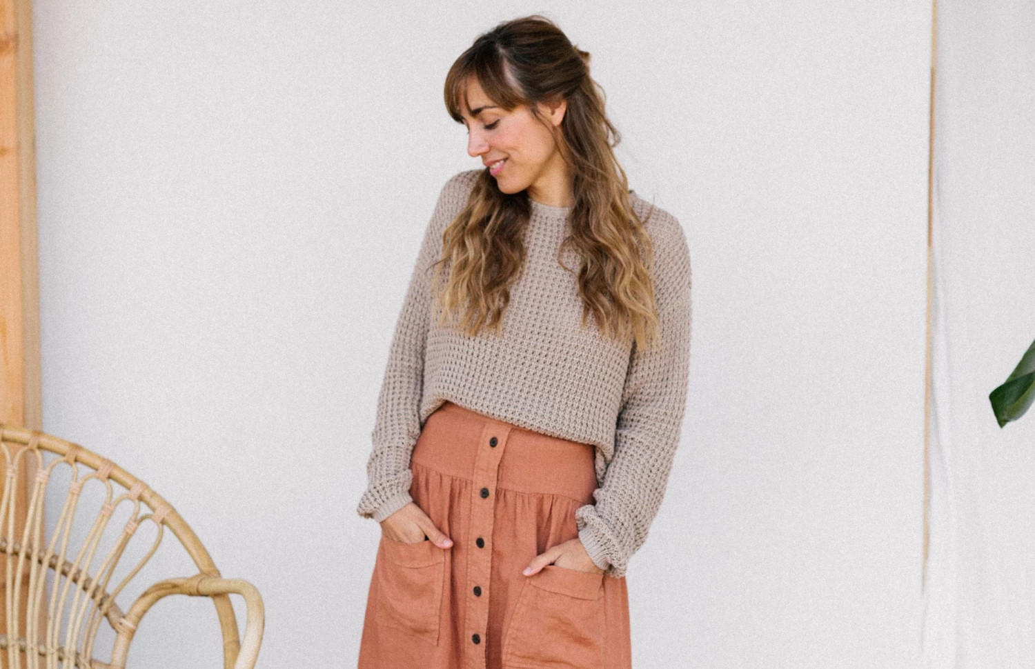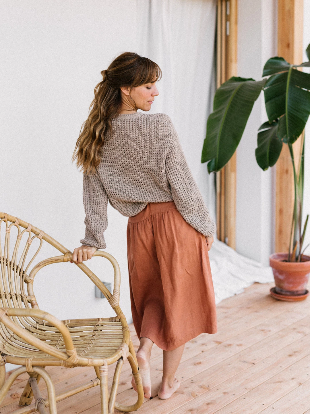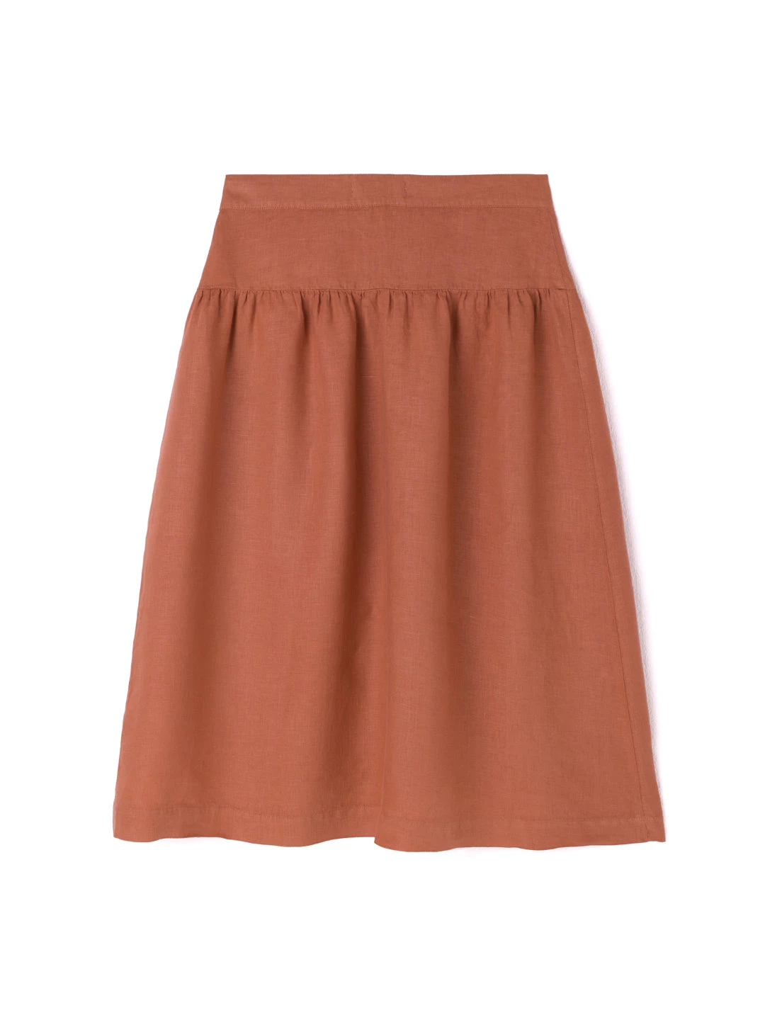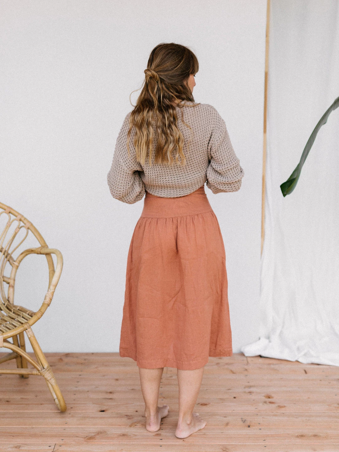 A bolder take on fashion brought us to the Damang skirt. The length falls below the knees. It has a yoke in the front and back and the pockets are not sideways but patched on the front part. For the 70s style front-closure, we opted for corozo buttons that are naturally sourced.