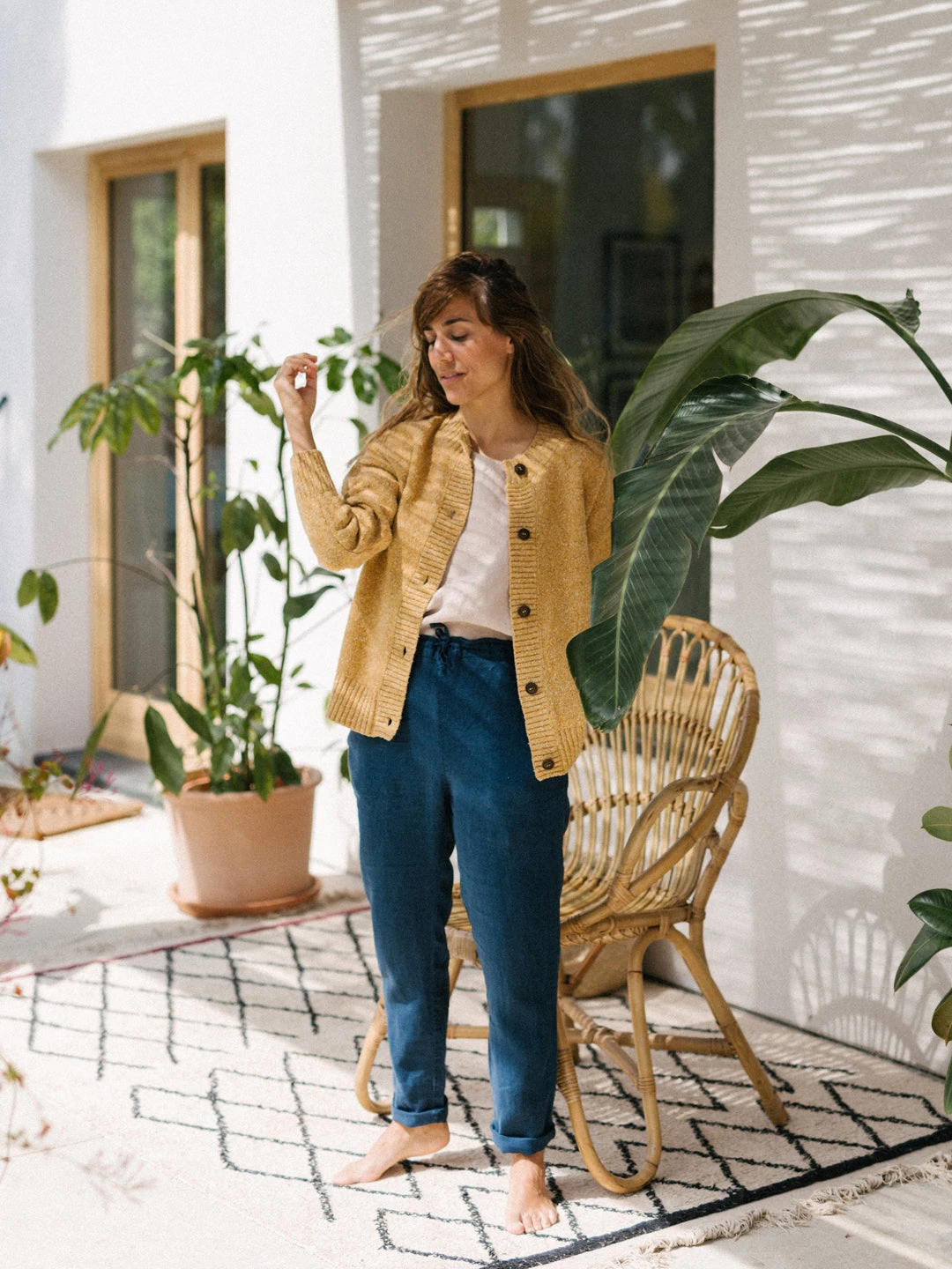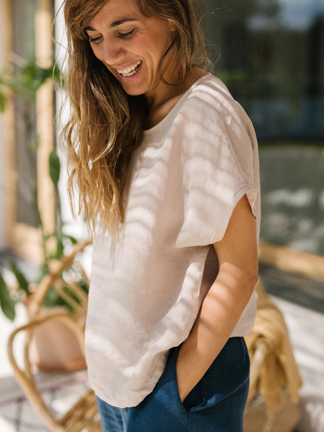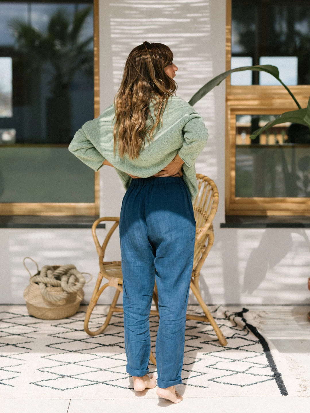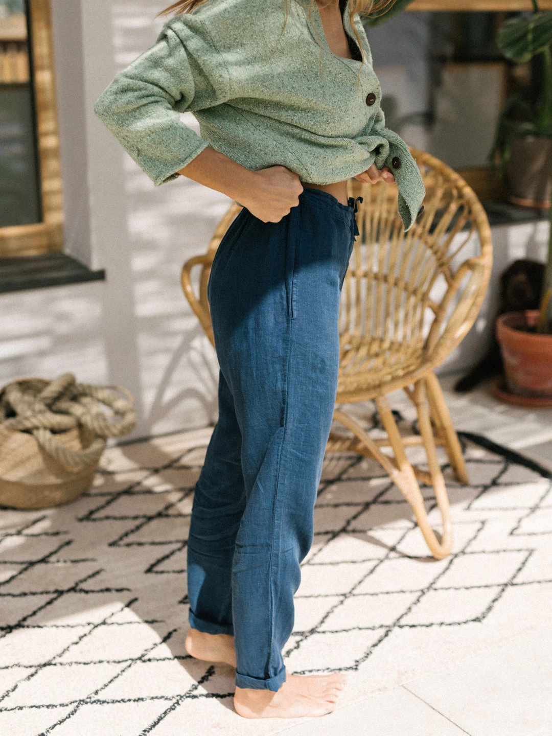 The Sia pants: 100% linen, made to be light and soft on your skin. Both comfortable and sustainable, the Sia have a relaxed fit and fall around the ankles. With side pockets and a drawstring waist for better tension and comfort.