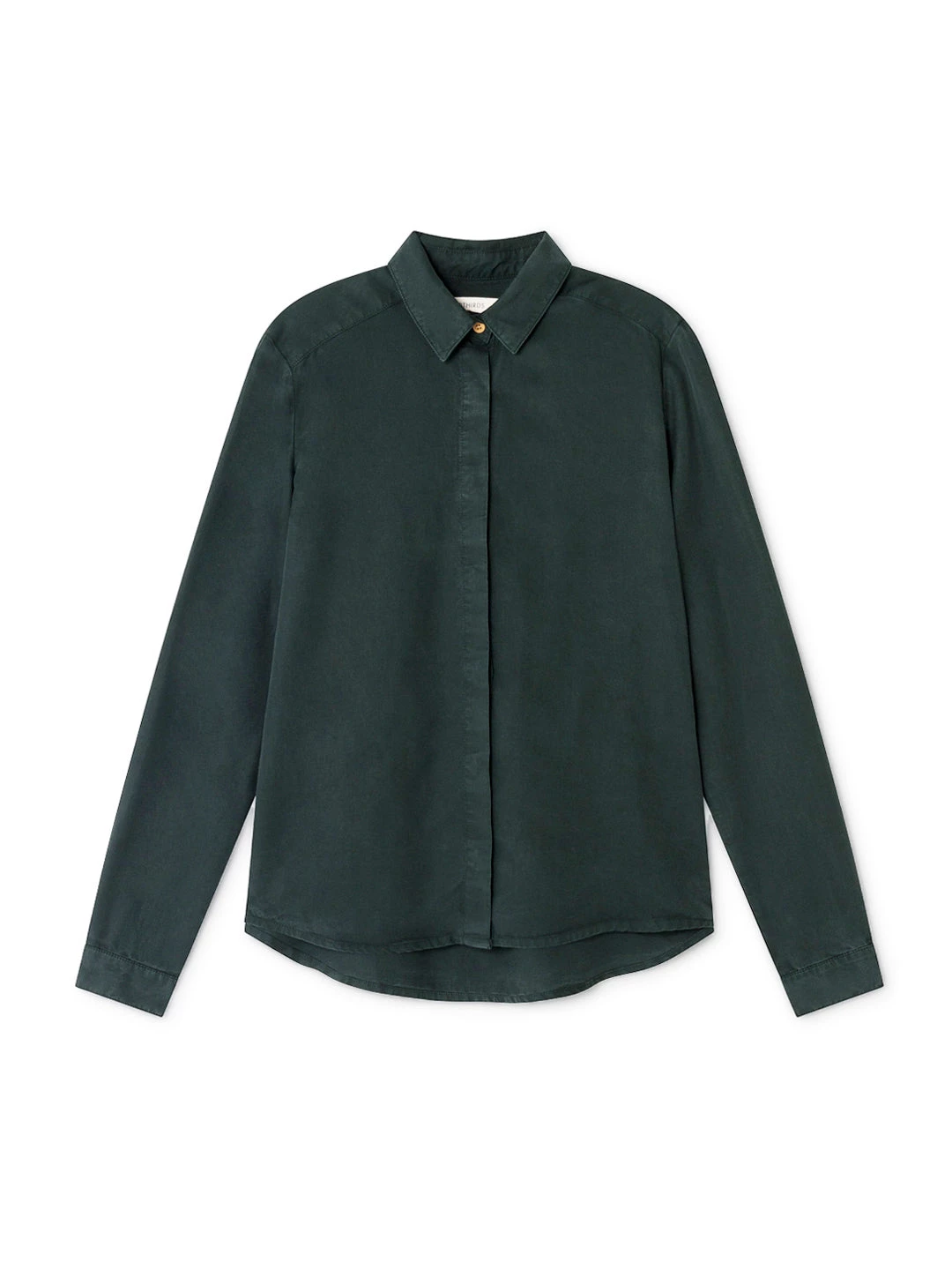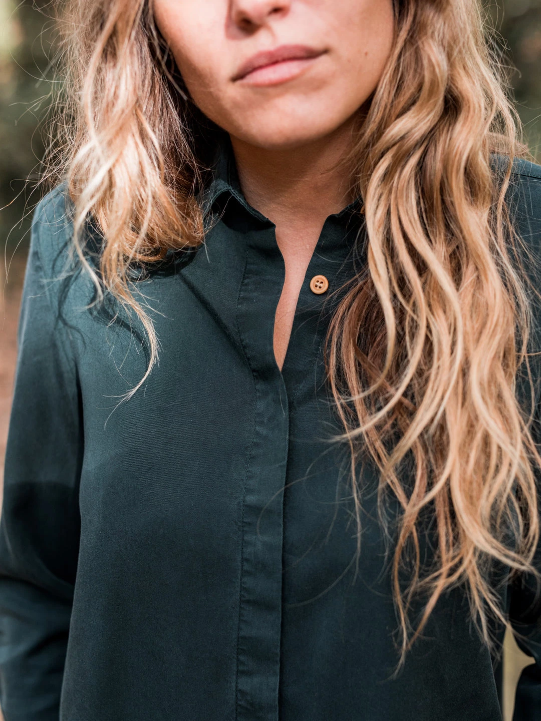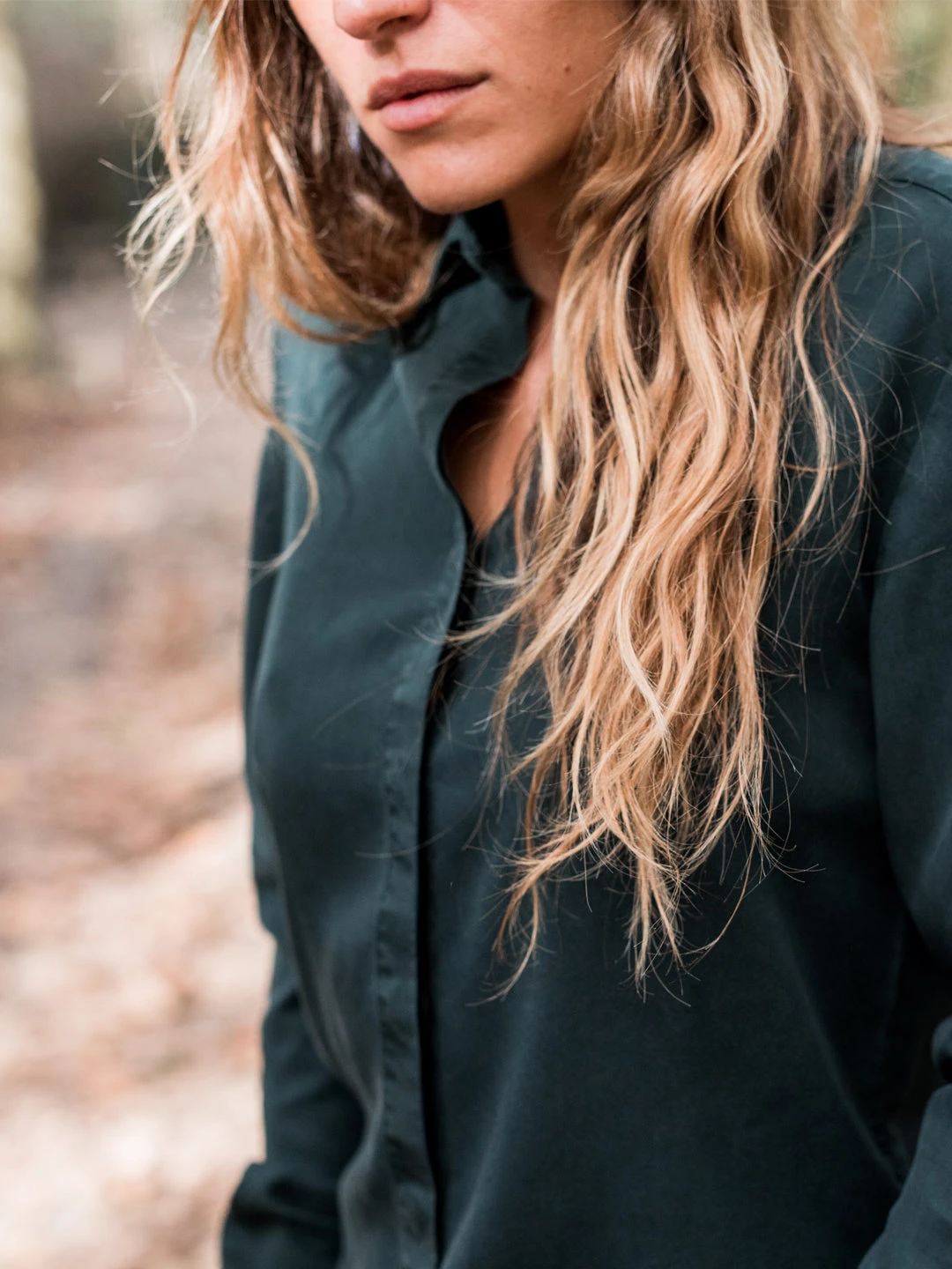 Having soft and comfy shirts in your sustainable wardrobe makes everyday feel special. Romvi is made from TENCELâ„¢ Lyocell to ensure high quality and sustainability. It has a regular fit and falls around the waist. The finishing touch: naturally sourced corozo buttons.Â
