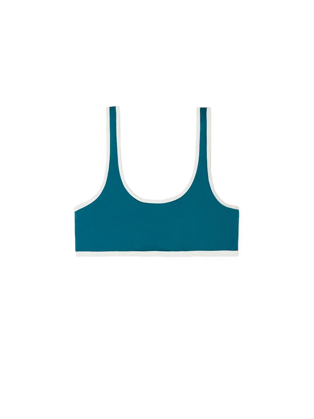 The Rote is a sporty form of swimwear. Made mainly out of regenerated nylon. Designed with a slim fit, rather wide shoulder straps and a white edge surrounding the entire garment.