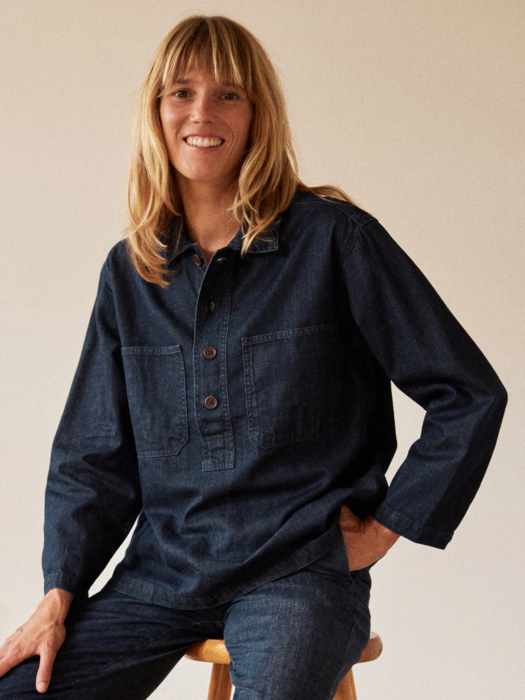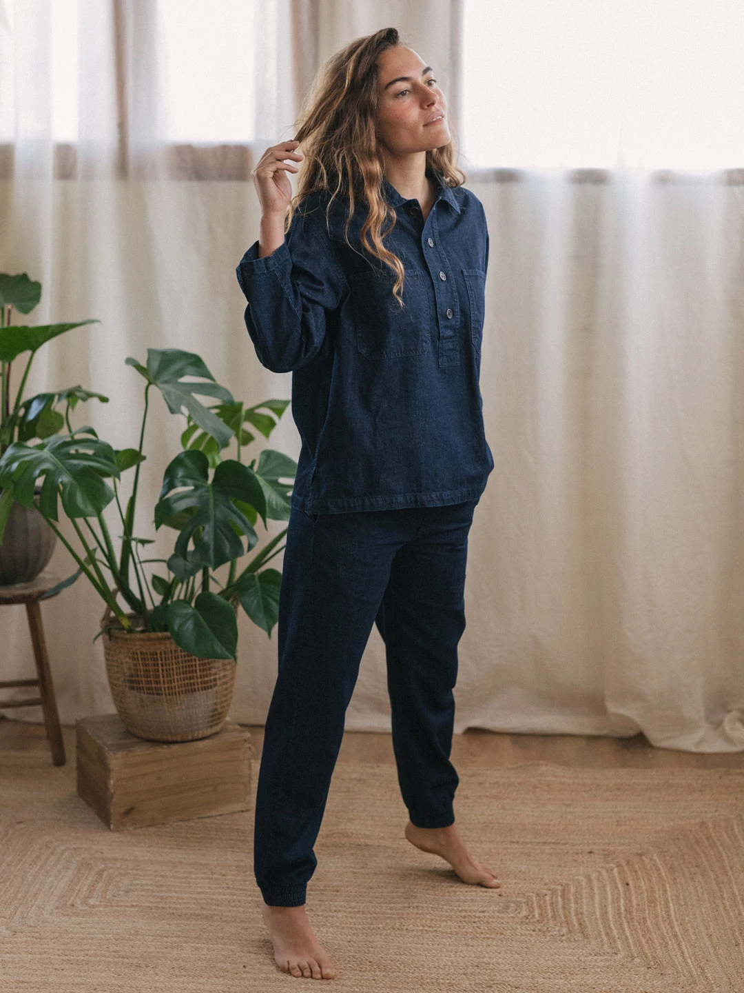 You can wear a Samui shirt with plain black trousers, sneakers and a cardigan – a great variety of outfit possibilities is what we love most about this garment!