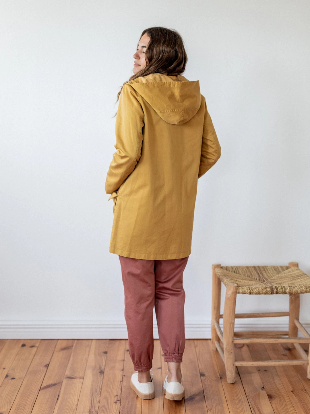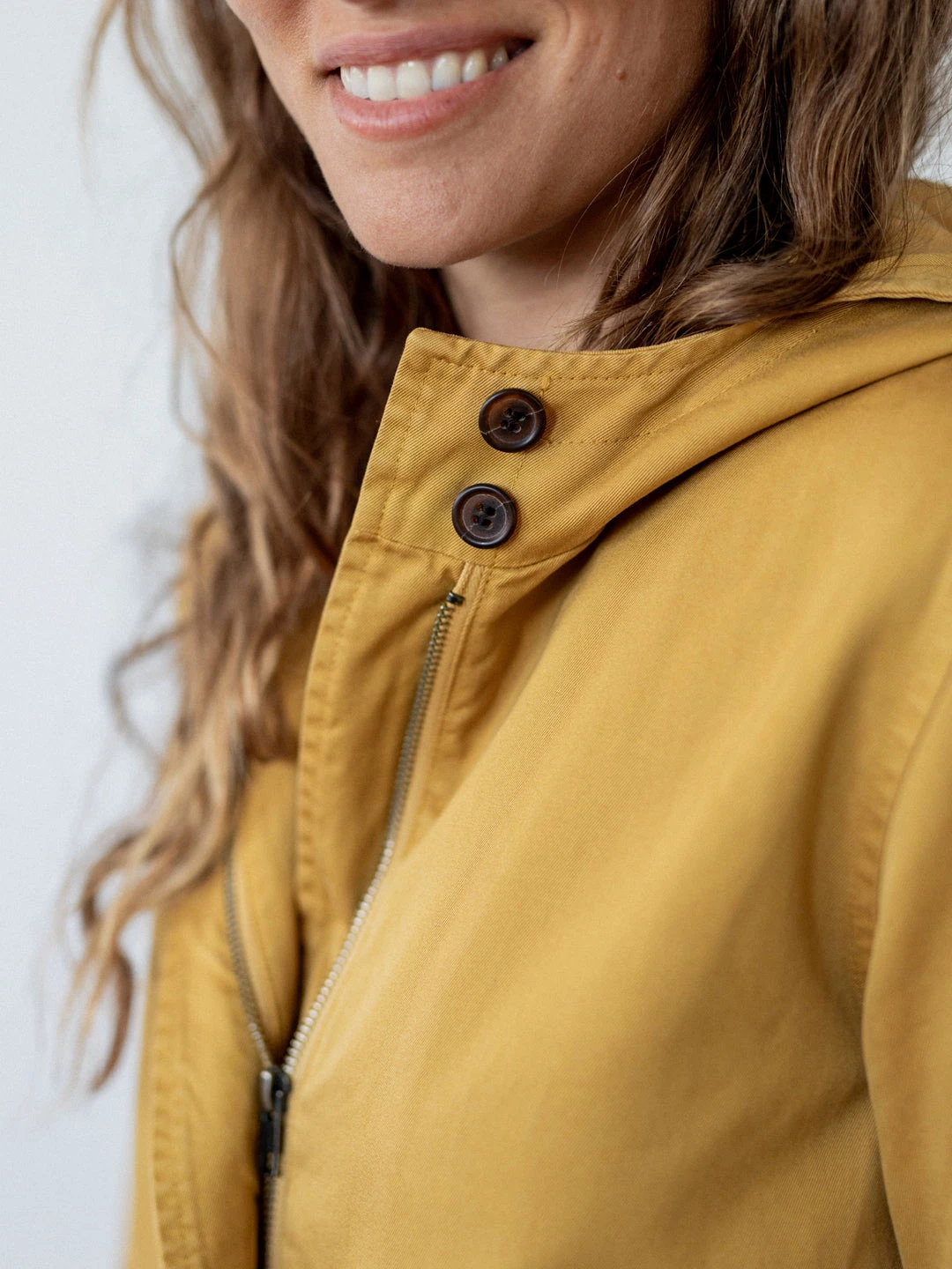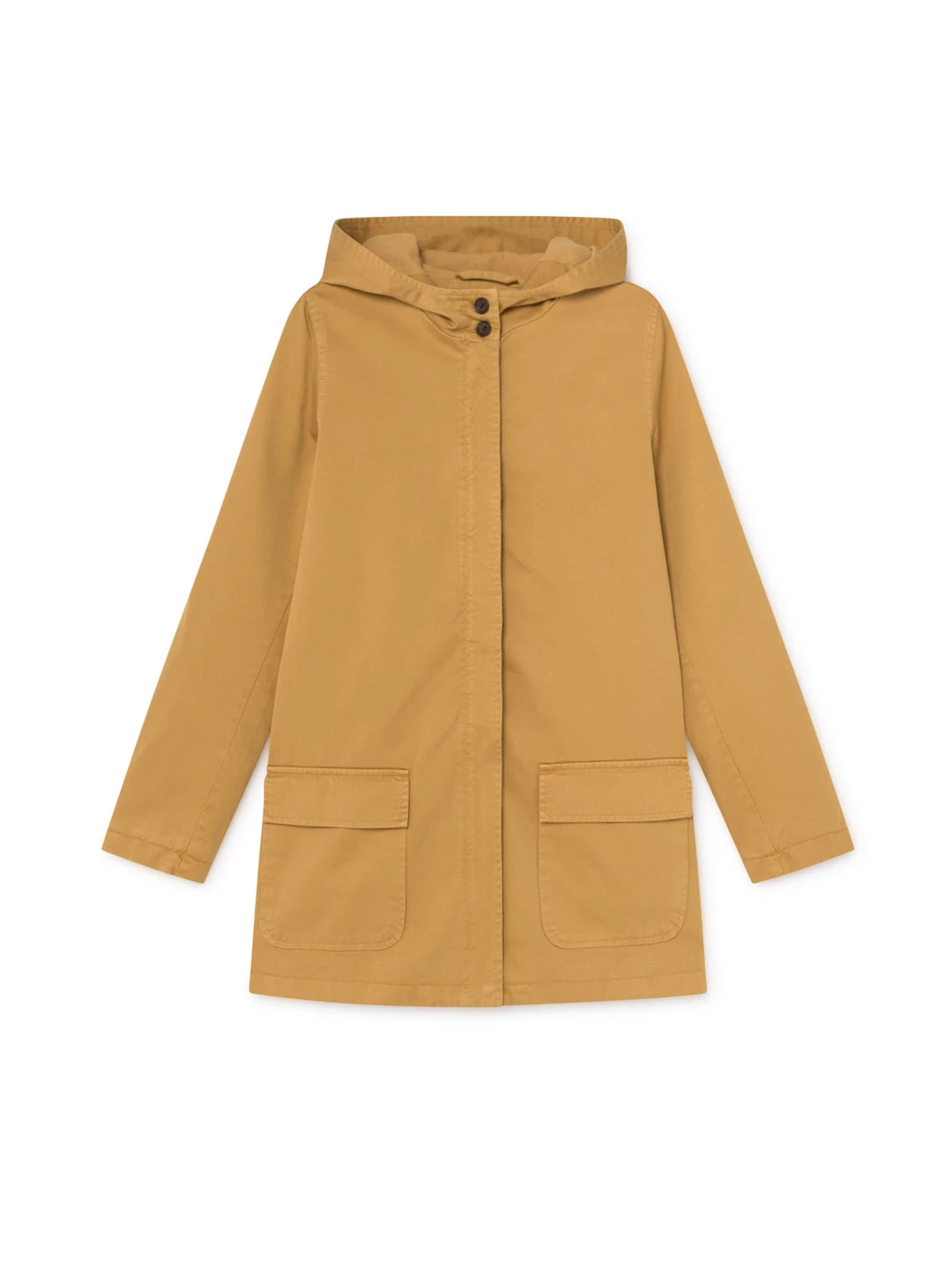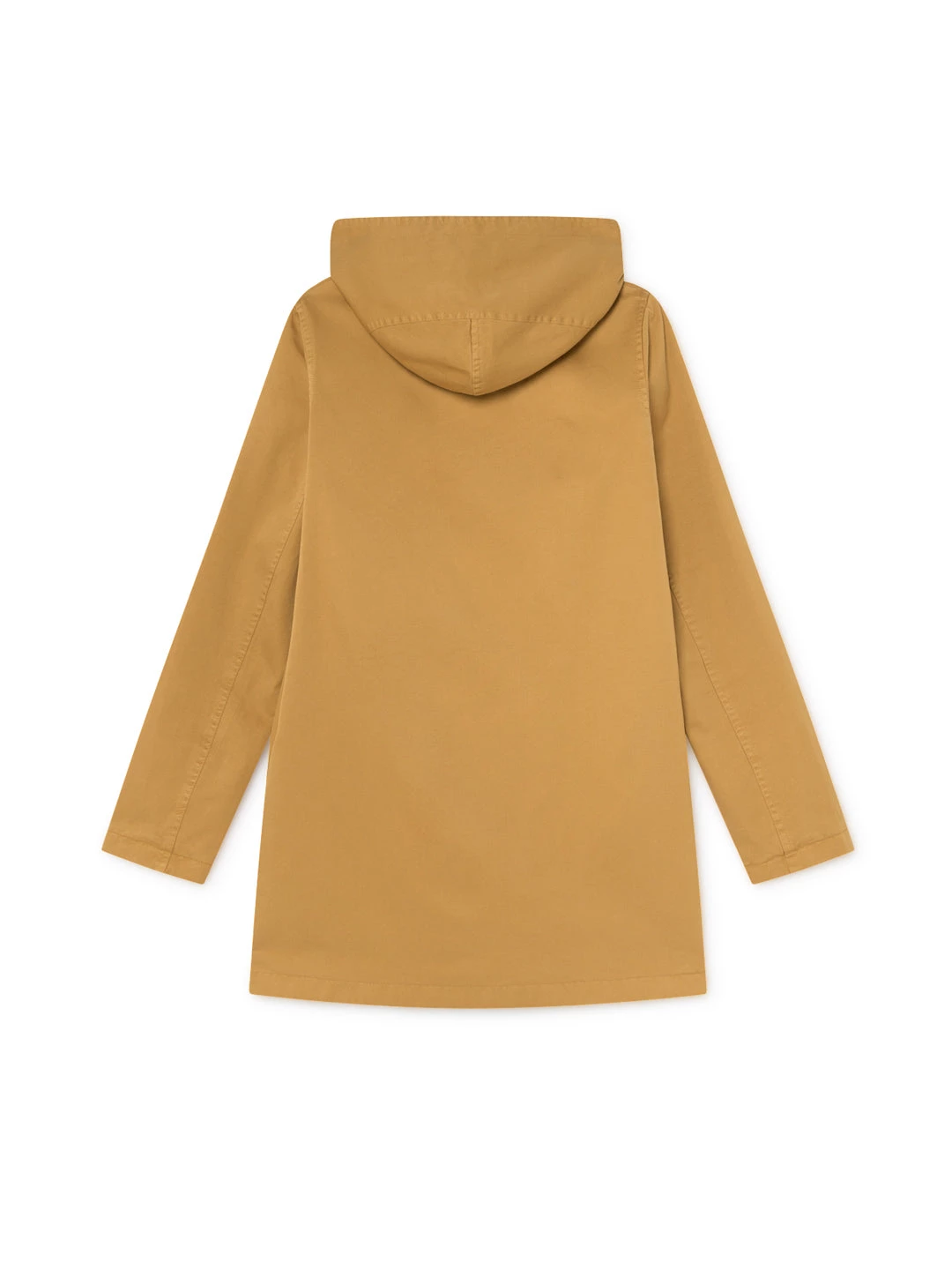 Our iconic parka made for all weathers! With a hood and an EcoEliteâ„¢ finish to repel water on rainy days. Featuring naturally sourced corozo buttons. The loose fit and longer design make it both comfy and stylish.