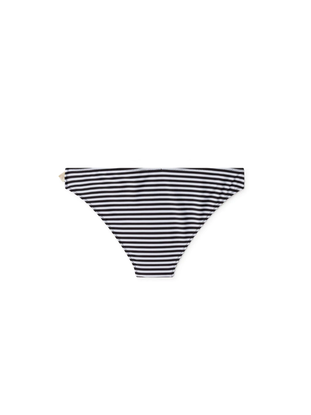 A classic bikini style, the Ticao swimwear bottom. With a black striped design and narrow waistband. The garment has a standard V form style and slim fit, featuring a triangular logo label attached on the side.