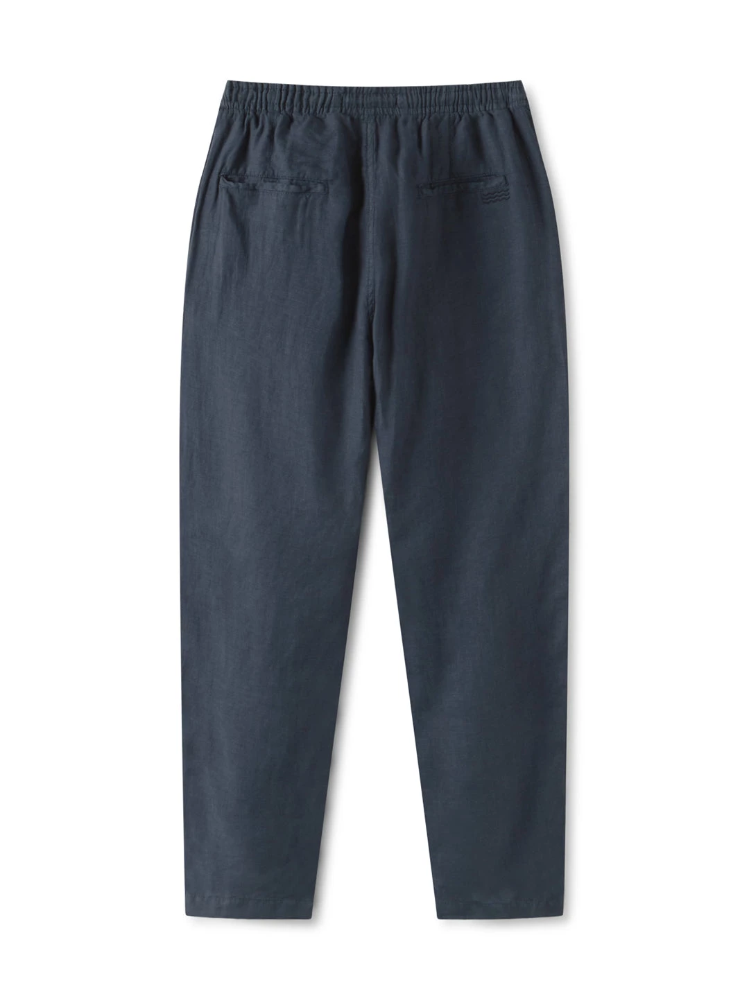 100% linen, extra comfortable feel-good pants: these are our Johns. They are part of our loungewear collection, designed with an adjustable drawstring waistband. Also, a regular fit, 4 pockets in total and wave detailing.Â