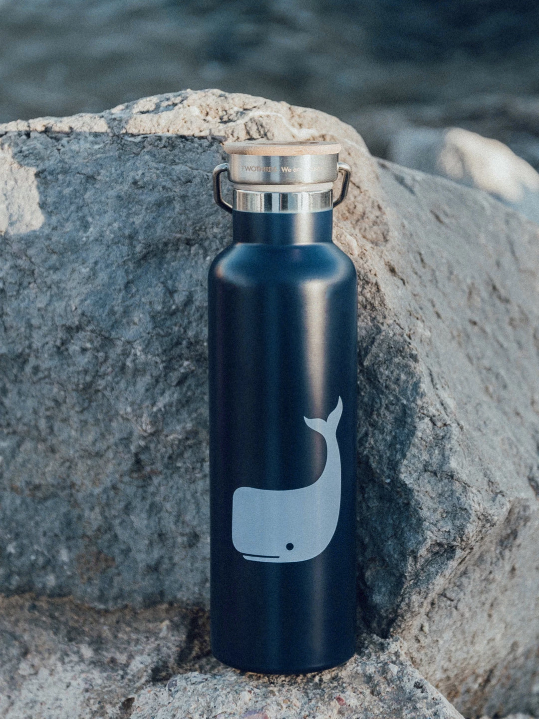 Here it is: your new favourite bottle to fill with your beverage of choice. This bottle is perfect for drinking on-the-go and will keep liquids hot for 12 hours and cold for 24 hours. Not only does it feature our much-loved whale but it is lightweight and easy to carry anywhere, with a beautiful bamboo lid.Â