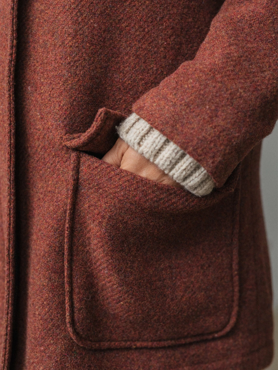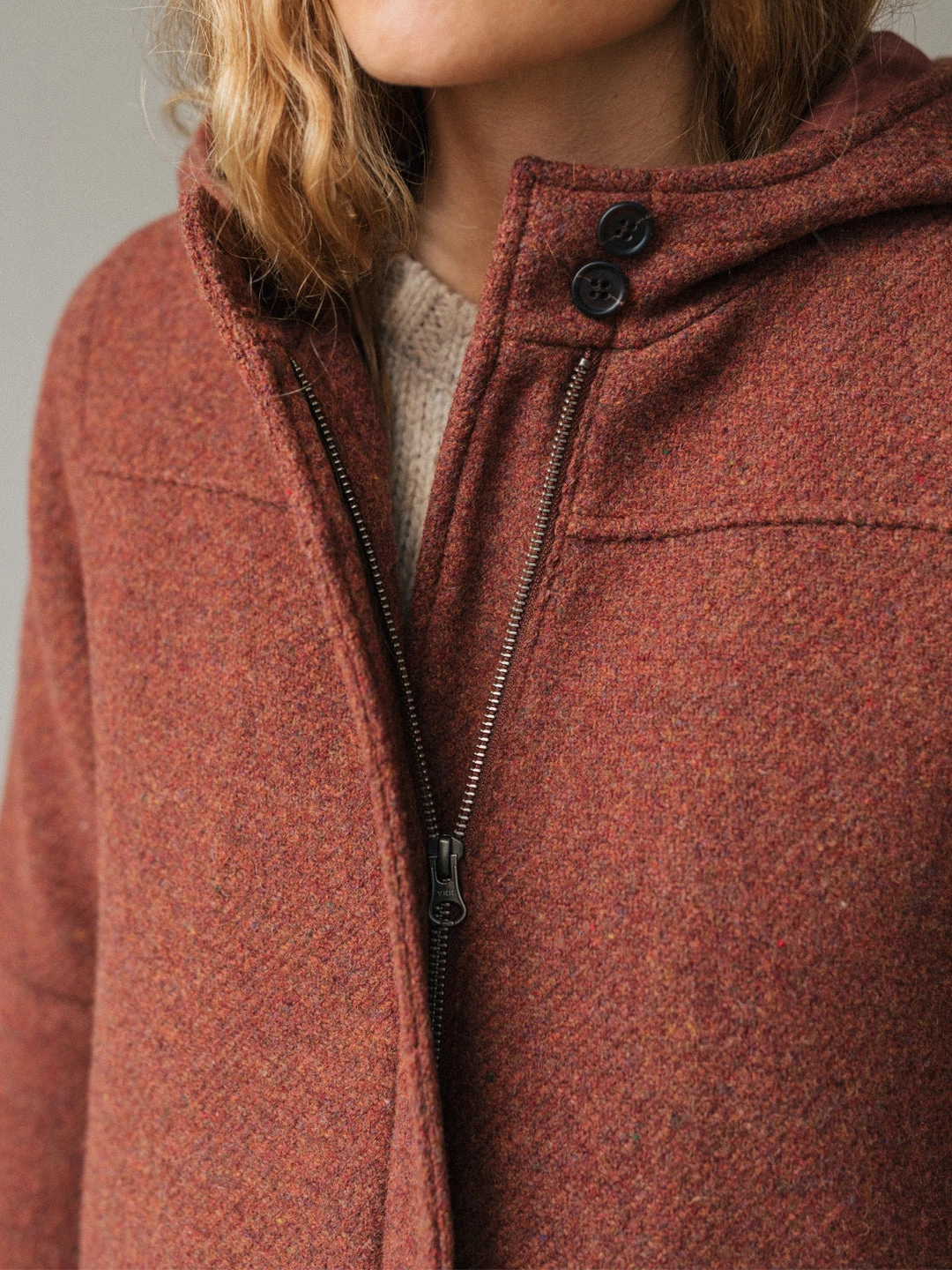 The Ansaron is the perfect jacket for you if you want to show some colour through the colder months. With a beautiful melange effect and naturally sourced corozo buttons on the neck for extra protection. Also, with a hood and two big pockets on the side and a newly-added interior one. The coat comes in a regular fit and falls above the knees.Â