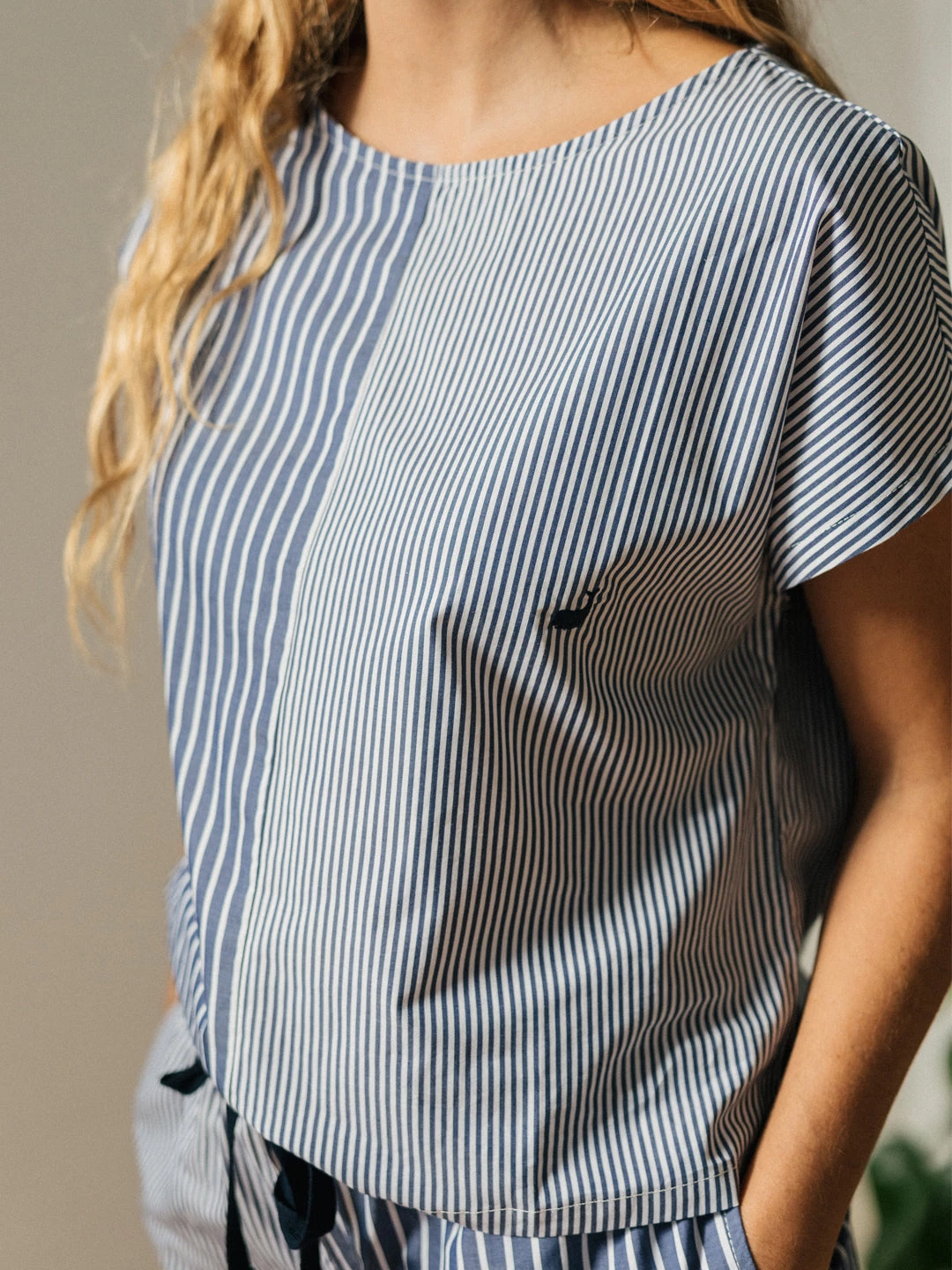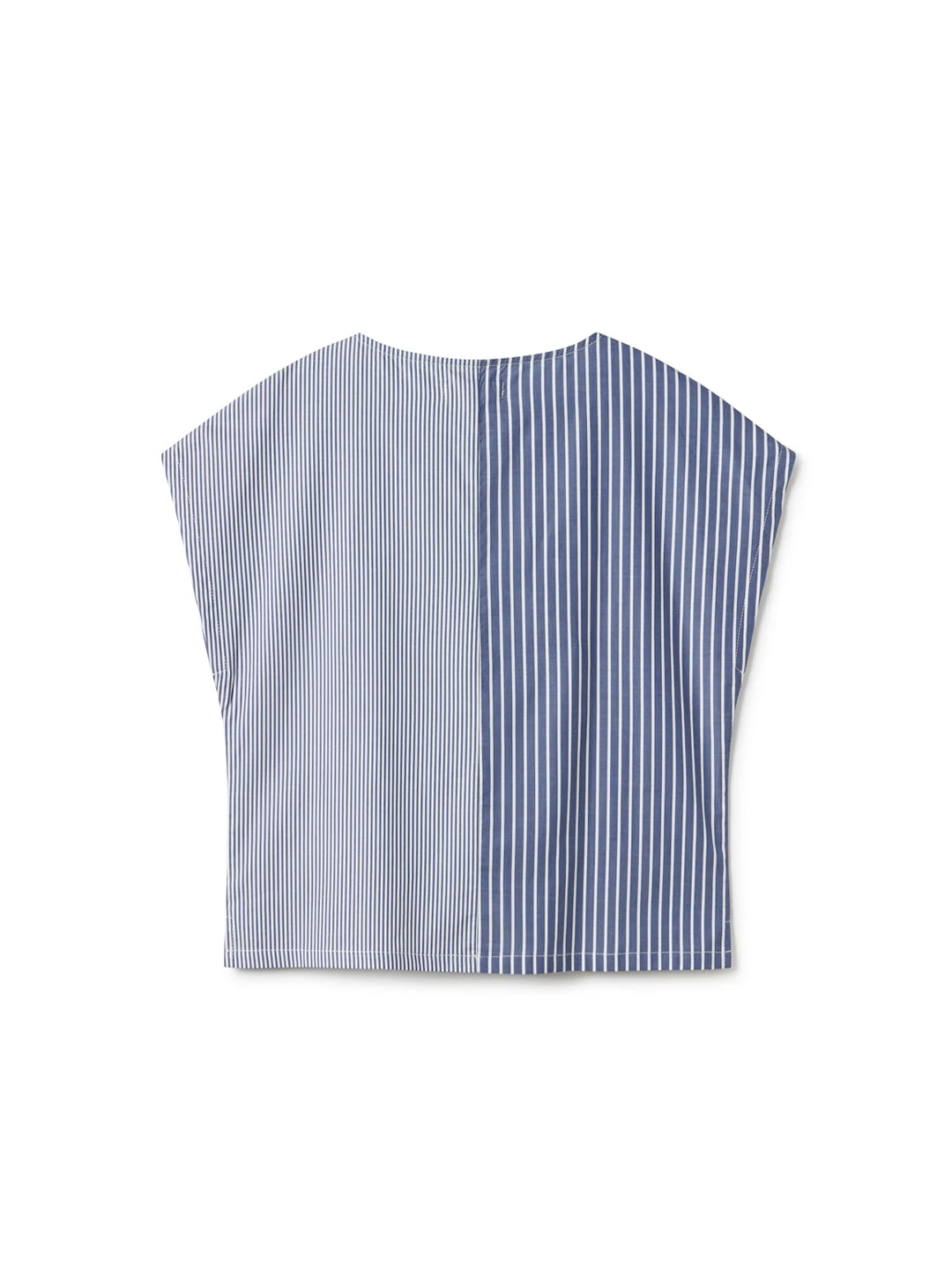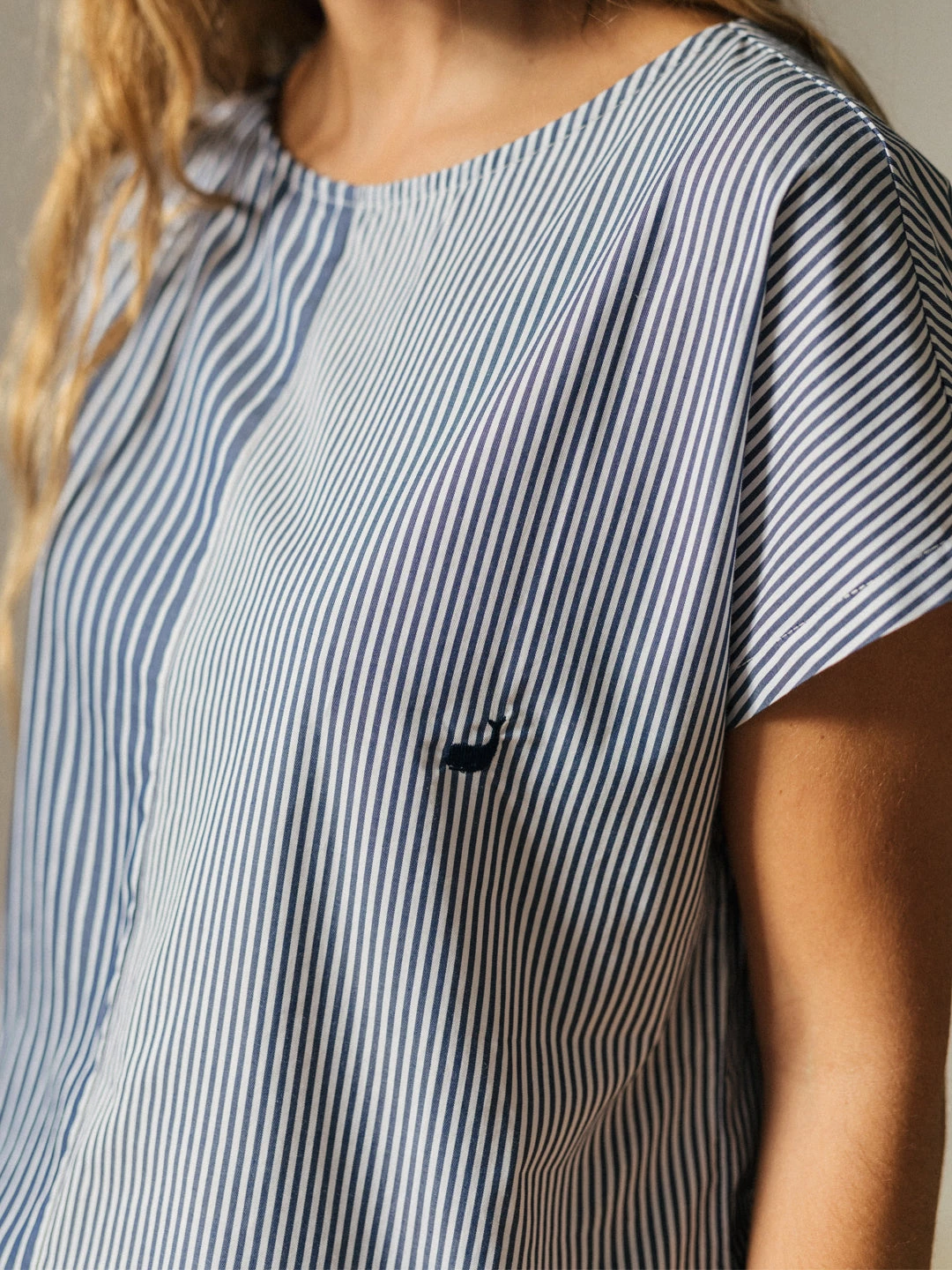 A playful striped style, with its own matching shorts. The Aua comes in contrasting blue stripes on each side and features whale embroidery on the chest. Designed with no sleeves, a regular fit and hip-length cut.