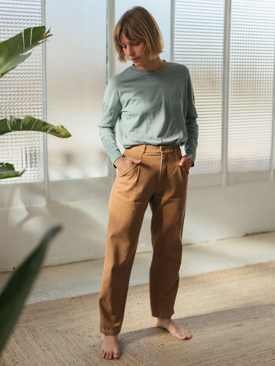 We love to have the Buck trousers in our wardrobe, perfect for either spring or the colder seasons. It pairs wonderfully with dark brown and black knits or sweaters.