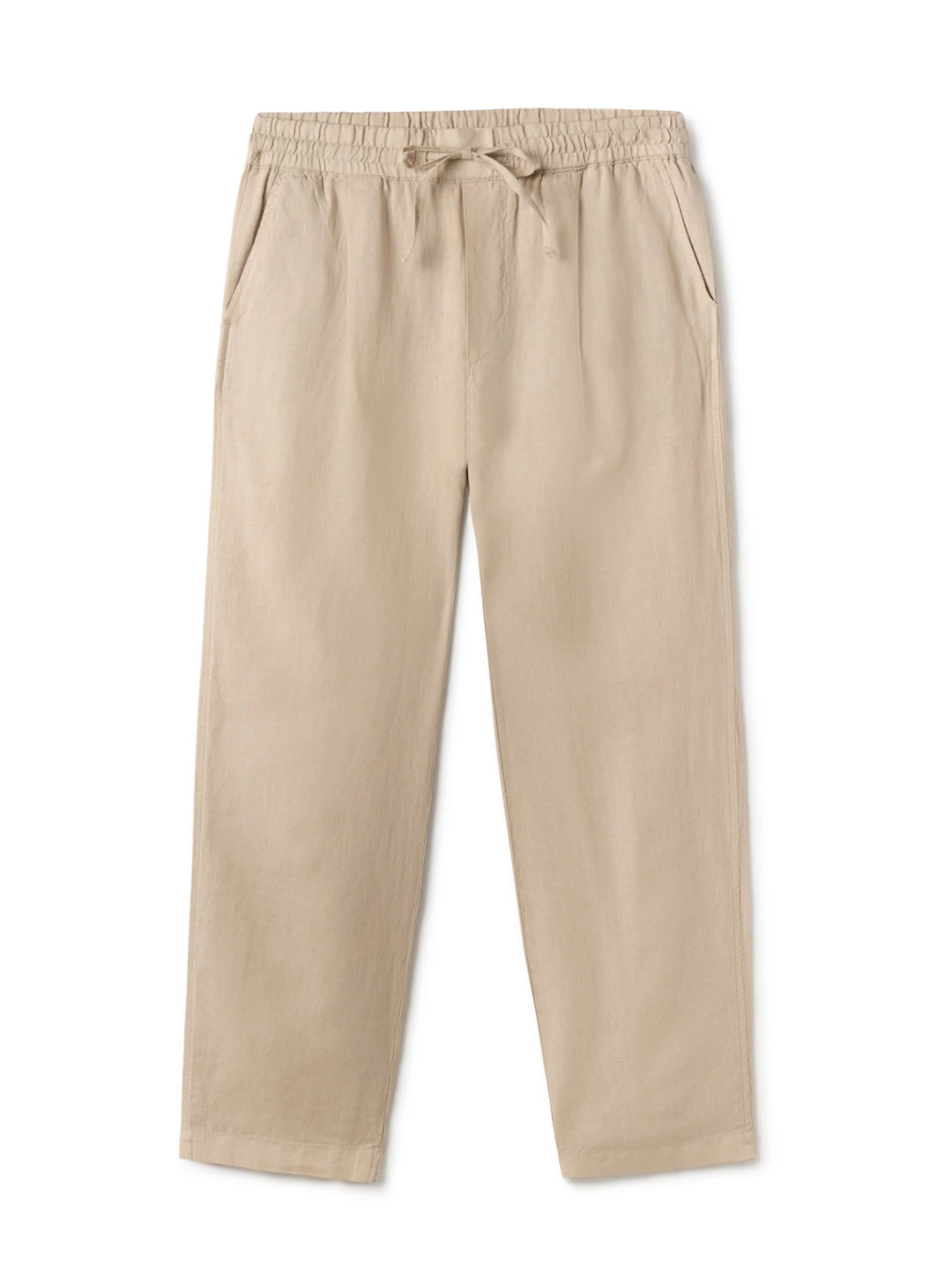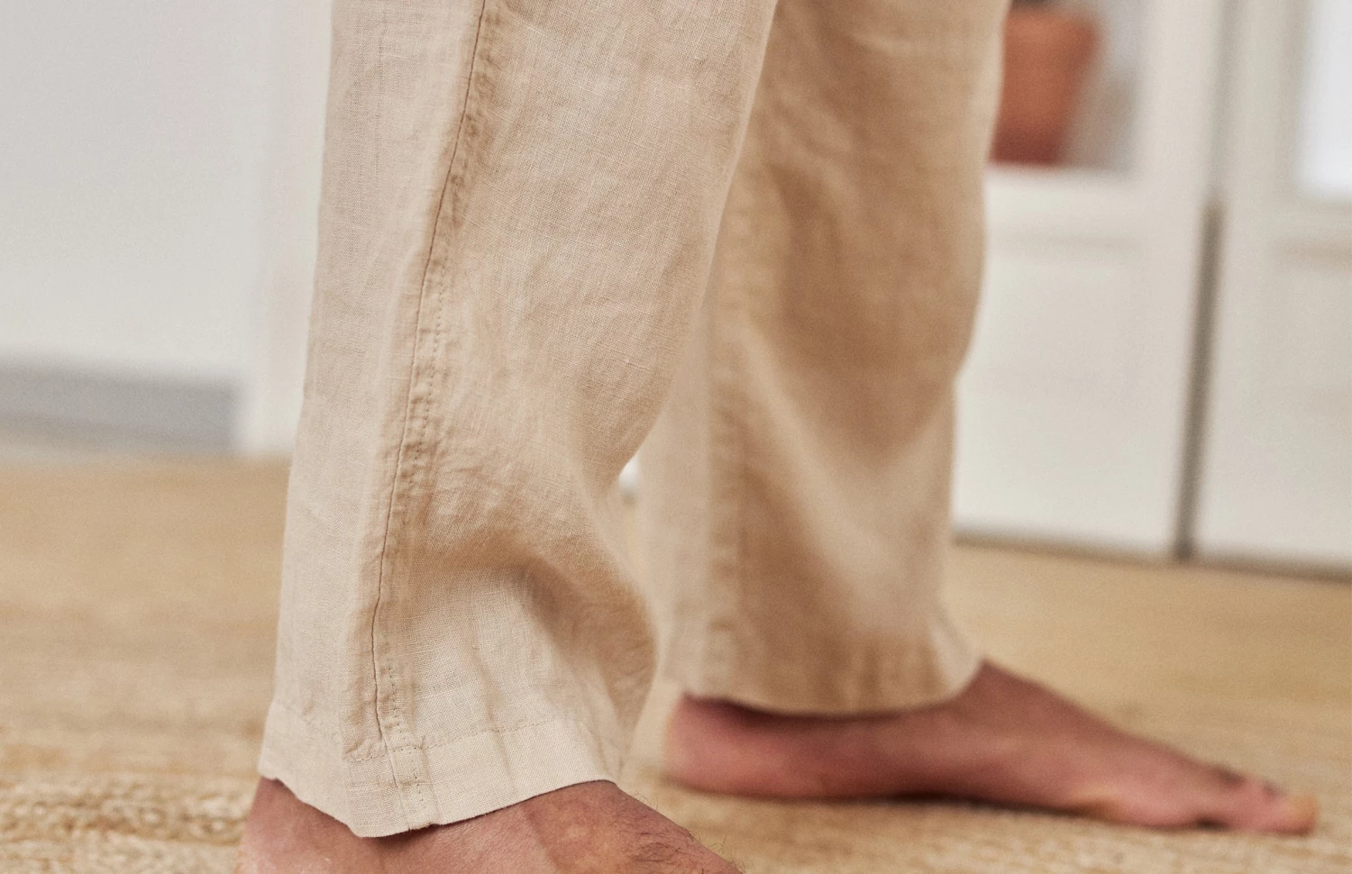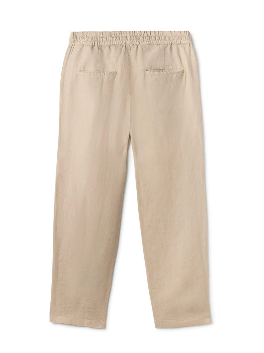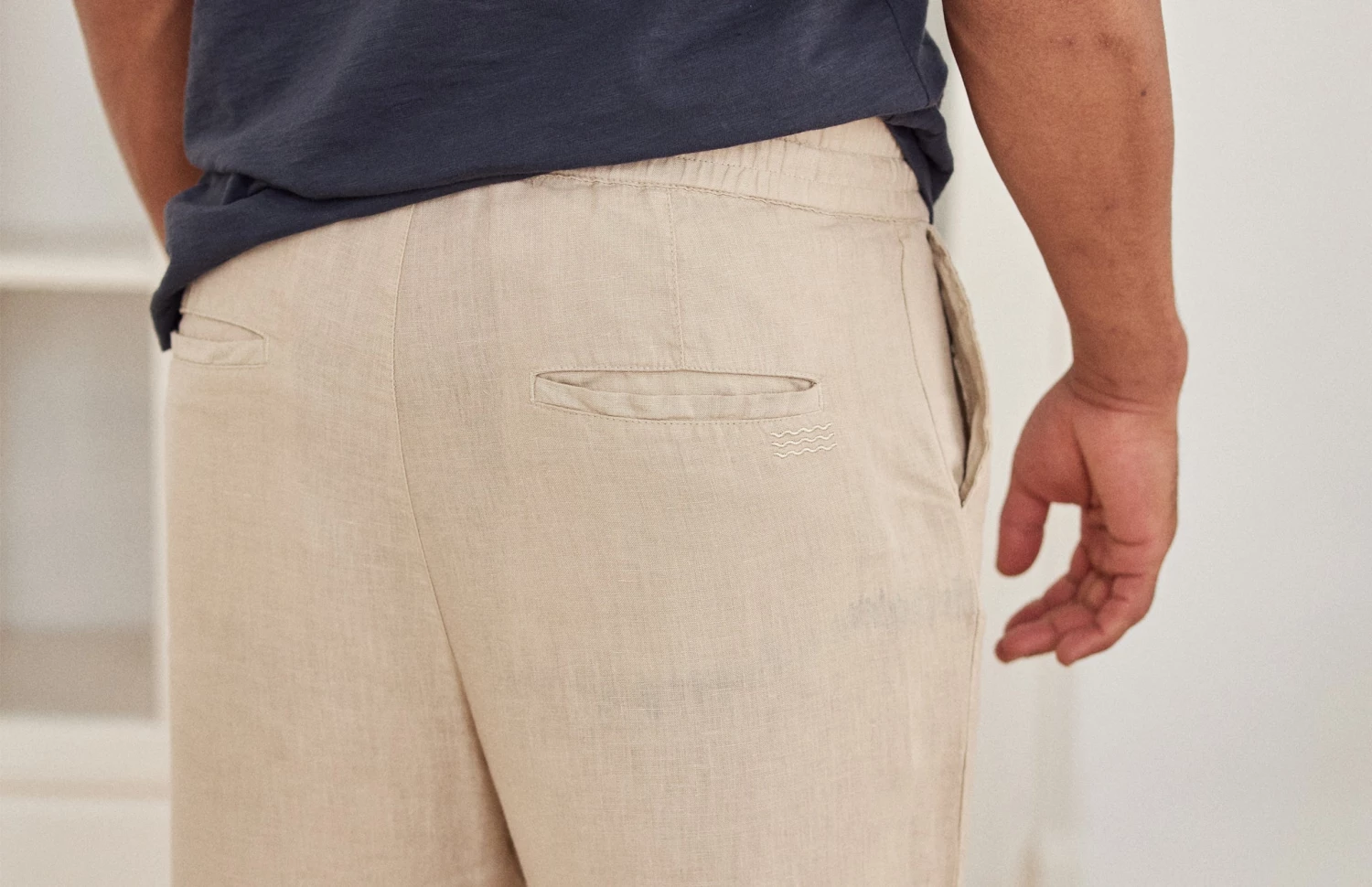 Cool comfort with the pleated Cabezo linen trousers. Designed with an elastic waistband with a cord to adjust and 4 pockets in total, featuring a wave detail on the right back one.Â