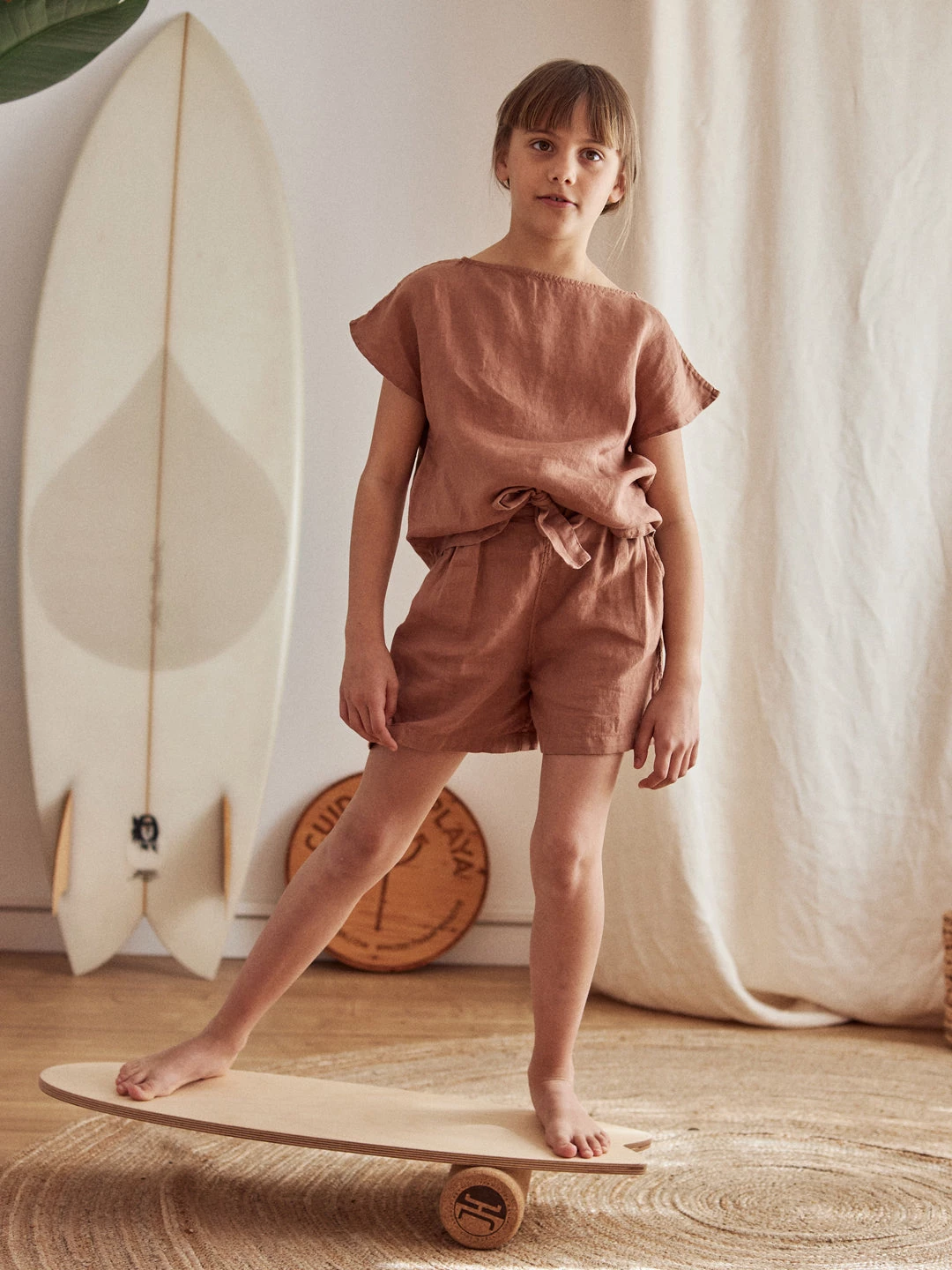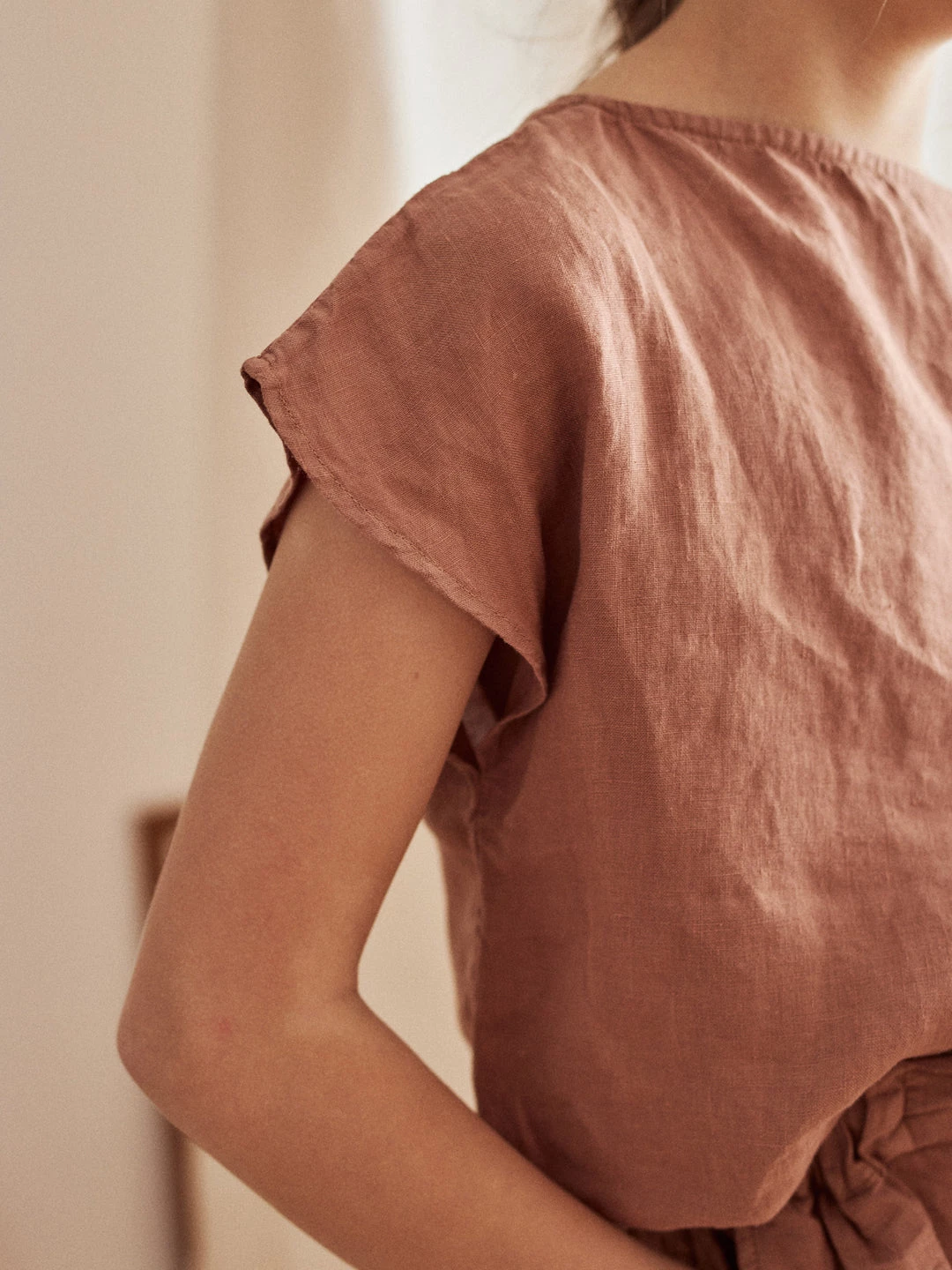 A fabric that lets your skin breathe! The Carabassí is a thin top to enjoy the warm summer temperatures. Designed with dropped sleeves and an opened detail on the front of the neck.