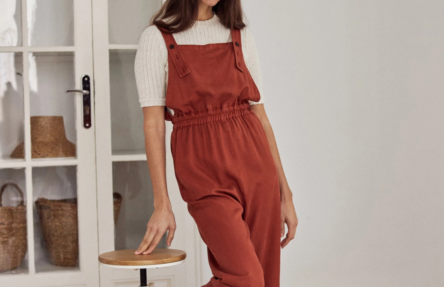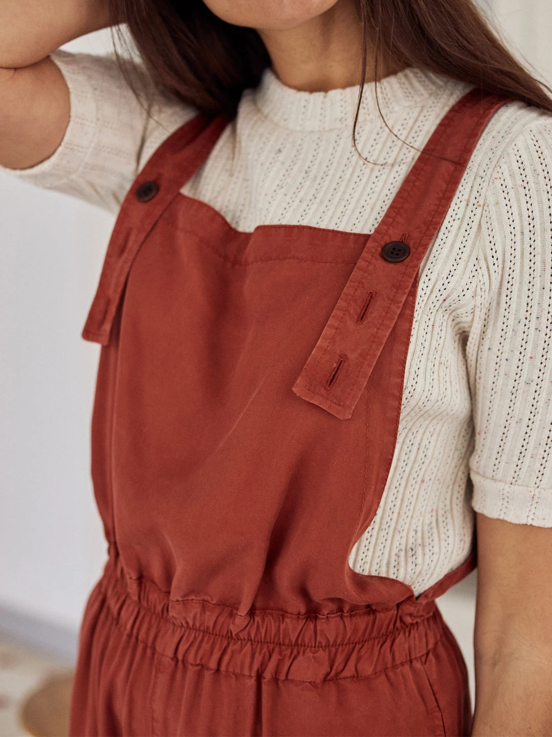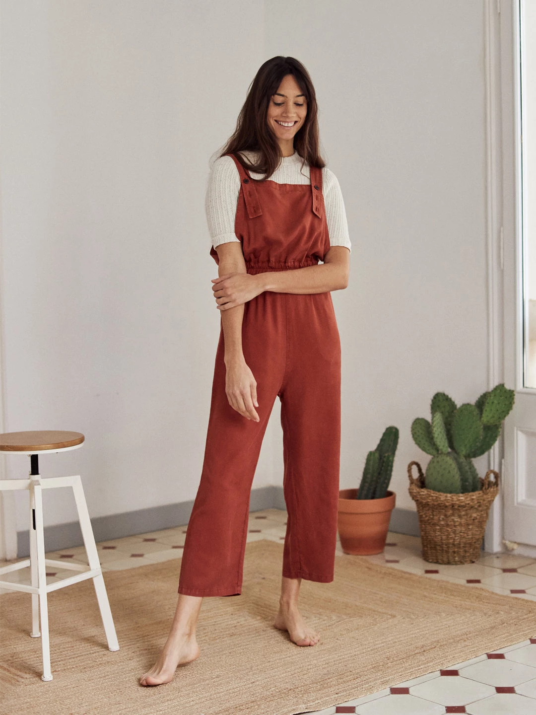 Sustainable dungarees: the Hornos comes with naturally sourced corozo buttons, 3 buttonholes on the straps, side pockets and an elasticated waistband.Â