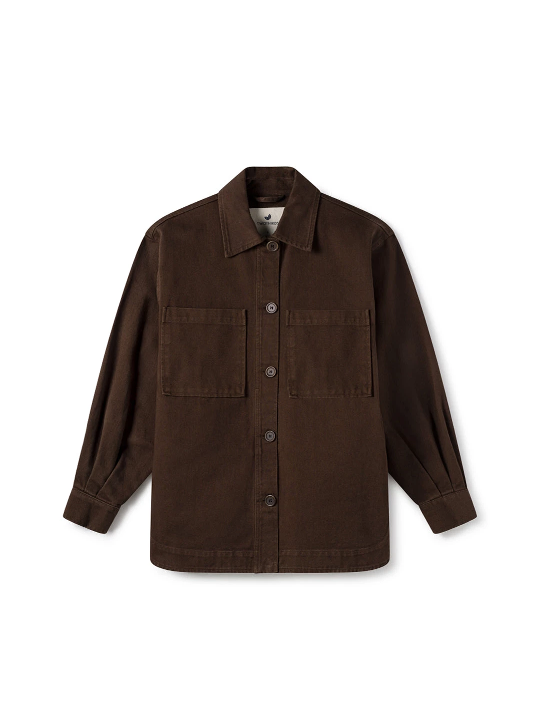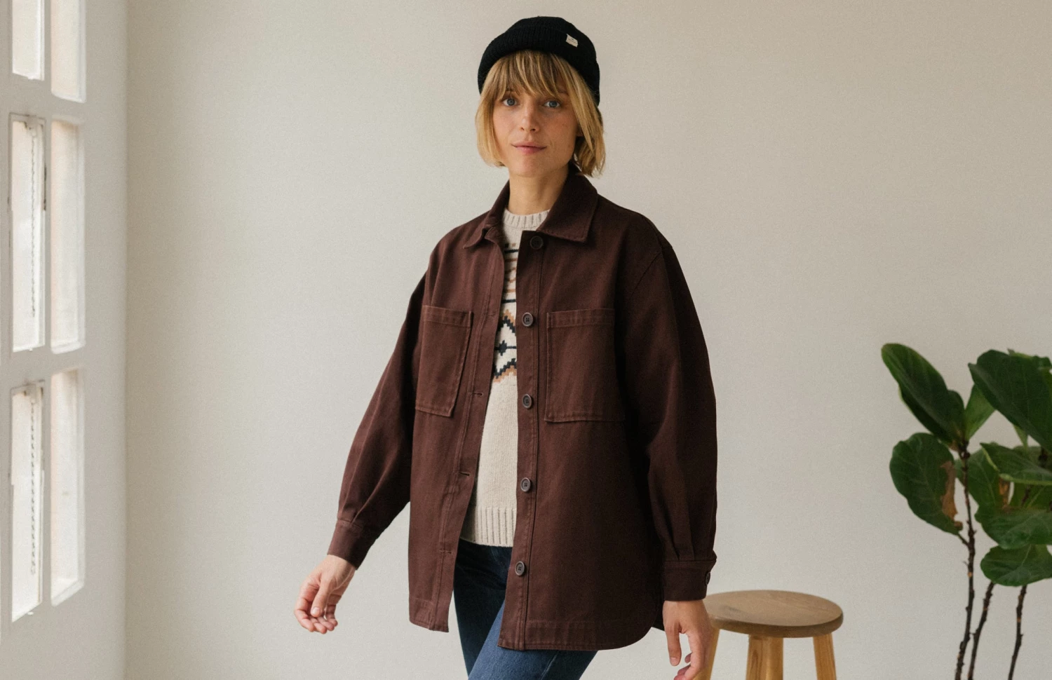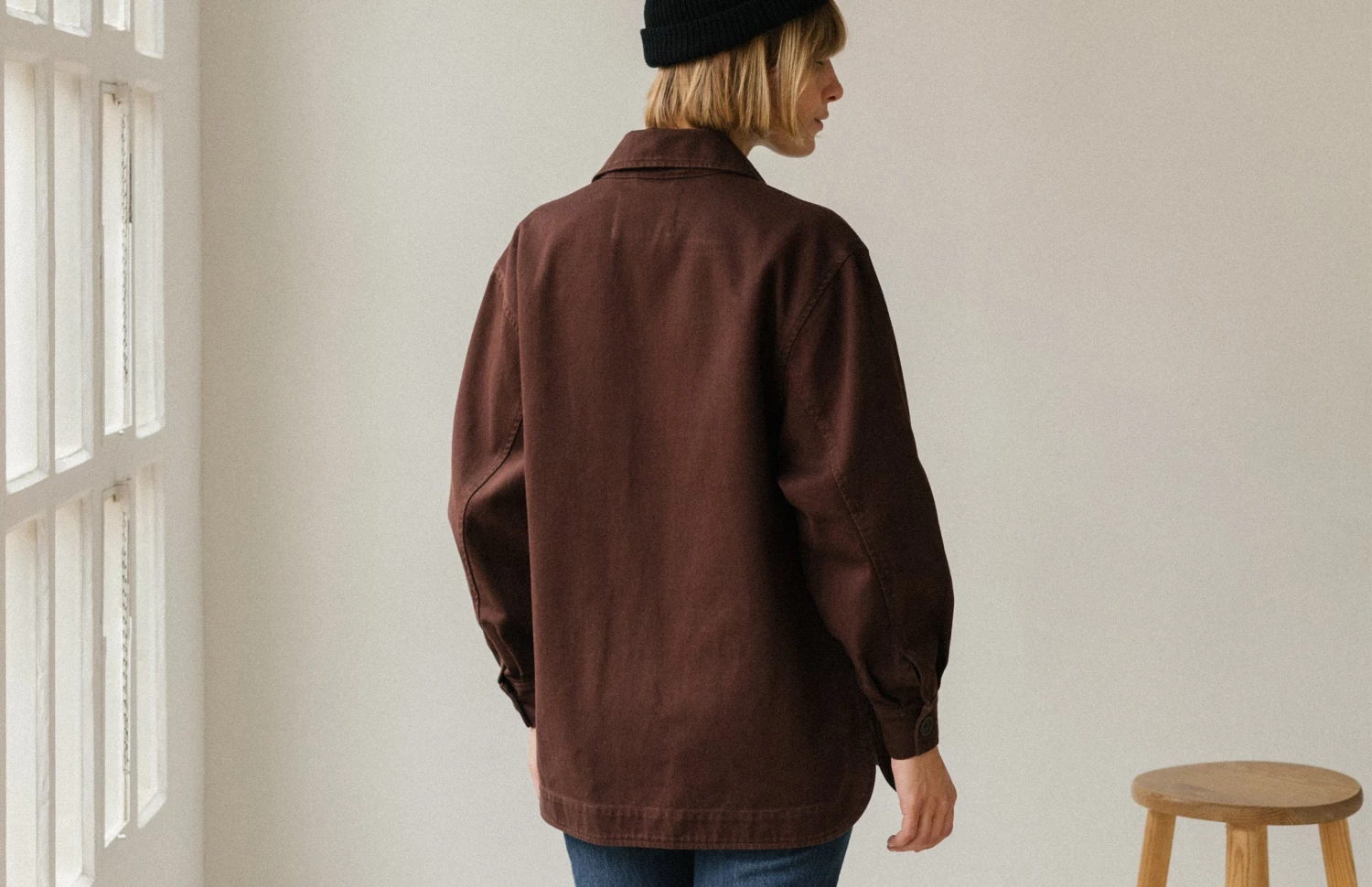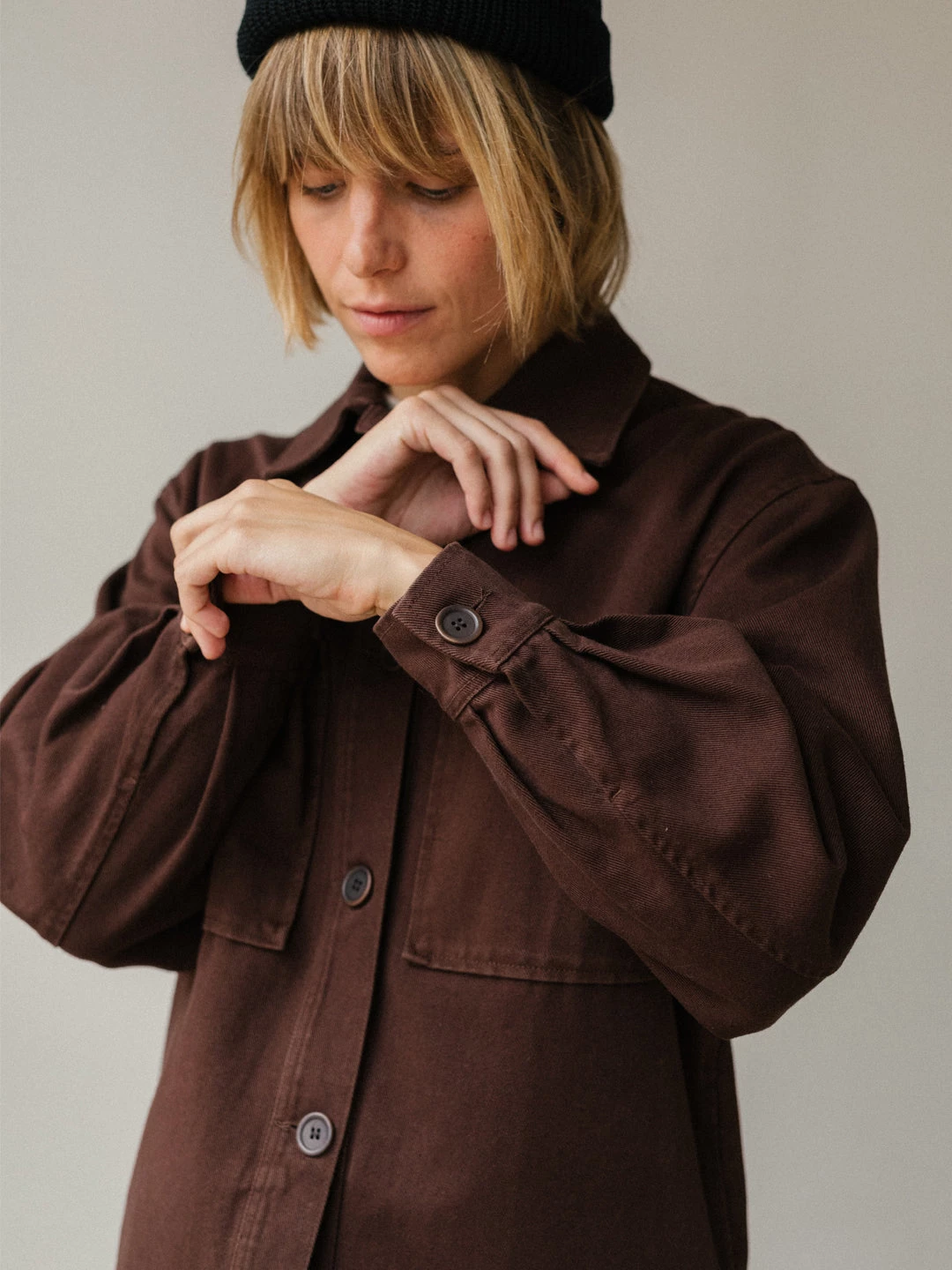 A soft and comfy shirt jacket, the Kril can enhance any sustainable collection. The jacket comes with side cuts, stylish bishop sleeves and dropped shoulders. Designed with a regular collar, naturally sourced corozo buttons and 4 pockets in total – two large ones on the chest and two on the sides. The garment has a fairly oversized fit and falls below the hips.