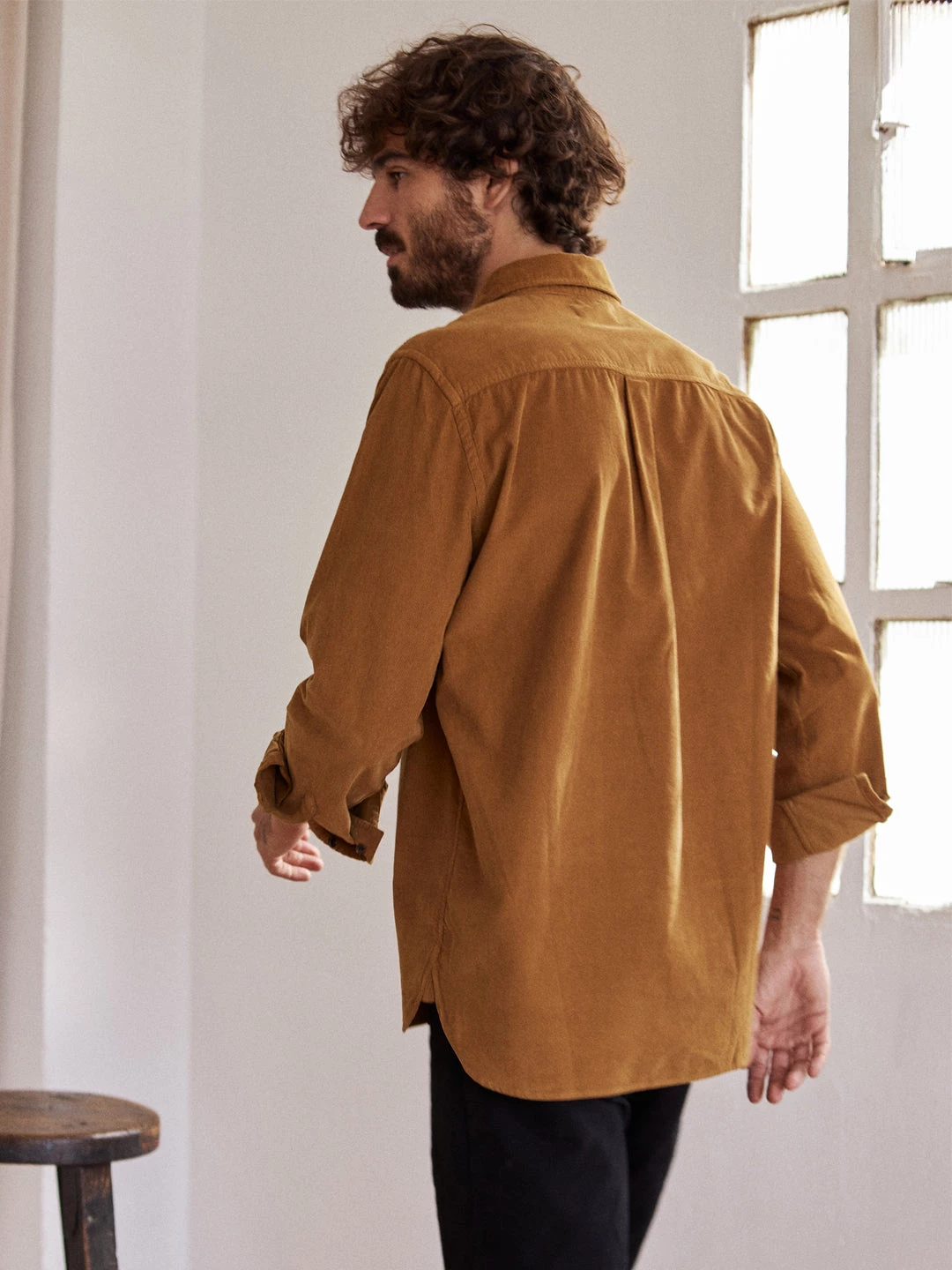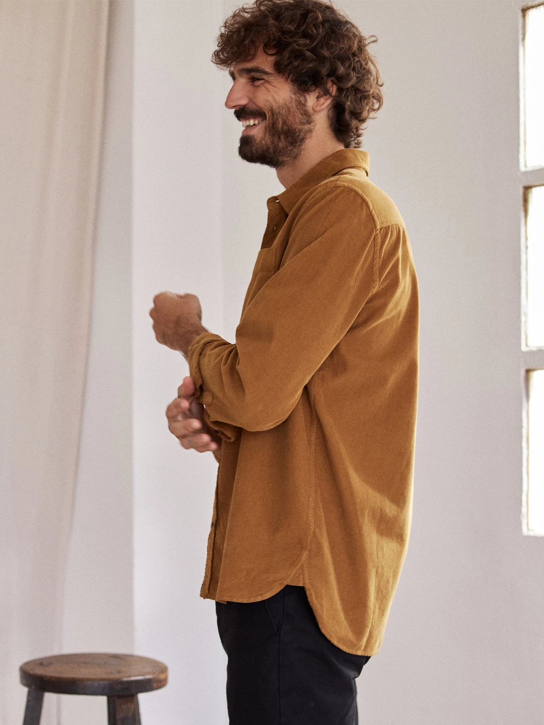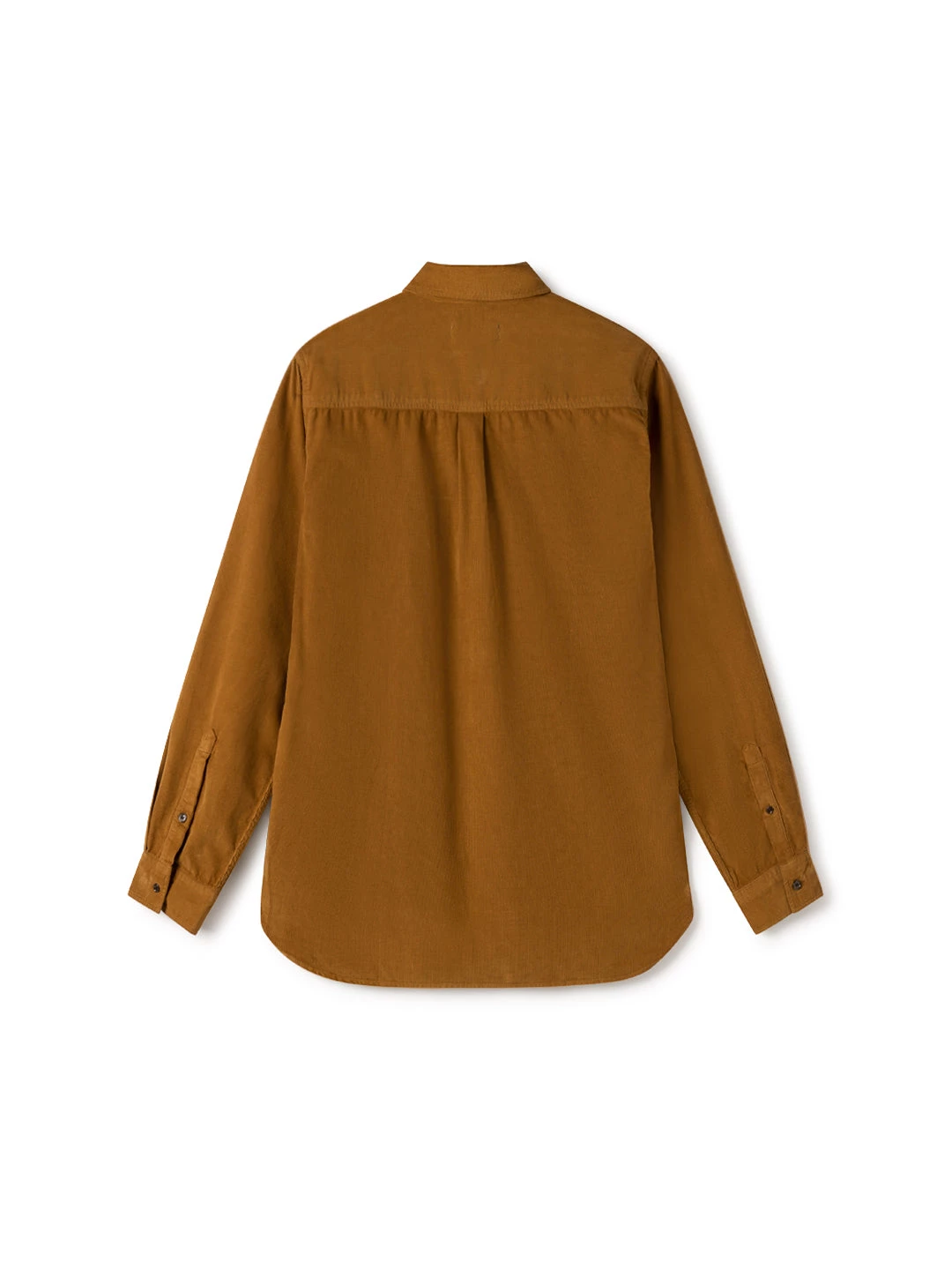 Warmer than your usual shirt thanks to its organic micro corduroy fabric, here’s the Cook. Designed with long sleeves, recycled horn buttons, a pocket on the chest with a triangular detail and “Twothirds” embroidered along the placket. The shirt comes in a regular fit and hip-length cut.