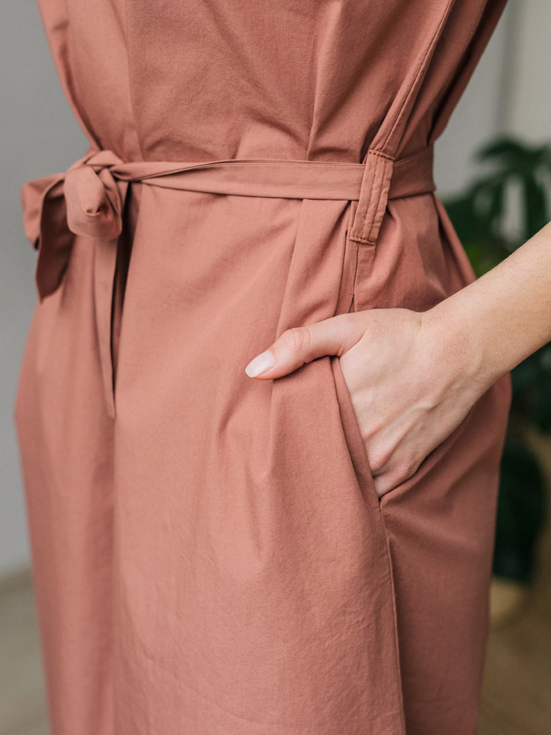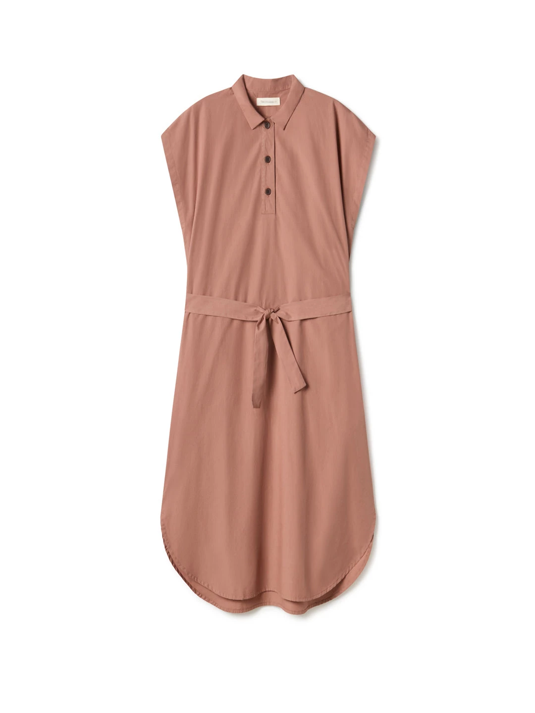 A shirt style dress, the Lovango. Designed with a regular collar and matching naturally sourced corozo buttons and a belt on the waist to adjust as you prefer – featuring side pockets. The dress comes in a regular fit at the top and widens as it goes down, falling around the knees.